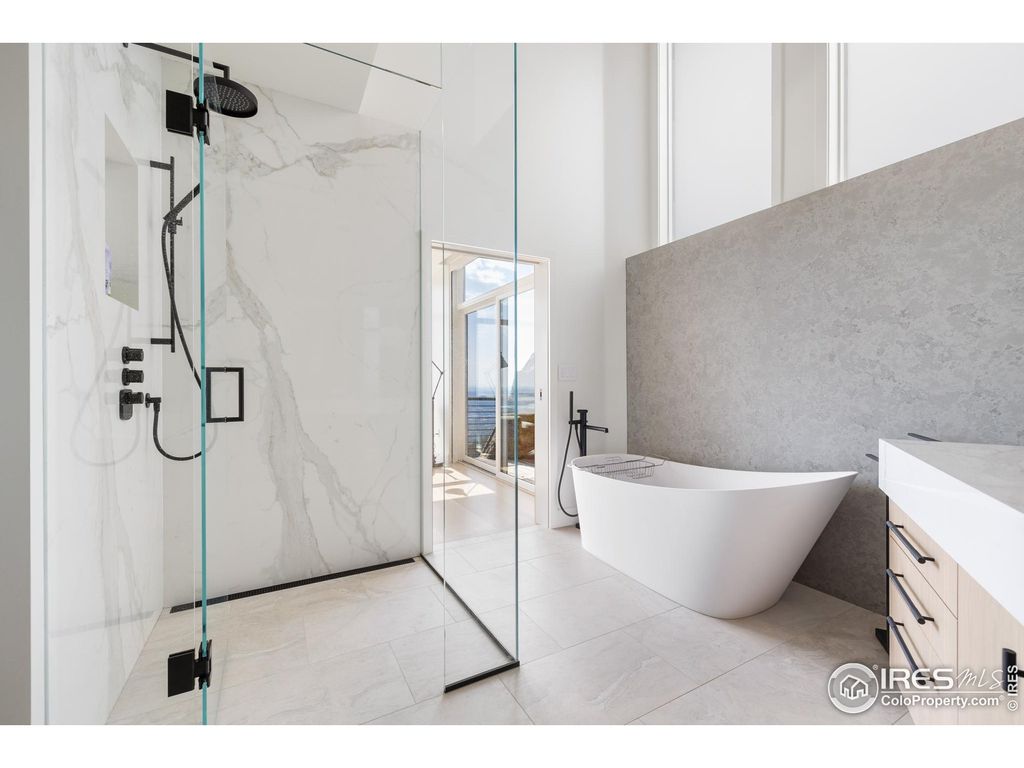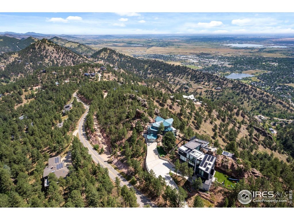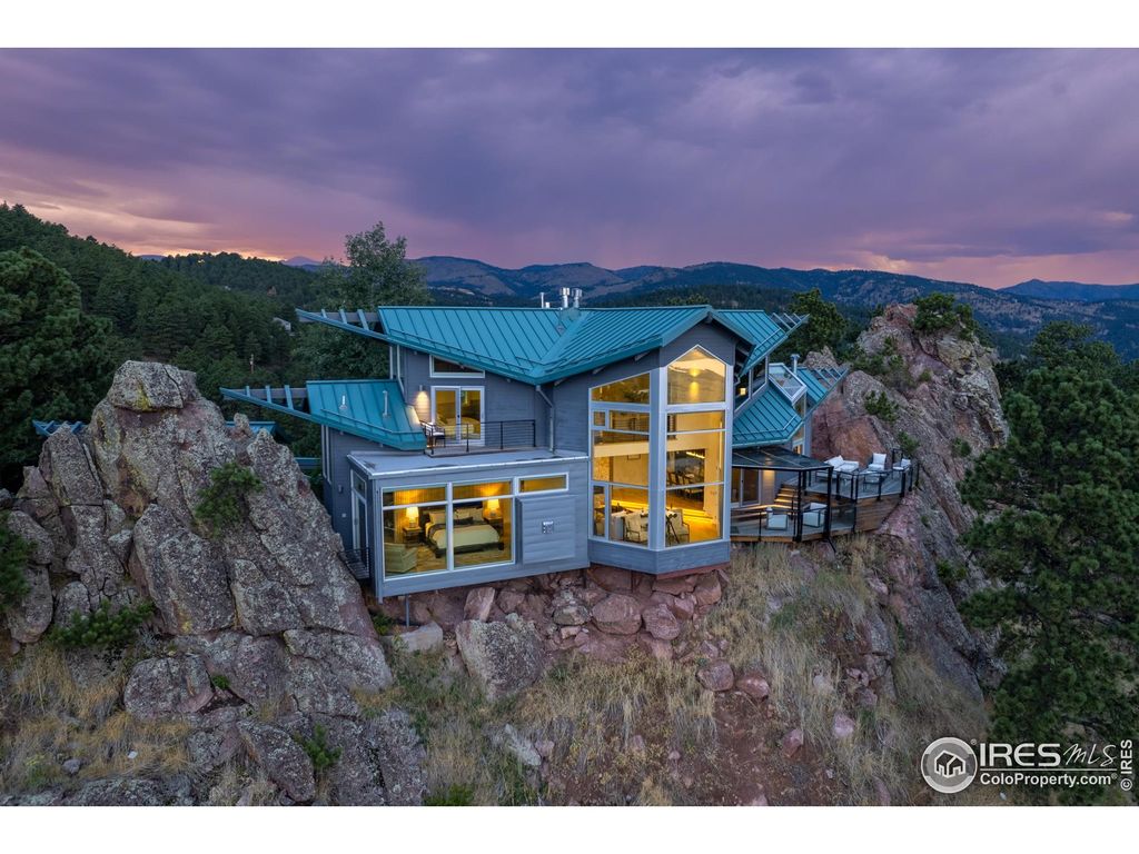 Perched atop a rocky prominence in the exclusive Pine Brook Hills, lies this one of a kind offering. With 360 degree views, this private residence is an architectural triumph that redefines luxury living. Upon entering you will be WOW'd by the voluminous atmosphere, wide plank wood flooring, and abundance of natural light that floods the home. A two sided fireplace welcomes you into the Great Room where you will be overwhelmed by the views that stretch all the way to downtown Denver. The chef's kitchen features Wolf and Subzero appliances and top quality finishes. The luxurious master suite has dramatic walls of glass framing the best views in Boulder and opening to a private deck, complemented by a serene 5 piece bathroom with a soaking tub. The multi-level terrace is an entertainer's dream for outdoor living. An outdoor kitchen, fire pit, rock outcroppings and stunning vistas at every turn, providing a priceless backdrop for sophisticated entertaining & stylish living. Two upper level secondary bedrooms are spacious and bright and feature soaring ceilings and ensuite baths. The walk-out lower level is outfitted with a bonus guest space that includes a murphy bed with storage. Detached from the home is a studio space that would make an ideal office or gym. Heated driveway tops off the ideal property! This home is the pinnacle of luxury, tucked away in the hills, yet conveniently located moments from Pearl Street & all that Boulder has to offer.