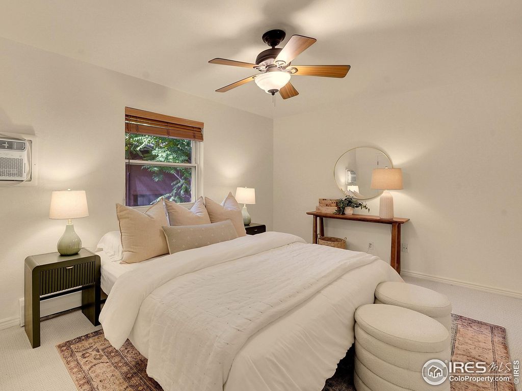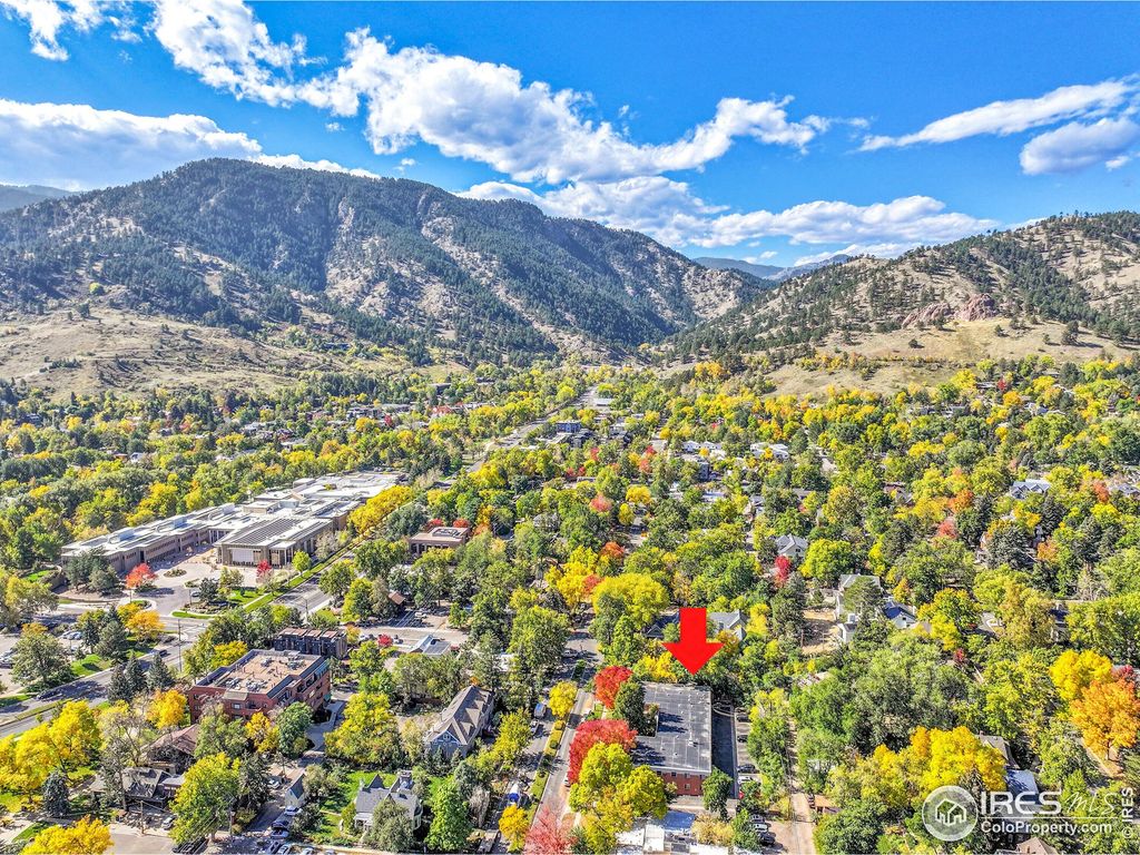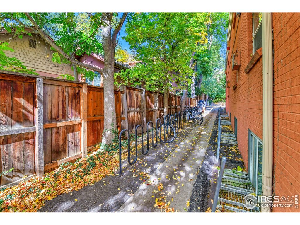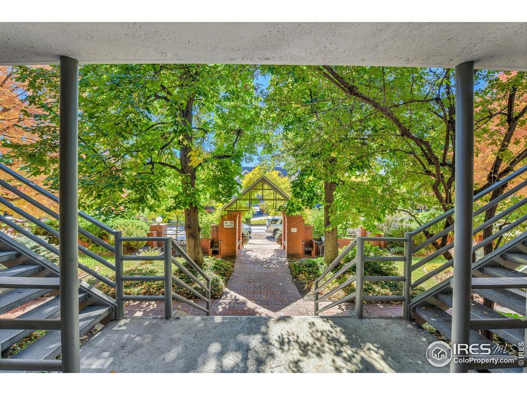 Rarely available, this top-floor home sits on a quiet stretch of Pearl Street - just four blocks from the mountains and yet steps from the bustling West End of Pearl Street Mall. Enjoy the best of Boulder: easy walk to Boulder Creek Path, cafes, restaurants, and shops, yet tucked away in a serene, tree-lined courtyard. Cozy and inviting, the home features hardwood floors, solar skylights, sliding glass doors, in-unit laundry, off-street parking, extra storage, and air conditioning. Fresh paint and new high-grade bedroom carpeting complement serene peek-a-boo mountain views. All of this on the most coveted block in Boulder.