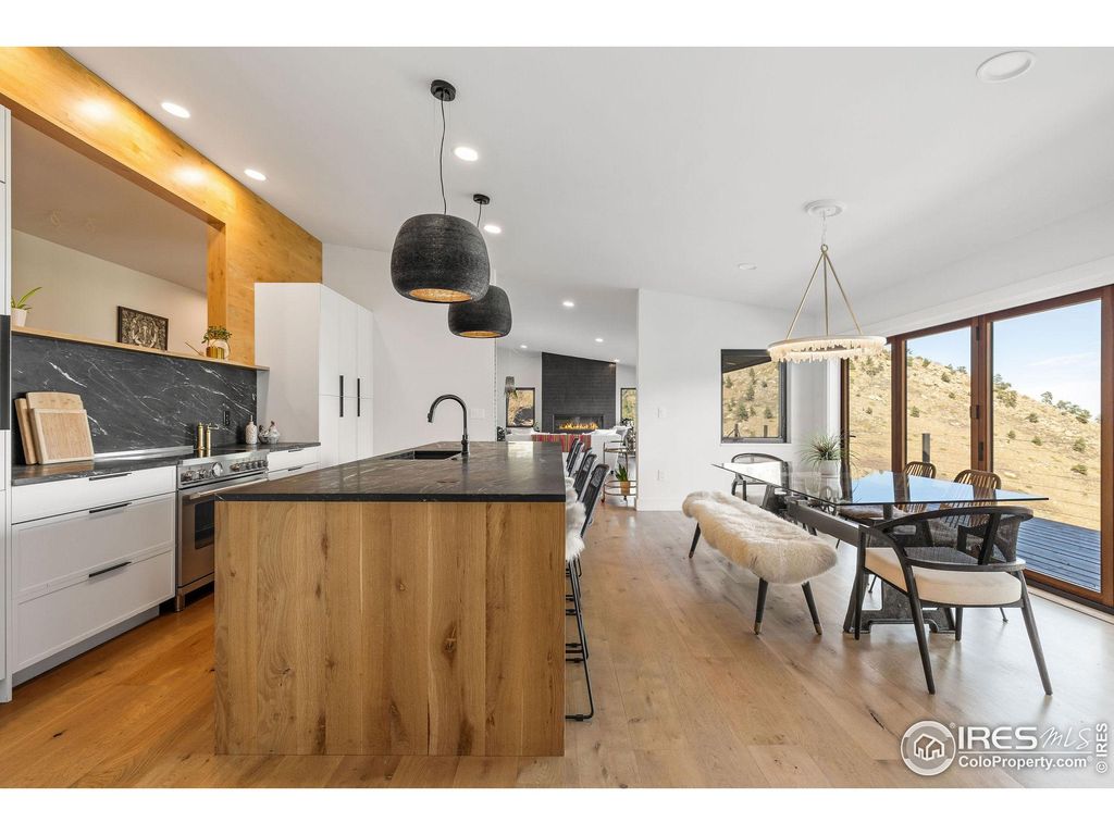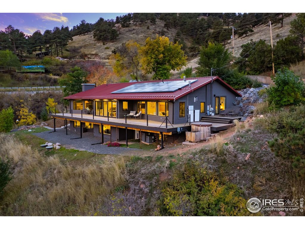 This beautifully updated custom 3BD/3BA home on 4+ acres is a once-in-a-lifetime property with an expansive indoor-outdoor layout, exceptional privacy and unmatched views that stretch on forever. Inside the nearly 4,000SF home, tall ceilings with recessed lighting soar above solid oak floors, custom millwork, and high-efficiency windows. A gracious foyer opens to a seamless open layout that puts the property's world-class views front and center. Large living room and family room wings invite you to relax and unwind alongside fireplaces and wraparound windows. In between, the dining area's foldable glass doors open entirely to a wide east-facing deck. Chefs will love the open gourmet kitchen's wood finishes, marbled soapstone counters and glossy white cabinetry. A fleet of upscale appliances makes cooking a joy, while the wide island/breakfast bar is perfect for meal prep and casual meals. Outside, this special property is graced by extraordinary, unimpeded gap views that reach across acres of open space and hillsides, all the way to the Boulder Reservoir. Lounge on the wraparound deck and patio, soak in the built-in hot tub, and toast s'mores in the fire pit area. Native landscaping, a tranquil pond, and bocce ball court combine natural beauty with outdoor leisure, while the home's ideal position adds a peaceful sense of seclusion. Luxurious accommodations begin with a spacious main-level primary suite with outdoor access, a walk-in custom closet and a serene spa bathroom with a soaking tub and shower. A secondary suite boasts a stylish semi-private bath, and a sun-kissed laundry room completes the first floor. Head to the walkout lower level to find a flexible layout including a third bedroom, bathroom, office, fitness space, storage, and an additional living space. Solar array, two Tesla Powerwalls, central HVAC, long driveway and detached two-car garage. Coveted, close-in mountain location 10 minutes from Broadway and 15 minutes from Pearl Street/Downtown.