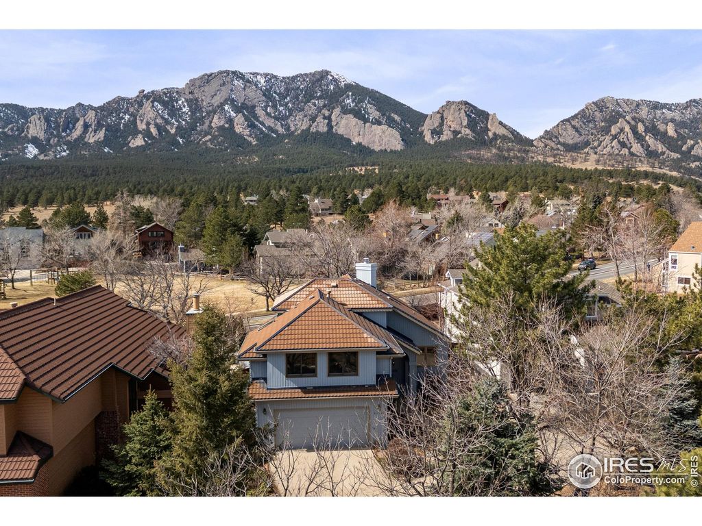 Unobstructed VIEWS of Devil's Thumb unfold from this immaculately maintained Shanahan Ridge/upper Table Mesa home. Tucked into a private lane, this low-maintenance property boasts unparalleled access to open space, trails and parks. Thoughtfully designed for modern living, an open floorplan seamlessly integrates the living room, dining area and kitchen for a harmonious flow. Vaulted ceilings draw the eyes upward as a vast wall of south-facing windows showcase breathtaking views. A fireplace grounds a large living room w/ a wet bar. Sliding glass doors in a dining area open to an expansive deck in a private backyard poised against a backdrop of mountain views. The kitchen is a chef's dream w/ light wood cabinetry and ample counter space. Retreat to a main-floor primary suite boasting a cozy fireplace, walk-in closet and direct access to the deck. The upper level includes an additional room that offers quiet space for a home office/den. Filled w/ natural light, a garden-level basement offers flexible living space w/ a secondary living area. A 2-car attached garage offers additional storage. Highly sought after South Boulder public schools. Open space trails, Viele Lake, Whole foods, Sobo Rec Center. RTD bus route all within walking distance.