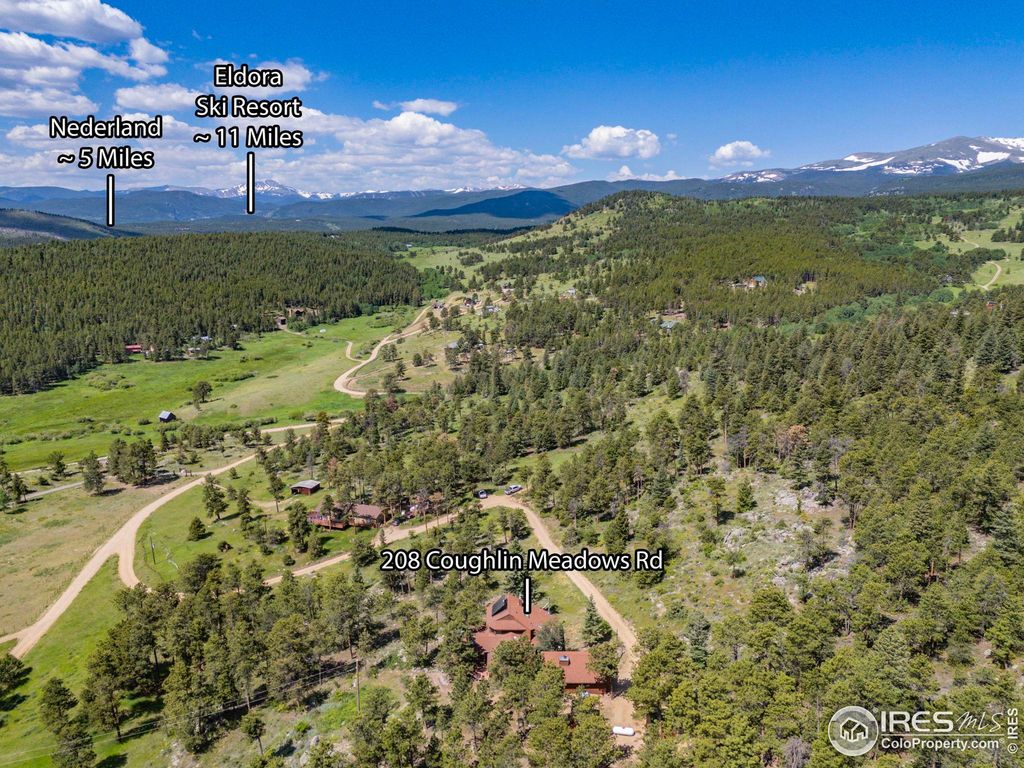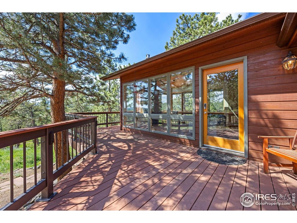 Elegant Mountain Estate with Panoramic Views - only 14 miles from Boulder! Perched at the end of a private road and bordering pristine National Forest, this exceptional custom estate combines rare seclusion with refined mountain luxury. Bathed in full southern exposure, the home is surrounded by wildflower meadows, dramatic granite outcroppings and sweeping vistas that stretch from James Peak to Eldora Ski Resort. Inside, architectural elegance meets timeless comfort. Vaulted ceilings, post and beam accents, skylights and walls of glass frame the views while filling the home with natural light. The gourmet kitchen is a chef's dream-granite counters, a one-of-a-kind natural flagstone backsplash, professional-grade stainless appliances, a dedicated coffee bar and generous seating invite both intimate mornings and grand entertaining. The adjoining sunroom, finished in flagstone with a cozy gas fireplace, offers a year-round retreat where nature feels just an arm's length away. The main-floor primary suite is a sanctuary of its own, complete with a gas fireplace, spa-like bath and walk-in closet. Upstairs, a loft, two spacious guest bedrooms and a stylishly updated bath provide both comfort and privacy for visitors. Additional amenities include two versatile bonus rooms, an oversized two-car garage with a fully equipped workshop, additional storage spaces and a whole-house generator that can seamlessly power most of the home for peace of mind. Outdoor living is unparalleled: a wraparound deck for sun-soaked afternoons, a hot tub for starlit nights and endless trails that begin right at your doorstep. All of this is just 14 scenic miles from Boulder, offering effortless access to world-class dining, shopping and culture-while still enjoying the serenity of your own private mountain retreat.