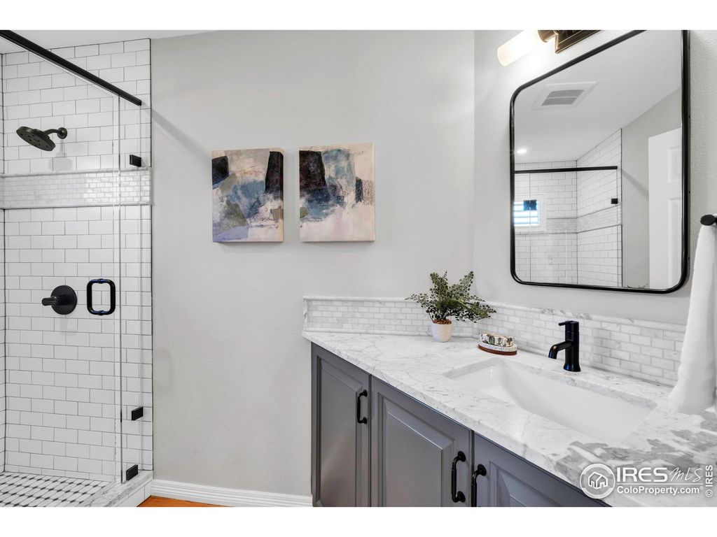 This pristine, spacious North Boulder two-story blends classic design with modern updates, featuring a brand-new kitchen with high-end appliances, a custom pantry, and an eat-in area that connects seamlessly to the sunken living room and formal dining room. Beautiful wood floors, custom finishes, a formal living area and a bright private office complete this functional main level layout. Upstairs are four generous bedrooms and three remodeled baths, including a primary suite with a designer spa-like five-piece bath, and a large walk-in closet. The finished basement is filled with natural light from egress windows and offers its own bedroom area, full bath, and flexible living space. Additional highlights include a three-car garage with epoxy floors and beautiful windows and built in storage, newer composite decking and fencing, and a large fenced yard on a desirable corner lot with mature trees. Thoughtful landscaping and custom deck railings complete this residence that captures the essence of North Boulder living.