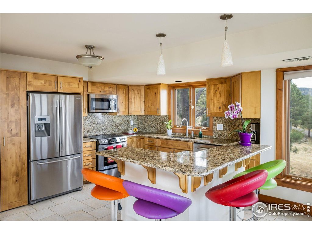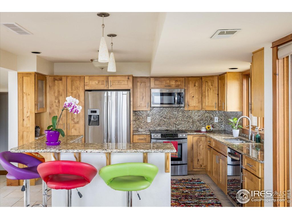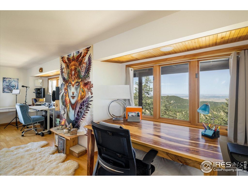 $20,000 Seller-provided credit offered to a buyer for closing costs and pre-paids! COLORADO DREAMING: Enjoy a majestic 180 degree view of sunrise, moonrise, and sparkly city lights, with uninterrupted scenery stretching across the mountains, plains and Boulder Reservoir - often accompanied by hummingbirds, deer, and foxes. This retreat-style home is only 10 minutes to Broadway in the sought-after Boulder Heights community and offers a breathtaking vantage point designed to maximize light and flow blending comfortable everyday living with thoughtful updates throughout. The main level invites you in with dramatic vaulted ceilings, walls of windows, and skylights that flood the space with sunshine. A dual-sided fireplace warms both the living and dining areas, while radiant-heated tile floors add comfort. The kitchen combines modern style and function with a generous island, wood cabinetry, stainless appliances, and a pantry. From here, step out to the expansive deck to grill, gather with friends, or simply take in the scenery. Upstairs, the primary suite serves as a true retreat with vaulted ceilings, skylights, and a private balcony to frame the views, while the spa-like bath has been fully reimagined with a soaking tub, oversized shower, and custom dual vanity. Two additional vaulted bedrooms share a full bath, providing plenty of space for family or guests. The lower level adds flexibility for a media room, home office, gym, or creative studio, complete with radiant-heated wood flooring. Practical amenities include an oversized two-car garage with storage, extra driveway parking, backup generator, county-maintained road access and BVSD bus service. Enjoy both peace of mind and the quintessential mountain lifestyle-just minutes from downtown Boulder. All offers considered.