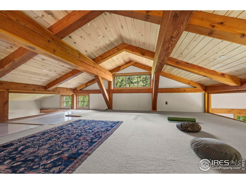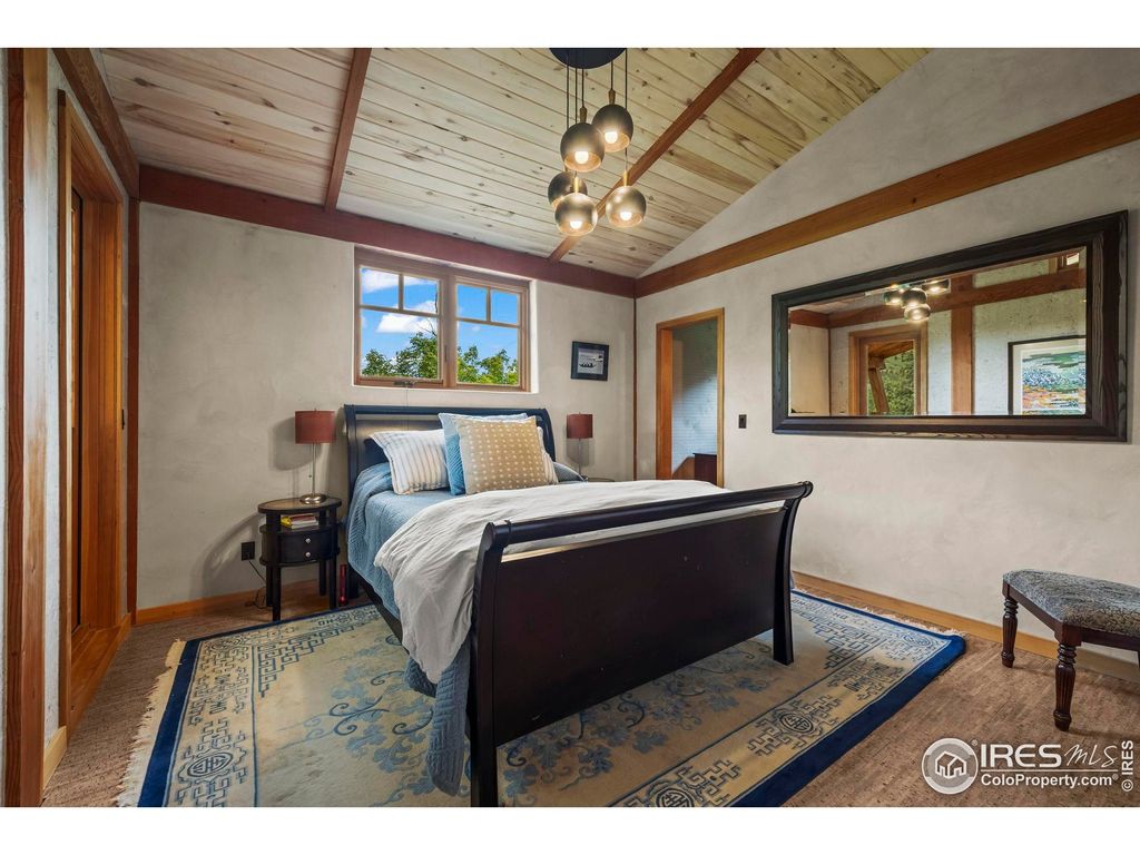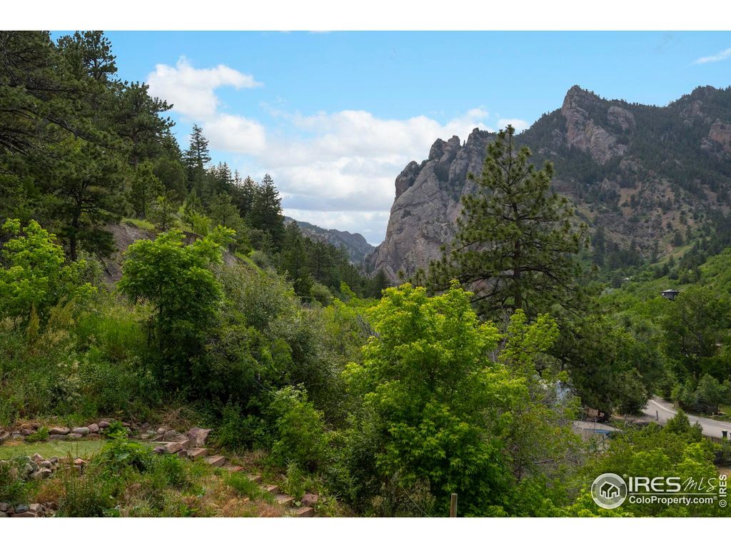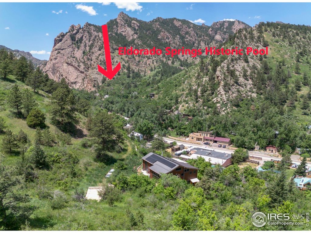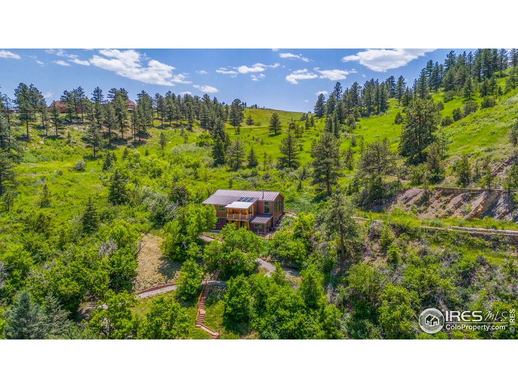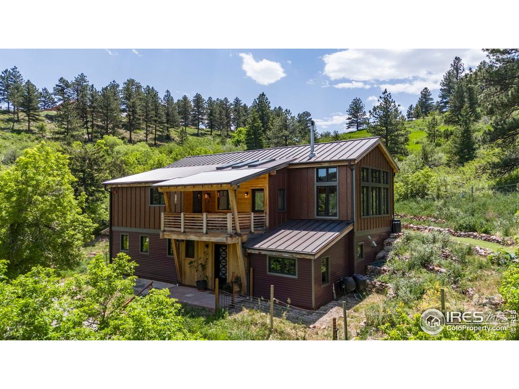 Welcome to 3360 Eldorado Springs Drive, an inspiring home with majestic 360-degree views, exceptional craftsmanship and an unbeatable location at the entry to Eldorado Canyon. Handcrafted in 2018, with 17-foot ceilings and expansive windows enveloping glorious landscapes from every room. The chef's kitchen makes cooking a delight with soapstone counters, custom cabinetry, premium German appliances and walk-in pantry. Dedication to green building is evident with triple-pane windows, passive solar and high thermal mass heating, PV system, and walls made of plaster, cork, wood and hempcrete. The use of stone, concrete, and cork for flooring further highlights the eco-friendly design. A woodstove and heat pump ensure year-round comfort. With three spacious bedrooms, two well-appointed bathrooms and a studio that can adapt into a fourth bedroom, lifestyle versatility abounds. Rejuvenate in the Japanese-style soaking tub and enjoy two decks offering sublime settings for both relaxing in nature and hosting gatherings. Set 300ft back from the road, this home's total privacy is accompanied by the soothing sounds of S. Boulder Creek and bird song. Access the house via 3 flights of sandstone stairs or drive up in the included 4WD utility vehicle. This is a rare canyon home that enjoys abundant year-round direct sunlight with 12+ hours in summer and 5+ hours in winter. The fully-fenced 1.15-acre lot provides multiple opportunities for home farming, including corrals and barns for livestock, fenced vegetable beds, grape vines, plum and apple trees. Located just minutes from downtown Boulder, award winning BVSD schools and Hwy 36. Best of all, hike or bike from your door to Eldorado Canyon State Park, miles of local trails, fishing and world class climbing. Also nearby are Eldorado Springs Pool, Art Center and Eldorado Yoga Ashram. Don't miss this rare opportunity to thrive in this vibrant Eldorado Canyon sanctuary where inspired living meets unparalleled natural beauty!