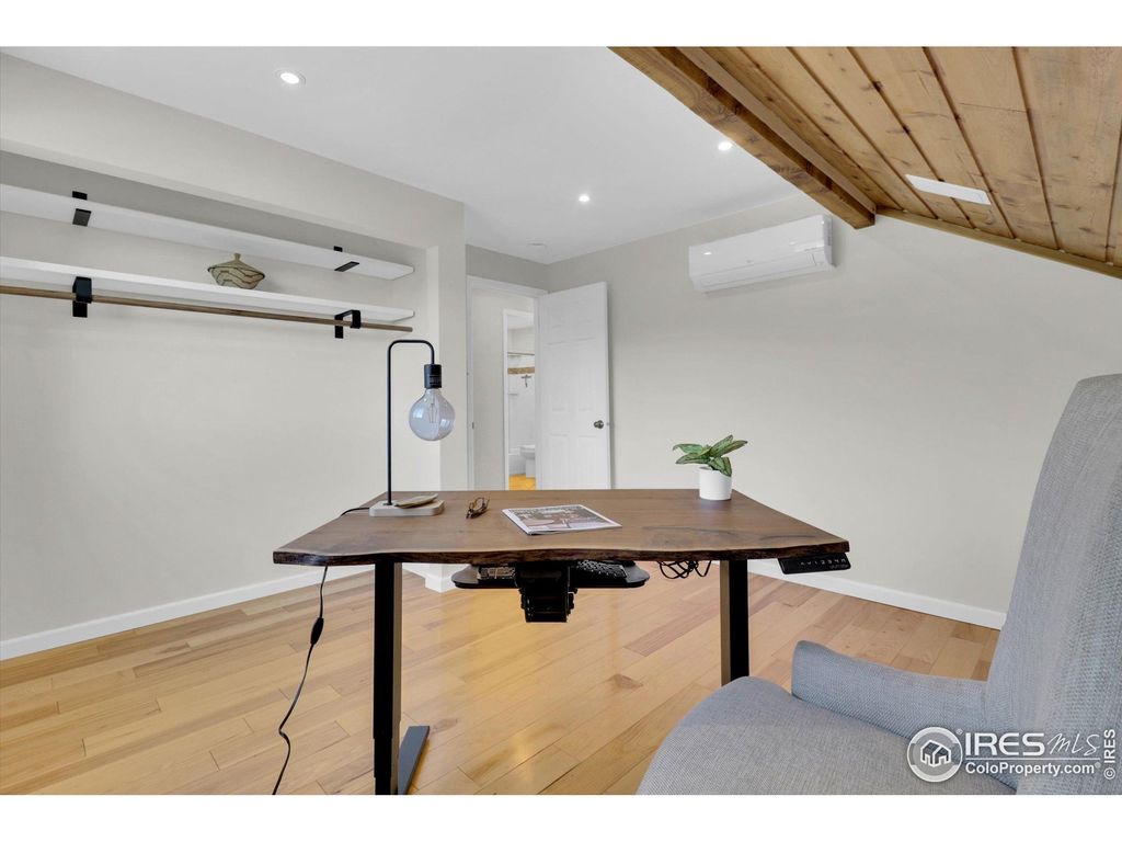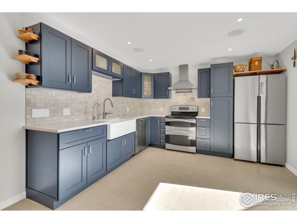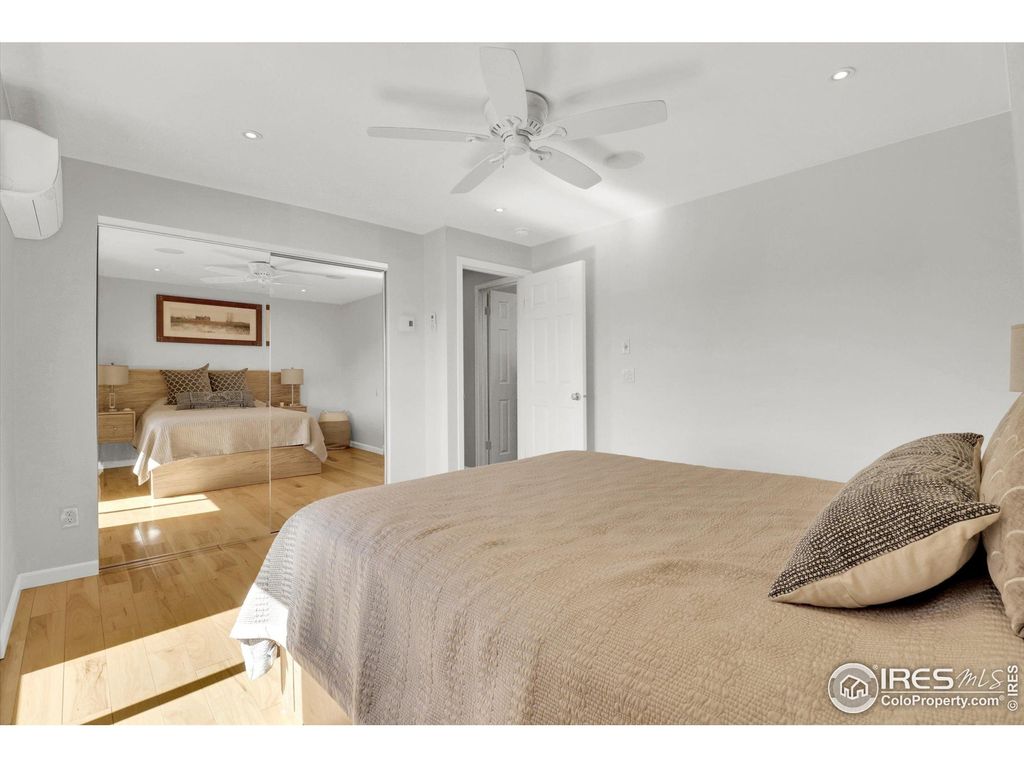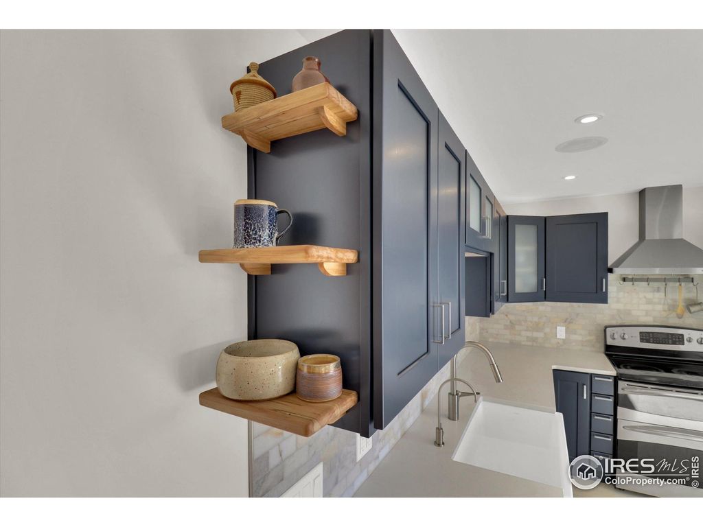Step into your new home where every detail has been thoughtfully reimagined, wrapping you in a mountain-modern lifestyle, just steps from the endless mountain trails of south Boulder. In this end unit, turn-key home, with over $150,000 in updates, you will find new delights around every corner. The open, airy main level is perfect for entertaining friends and family or a cozy night at home. The fully remodeled kitchen (2025) sets a luxurious tone featuring Cambria Smithfield quartz counters and a Fireclay farmhouse sink atop shaker-style cabinetry in gun metal blue, all set against a Turkish marble backsplash. Cook with confidence thanks to your dishwasher by Miele, vented range hood, and French-door refrigerator w/ dual freezer. Custom ambrosia maple shelves and new tile flooring complete the look with charming character. Move seamlessly to the dining area to enjoy your meal or lounge in the vaulted living room, warmly paneled in cedar and perfectly temperature controlled to keep you cozy on a winter night with ample radiant heat from the wood burning stove or cool as you like during a warm afternoon thanks to the endless air conditioning of the LG mini-split system. This home glows with natural light, richly refinished wood beams, smooth-finish walls, and finely detailed, durable hickory flooring throughout. Upgraded recessed lighting throughout, a 3-zone speaker system and programmable 3-zone heating+cooling elevate your everyday living. Both baths have been beautifully redone. The upstairs full bath features travertine tile, programmable radiant heated floors, a frameless glass shower door, and a Native Trails Americana vanity. The main level half-bath adds style with a custom vanity of ambrosia maple and barnwood siding. The primary bedroom features custom Japanese-style vertical grain hemlock finishes. The secondary bedroom offers a stunning up-close view of Boulder's mountain parks - a priceless daily backdrop. Plus a detached garage for parking and storage.