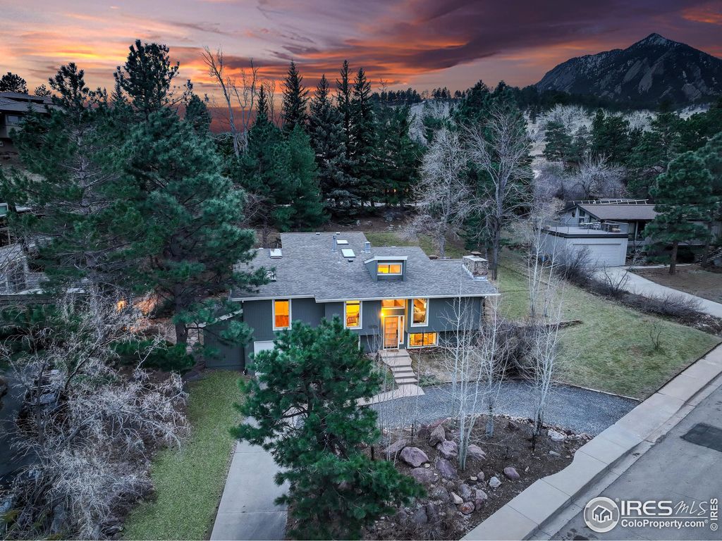 Discover 1880 Kohler Dr, a bold fusion of luxury, design, and unparalleled views in an unbeatable South Boulder location. This contemporary home, set on a generous-sized lot, delivers a lifestyle of sophistication and tranquility. Upon entry, you're greeted by open spaces, high ceilings, and Flatiron views framed by large windows. American Walnut flooring gleams throughout the main level. The heart of the home is a chef's kitchen with a 6-burner BlueStar range, that seamlessly flows into living and dining areas, for effortless entertaining. Step outside to your private oasis featuring an expansive deck, surrounded by mature trees and mountain views, creating a truly utopian setting. The secluded primary suite features a spiral staircase up to a loft that would make an excellent home office or flex space. You will love the custom walk-in closet, and the 5-piece spa-like ensuite featuring a jetted tub and eye-catching countertops. Three secondary bedrooms on the main level are spacious and bright. The lower level features an additional bedroom and bathroom, perfect for guests or even a home gym complemented by the built-in sauna. It also contains a large rec room, ideal for game or movie nights. Trails and open space are just a few steps away! This enviable lot and its proximity to outdoor recreation is an incredible opportunity for the discerning Boulder home buyer.