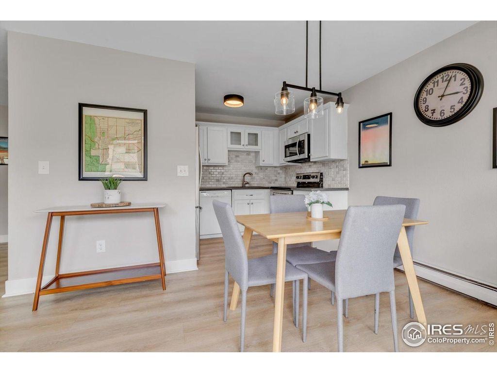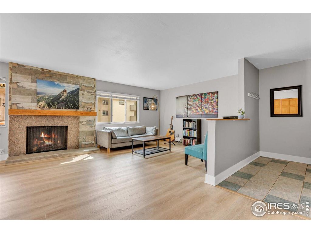 Stylish updates and a convenient location make this two-bedroom condo at the center of Boulder a great find! Enter a warm and welcoming space with wide-plank floors atop an open concept plan, centered around flatiron peekaboos, with a wood burning fireplace. Your updated kitchen offers modern finishes, appliances, and quartz counters, and opens to your private patio balcony- as ideal for morning coffee or evening relaxation as for container gardening. Two comfortable bedrooms share a full bath, with flexibility for guests or a home office. Residents enjoy access to an indoor saline pool, tennis courts, well appointed gym and community center. Close to trails, parks, shopping, dining, and public transportation, this North Boulder condo combines comfort and lifestyle in a sought-after setting.