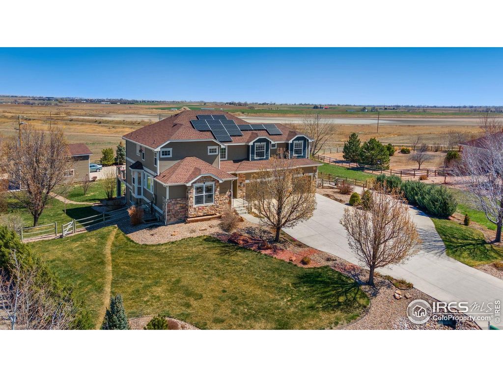 Rare MULTIGENERATIONAL Opportunity! This refreshed country-style 2-story with a walkout basement offers a full second living space complete with kitchen, 2 bedrooms, 2 baths, and laundry - perfect for extended family, guests, or rental potential. Conveniently located just 20 minutes from College & Harmony and under 10 minutes from Windsor, this home blends country living with city access. There's room to park 7+ cars with a 3-car attached garage plus a 24x30 shop, along with an owned solar system for utility savings. Recent updates include fresh interior paint, new basement carpet, updated lighting, and landscaping. The gourmet kitchen features 42" custom alder cabinets with pull-outs, slab granite countertops, stainless steel appliances, pantry, and a breakfast bar, with walkout access to a large Trex deck wired for sound and a 220v outlet for a hot tub. The family room is spacious and welcoming with a gas fireplace, mantel, and tile surround. Upstairs, the primary suite offers a three-sided fireplace, spa-inspired five-piece bath with jetted tub, heated tile floor, towel warmer, and a generous walk-in closet, while a guest suite includes its own private full bath and the third and fourth bedrooms share a Jack & Jill bath with charming window seats. The home is also ideal for an in-home business setup with a separate office entry and bath. A detached insulated 30x24 RV garage with a 12-foot overhead door plus a large concrete pad provides incredible storage for toys, trailers, or shop space. With its flexible living options, upgrades, and room for everything you love, this home truly has it all.