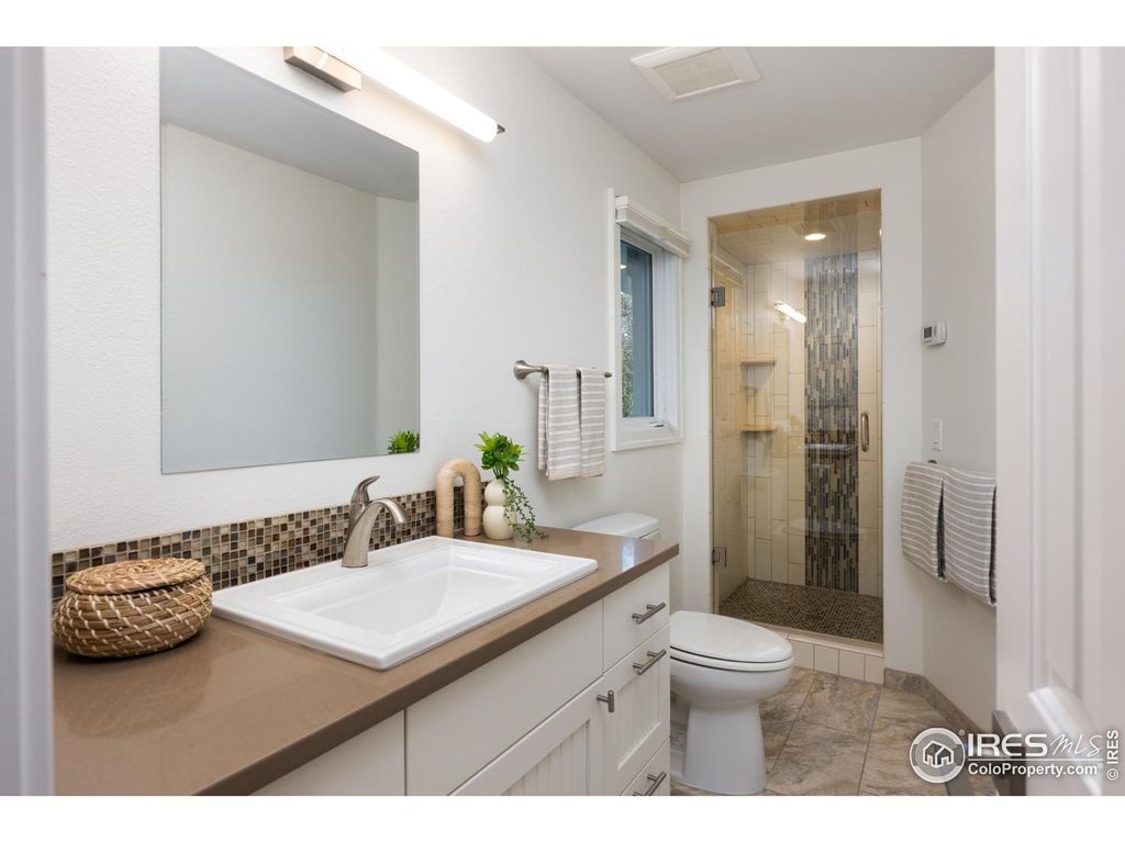 Amazing location and lot! (.59 acres) Embrace sophisticated indoor-outdoor living in this beautifully remodeled 4BD/4BA featuring pristine sun-kissed interiors, exceptional outdoor space, en suite bedrooms and an ideal Highland Park location. Thoughtfully updated inside and out by Rosewood Construction and Landscape Construction, this nearly 3,000SF residence impresses with crisp white walls, oversized windows and skylights, and floors covered with handsome hardwood, stone and contemporary carpeting. Relax in the corner living room surrounded by a fireplace, built-ins and verdant views, and enjoy your next gathering in the lovely dining area featuring an adjoining patio. The gourmet kitchen impresses with wood cabinetry, a center island/breakfast bar, granite countertops and stainless steel appliances. Large windows and skylights usher in amazing light and views while folding glass doors make al fresco entertaining irresistible. Outside, the stunning .59-acre property features an oversized flagstone patio surrounded by rock walls, towering trees, a grill, a fire pit and a charming garden shed. On the main floor, you'll find two spacious secondary suites with private baths and roomy closets. A powder room, a huge mudroom with built-in storage, and a laundry room complete this level's well-planned layout. Upstairs, explore the full-floor owner's retreat featuring a king-size bedroom with 270-degree treetop views. The en suite spa bath boasts a freestanding soaking tub, shower & double vanity. There are walk-in closets in the bedroom and hall, and a fourth bedroom on this level is ideal as an office or nursery. Extensive upgrades include a composite and metal roof, galvanized gutters, radiant heat bathrooms, & a 2-car garage with a newer door & epoxy flooring. A manicured front yard adds wonderful curb appeal to this immaculate South Boulder sanctuary close to world-class trailheads, open space, top-rated schools, Table Mesa Shopping Center, Pearl Street and Downtown.