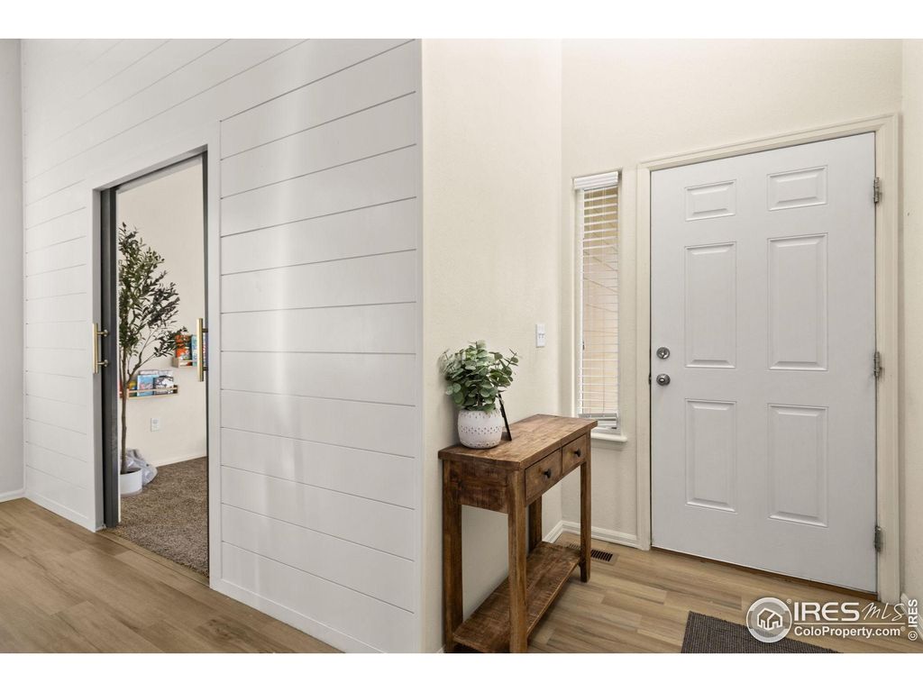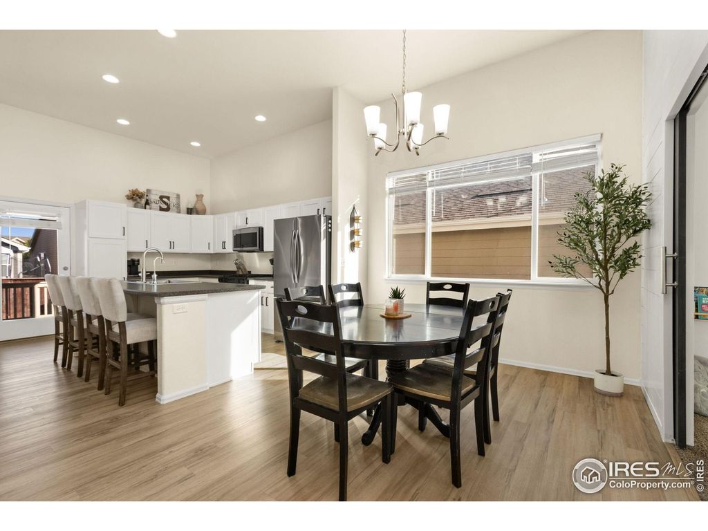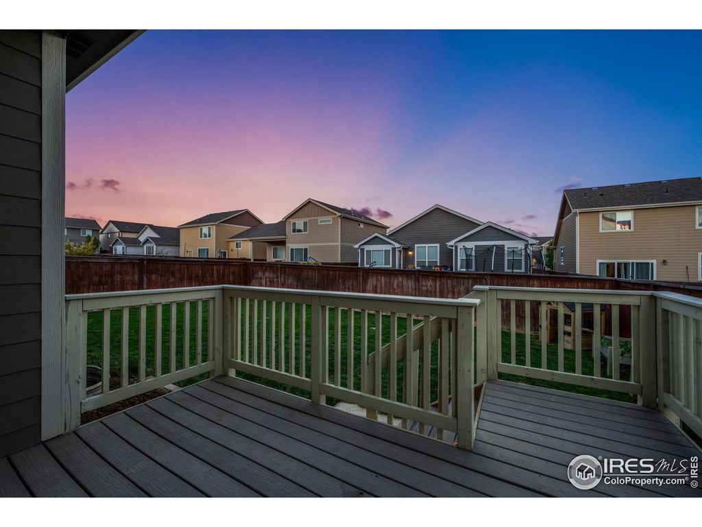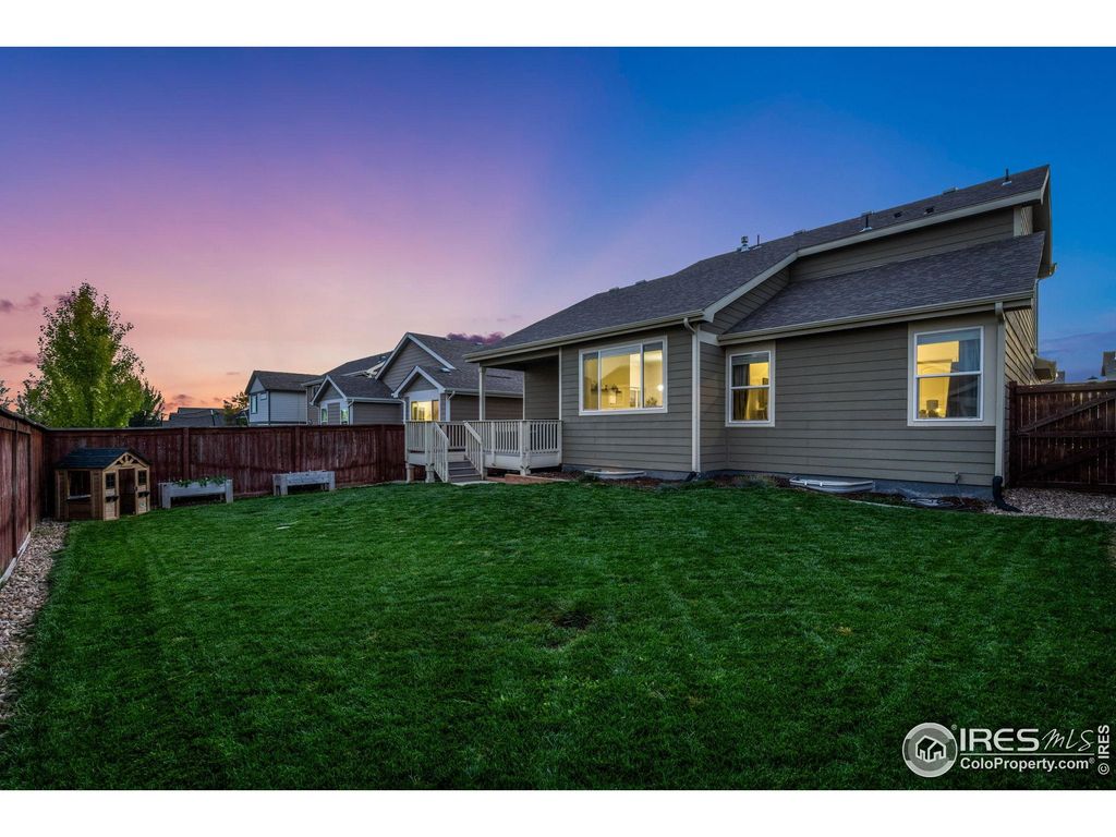 OPEN HOUSE SUNDAY OCTOBER 26TH FROM 1-3PM!! Beautiful 2-story home in the desirable Raindance community featuring a main floor primary suite with large walk in closet and private bathroom. Convenient main floor office with shiplap accent wall and pocket French doors. The open-concept layout includes a bright eat-in kitchen with white cabinetry, cabinet pulls, single-bowl stainless steel sink with filtered water dispenser, and new Samsung appliances. New LVP flooring flows throughout the main level, creating a fresh, modern feel.Upstairs you'll find two additional bedrooms and a full bathroom, while the unfinished 1,239 sq ft basement provides endless opportunity for future expansion or storage. The main floor also offers laundry and 2.5 total bathrooms throughout the home.Enjoy outdoor living on the covered deck overlooking a fully fenced backyard-perfect for pets, play, and entertaining. Raindance offers resort-style amenities including golf, a community pool, water park, trails, orchards, and easy access to I-25 for commuting to Fort Collins, Loveland, Greeley, or Denver.