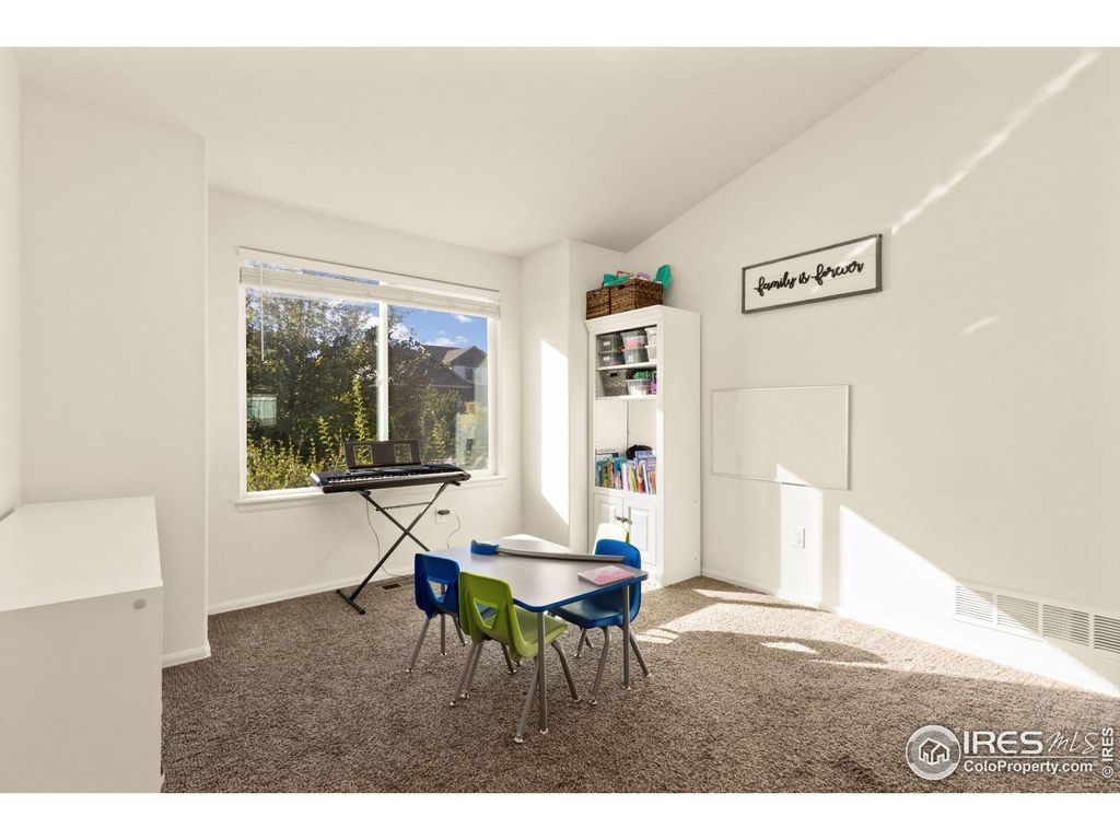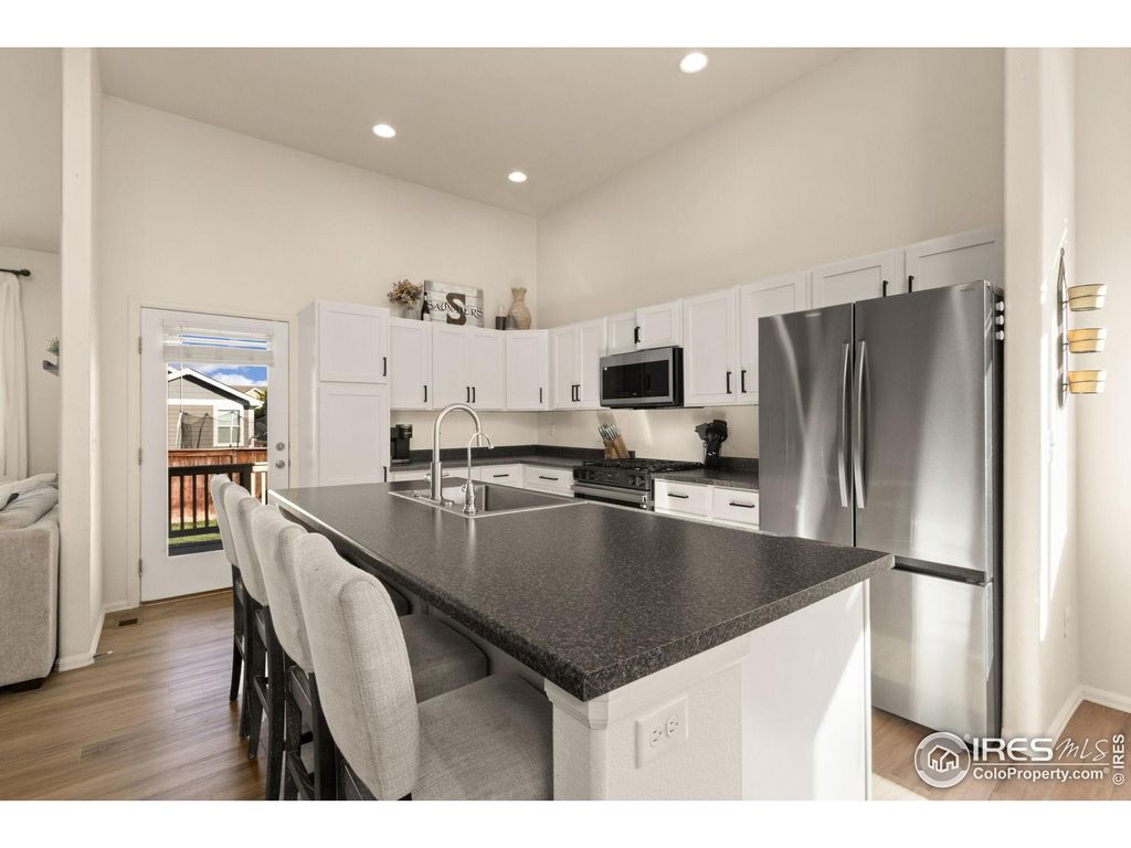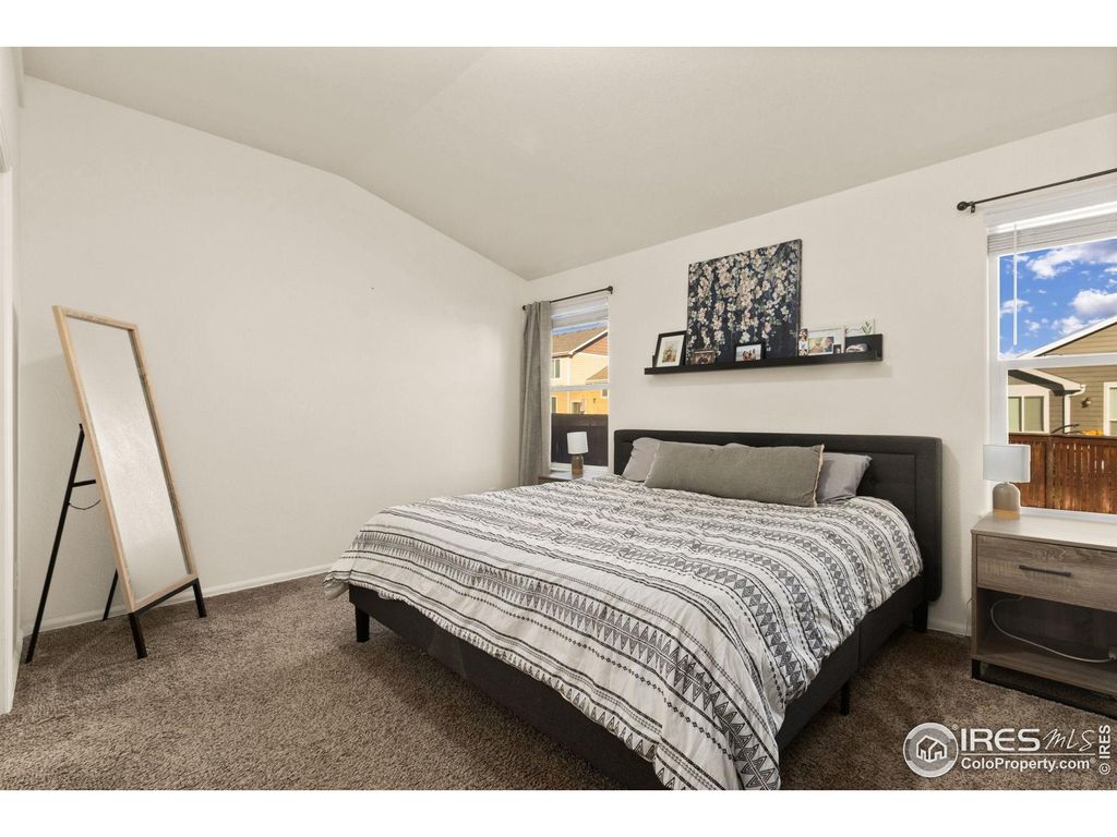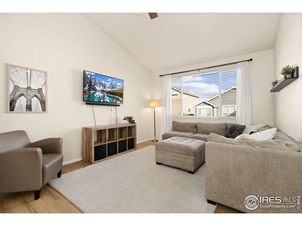 OPEN HOUSE SUNDAY OCTOBER 26TH FROM 1-3PM!! Beautiful 2-story home in the desirable Raindance community featuring a main floor primary suite with large walk in closet and private bathroom. Convenient main floor office with shiplap accent wall and pocket French doors. The open-concept layout includes a bright eat-in kitchen with white cabinetry, cabinet pulls, single-bowl stainless steel sink with filtered water dispenser, and new Samsung appliances. New LVP flooring flows throughout the main level, creating a fresh, modern feel.Upstairs you'll find two additional bedrooms and a full bathroom, while the unfinished 1,239 sq ft basement provides endless opportunity for future expansion or storage. The main floor also offers laundry and 2.5 total bathrooms throughout the home.Enjoy outdoor living on the covered deck overlooking a fully fenced backyard-perfect for pets, play, and entertaining. Raindance offers resort-style amenities including golf, a community pool, water park, trails, orchards, and easy access to I-25 for commuting to Fort Collins, Loveland, Greeley, or Denver.