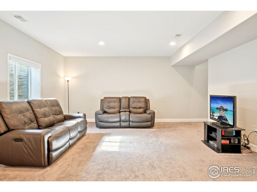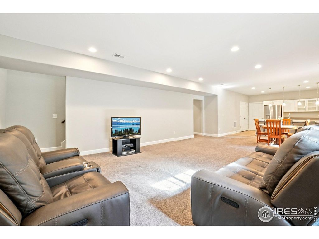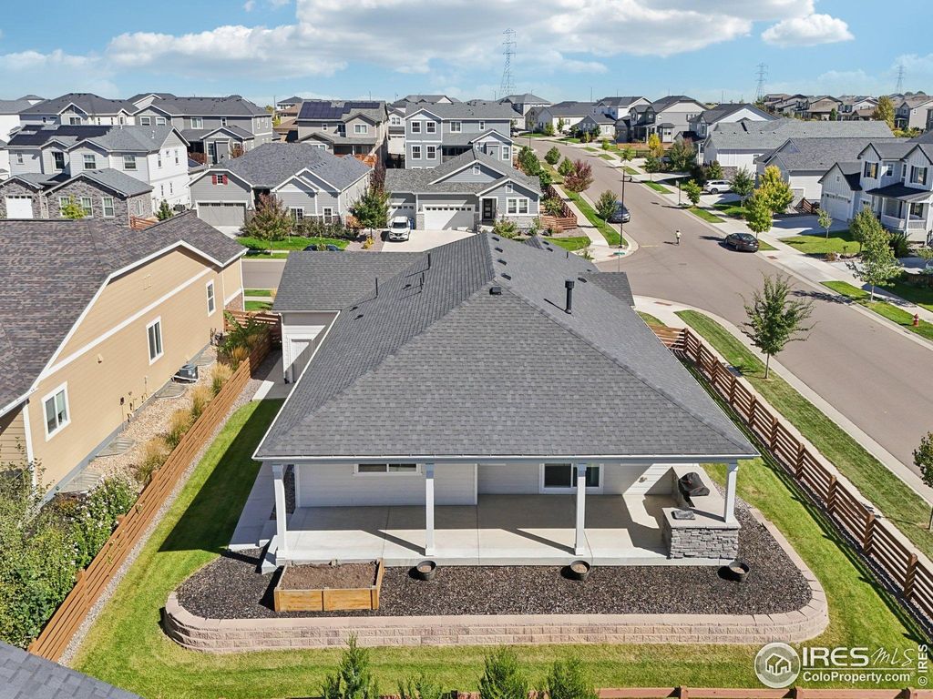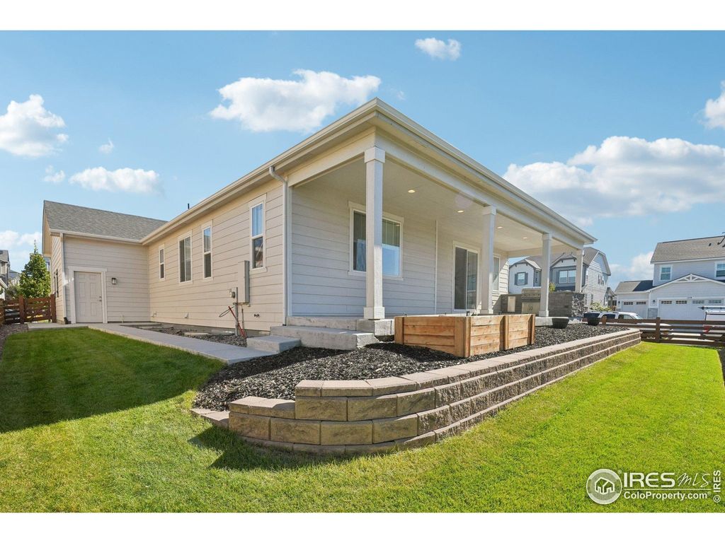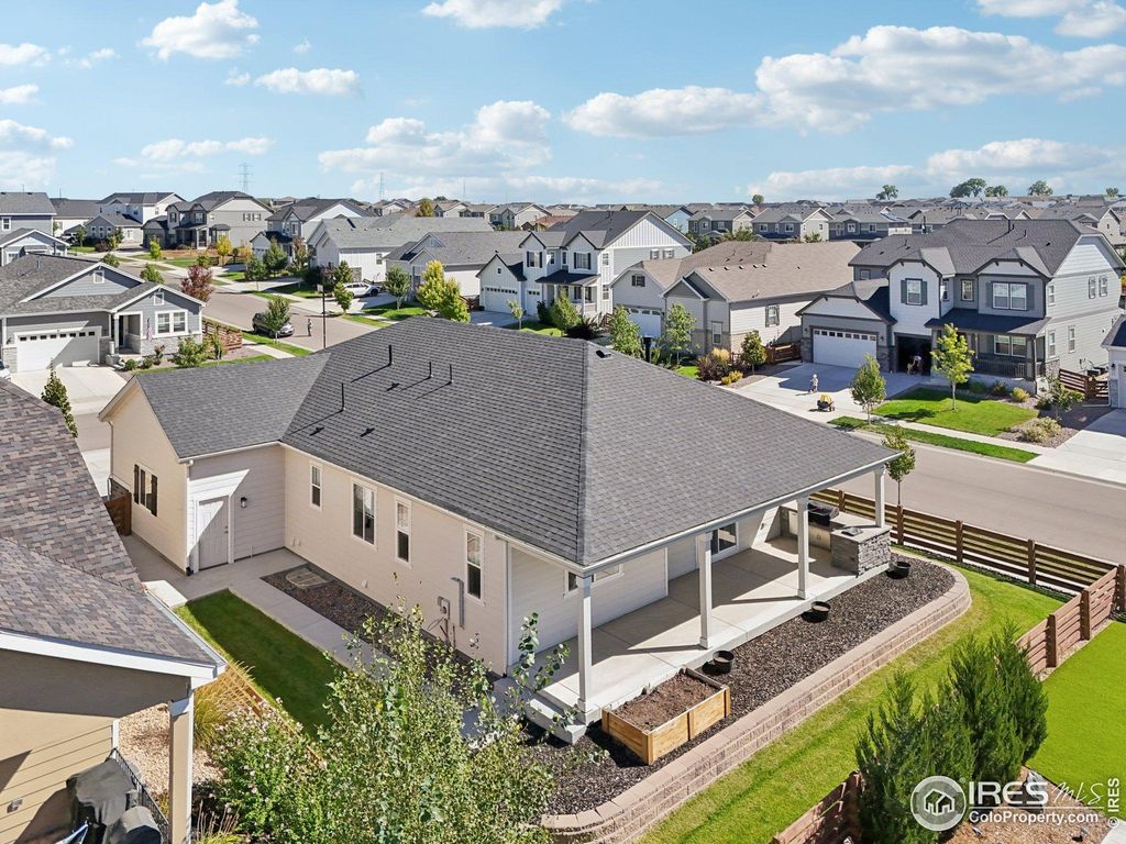Welcome to 784 Sundown Way, nestled in the sought-after Colliers Hill community in Erie. This 5 bedroom ranch stylehome is move in ready and ideally situated on a corner lot with a 3 car garage, an extended covered patio and built-inoutdoor kitchen. Welcome inside to find a light-filled, open-concept floorplan featuring high ceilings, timeless finishes, andthoughtful design throughout. The gourmet kitchen is the heart of the home, showcasing an expansive center islandperfect for meal prep or casual gatherings. Beautifully appointed with quartz countertops, stainless steel appliances-including double ovens and a gas cooktop-and abundant cabinetry, the kitchen is both functional and elegant. Theadjacent dining area and great room create a seamless flow for everyday living and special gatherings alike. Thesouthwest facing covered patio can be enjoyed year around, with views up the street to the open space and neighborhoodtrails. The outdoor kitchen boasts a 4 burner grill and ice bin for convenience. The spacious primary suite offers a peacefulretreat with a spa-inspired five piece bath and generous walk-in closet. Two additional main floor bedrooms provideflexibility for family, guests or working from home. The finished basement adds incredible versatility, hosting a wet barwith seating, a full sized refrigerator and second pantry. Imagine the possibilities for a home theater, fitness area, rec orgame room and still have plenty of room for storage. Other details include 9' doors, trimmed out windows, upgradedshelving and pass through access to the main level laundry room. Gutters and roof are 2 years old with impact resistantshingles! Living in Colliers Hill means access to outstanding amenities including a community clubhouse, pool, parks, andscenic walking trails-all just minutes from downtown Erie's shops, dining, and top-rated schools.