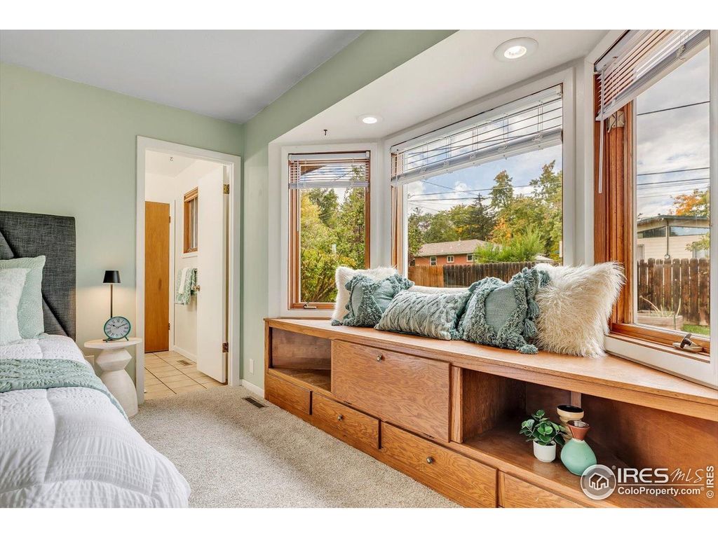 Well-maintained and thoughtfully expanded one-level ranch, nestled on a quiet, no-through street in Boulder's desirable Baseline-Aurora 7 neighborhood. Just a half block from two high-performing schools - Boulder Community School of Integrated Studies and High Peaks Elementary. With nearby Aurora 7 Park and, Aurora 7 Park, and Boulder's extensive pedestrian trail system, this home offers the perfect blend of comfort, convenience, and natural beauty. Inside, an open floor plan features hardwood floors throughout the main living areas. The spacious living room is anchored by an antique potbelly woodstove on a stone hearth-adding warmth and character. The kitchen offers extra cabinet space, a gas range/oven, and a brand-new stainless steel refrigerator, while the adjacent dining room with skylight opens directly to a large covered patio-ideal for indoor/outdoor living. The luxurious primary suite is a true retreat, with a private full bath, bay window with window seat and seasonal Flatirons views, two closets, and an adjacent office, sitting room, or nursery. Step outside to a private, fenced backyard with mature landscaping, including an apple tree bursting with green honeycrisp apples. Enjoy al fresco dining under the arbor-covered patio, or tinker in the attached garage with work bench.