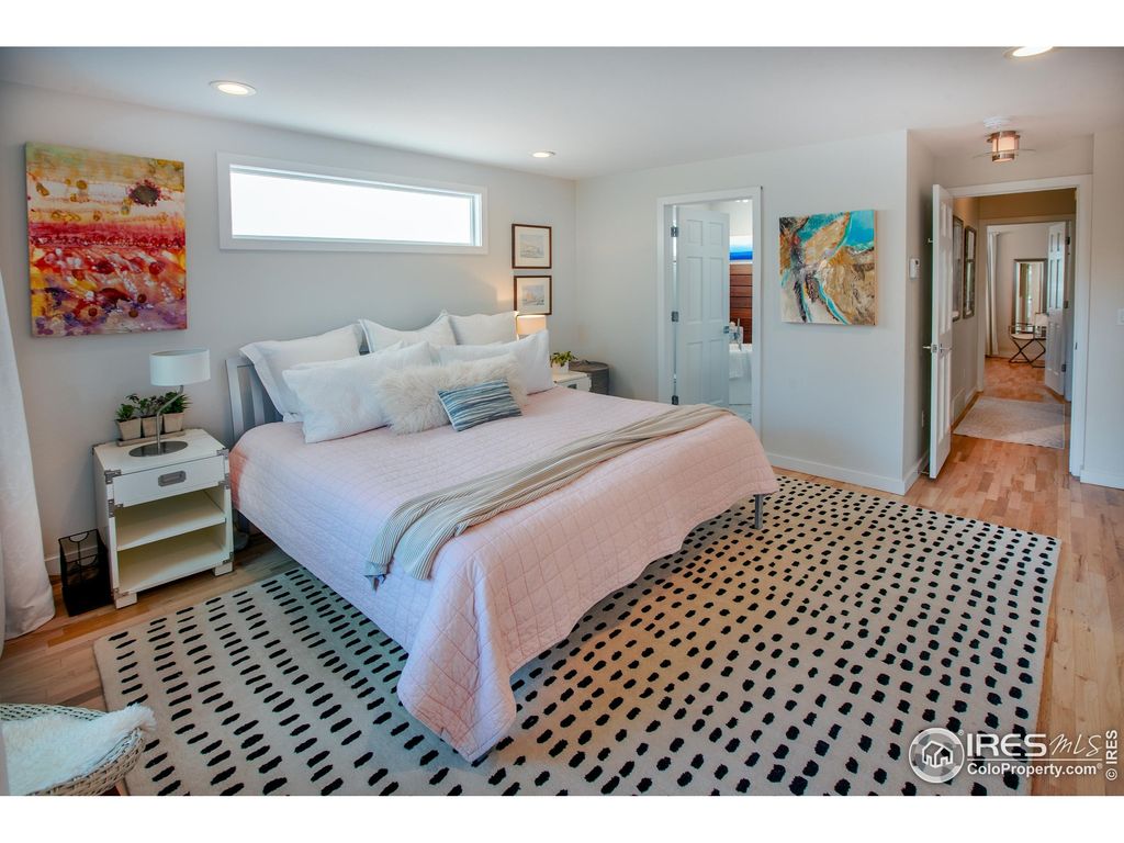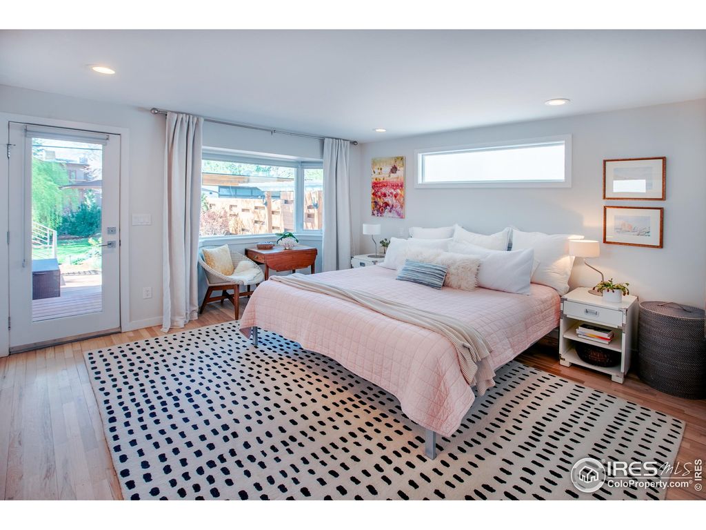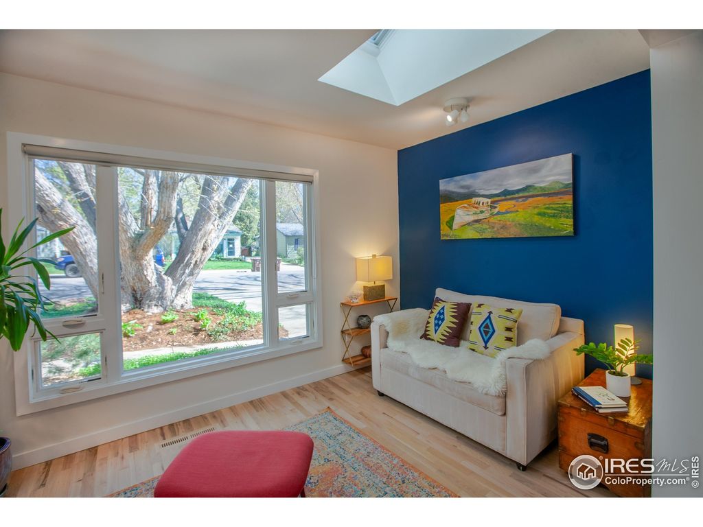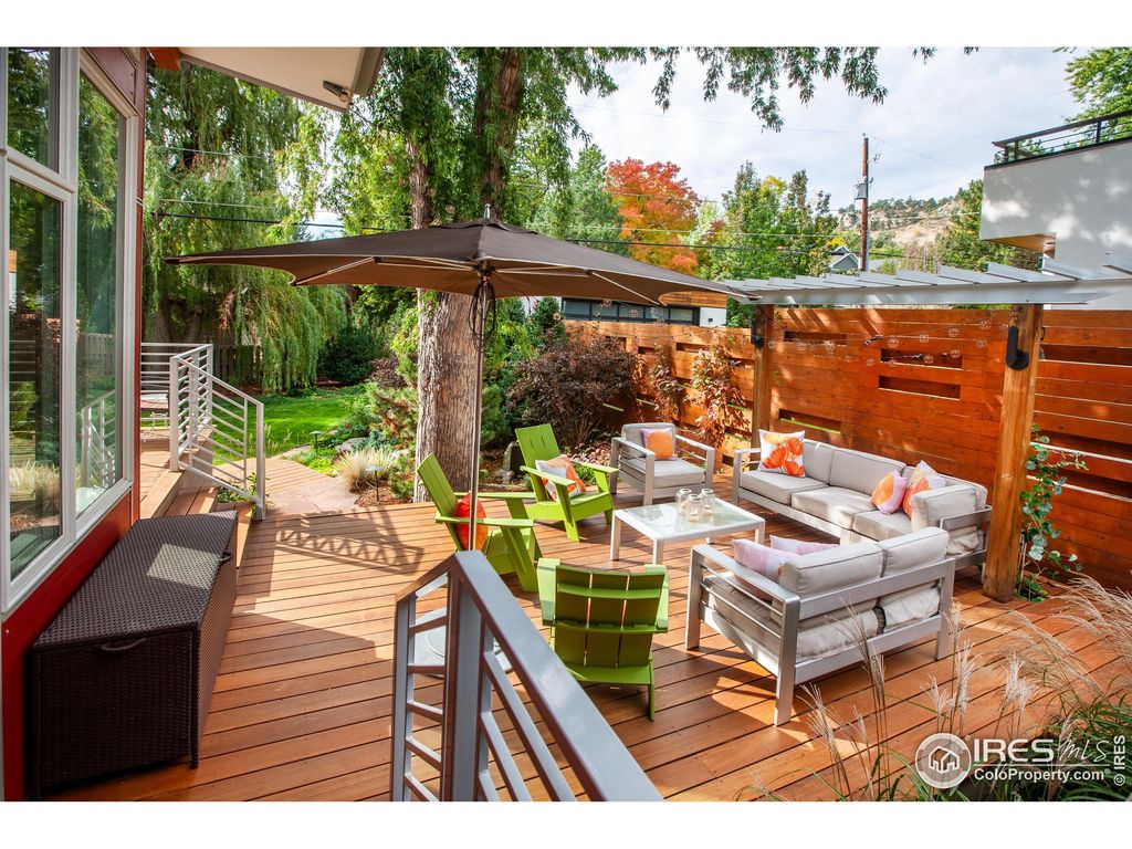 This stylishly renewed and expanded Newlands Ranch has charm at every turn. Remodeled by designer owner with many creative touches making for a warm, elevated feel. Graceful, private entry leads to open living area with skylights and windows out to the gorgeous exterior surroundings. Form and function are on display in the chef's kitchen with 5 burner gas range, Schott Ceran inductive burners, Elkay single bay sink, quartz counters, pantry + abundant cabinet storage, exotic Batu wood accent wall & gorgeous decorative tile, all making cooking a joy. Vaulted living room addition brings the outdoors in with with floor to ceiling windows on 3 sides and is anchored by a gorgeous fireplace with decorative tile and Batu accents. Updated primary bedroom with views of the outdoor gathering areas and gardens, his and hers storage wall, and fully renovated 5 piece bath with freestanding tub & Batu paneling accents. Peaceful morning room with barn-style doors looks out to the monumental Maple tree towering over the front yard attracting a community of local bird life. Each bedroom has it's own remodeled bathroom. Inspired designer lighting in every room. Step out the glass living room door to a backyard oasis. Stunning Batu deck system includes a dining area with fireplace and connected lounging deck that looks out to a gloriously landscaped yard with a garden fountain flowing into a babbling stream and pool - all of which recirculates to create a calming murmur of moving water. Walk across the bridge to the inviting grassy yard lushly landscaped with all the colors of each season. Artfully designed cedar fence creates privacy and accentuates the natural foothills view. New roof with solar panels. There is no wasted space in this house and every inch has been touched with artistic quality & bonus: it is all on one level! Just 3 blocks from access to all the trails of Mt. Sanitas and minutes to Ideal Market, Beleza Coffee, Santo, North Boulder Rec Center and North Boulder Park.