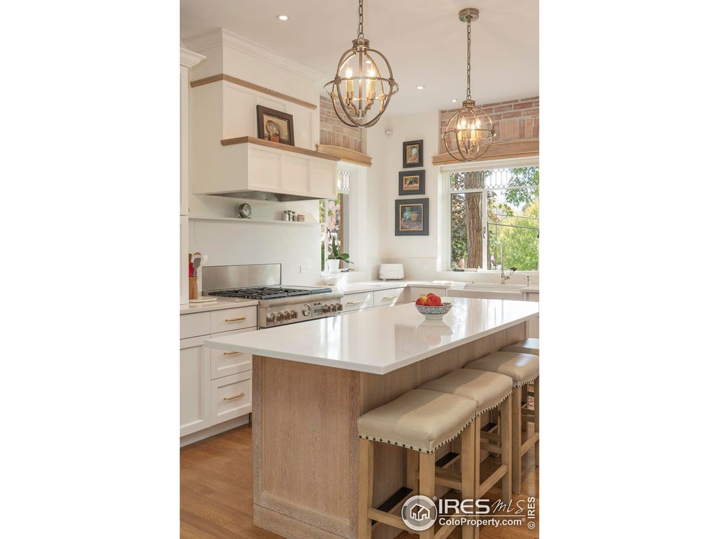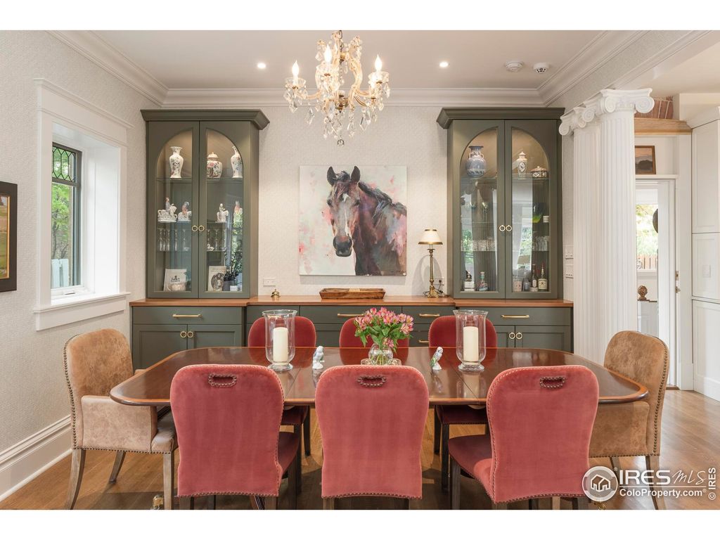 The iconic 1903 Moorhead House captures the enduring grace of Mapleton Hill while embracing impeccable design-forward living. Fully renovated just three years ago, exquisite craftsmanship shines through crystal chandeliers, oak floors, Ipe Brazilian wood deck, custom built-ins, and intricate woodwork. Intentional design reflects a sense of heritage and warmth, illuminated by natural light throughout the day. The expansive South facing front porch is a cherished retreat - perfect for quiet mornings or golden-hour evenings overlooking the lush gardens. For gatherings and dinners, an enclosed and private shaded brick patio off the kitchen offers an intimate setting beneath mature trees. Perched gracefully on a hill, leafy views in spring, summer, and fall and sweeping vistas of the Flatirons come winter- where elegance, light, and location converge. Enjoy a rare large and remodeled oversized 2-car garage plus an additional 2-car parking pad, and a fully fenced in lot. Modern conveniences include two appointed offices, and four bedrooms all fitted for king-size beds- each with ensuite full bathrooms. Just blocks from beloved cafes, Lolita's Market, wine shops, celebrated restaurants, and Sanitas Trailhead, this residence offers a seamless blend of historic character and modern convenience. Steps from Mapleton School park, three blocks to Pearl St., under a mile to the Farmer's Market and countless trails- this is downtown living at its finest!