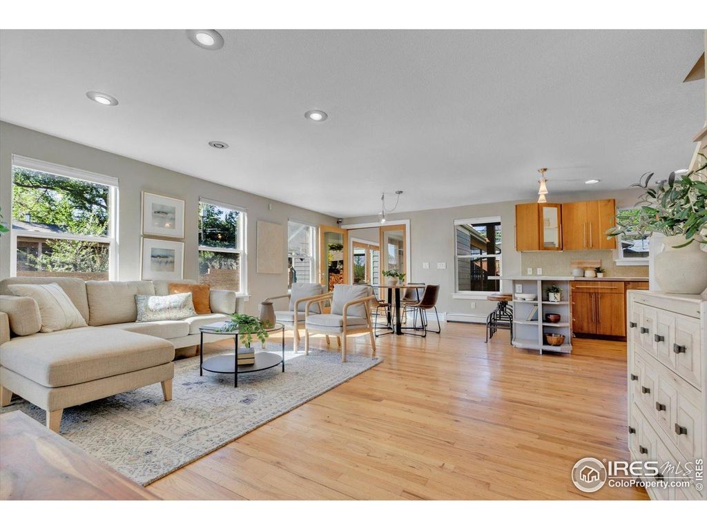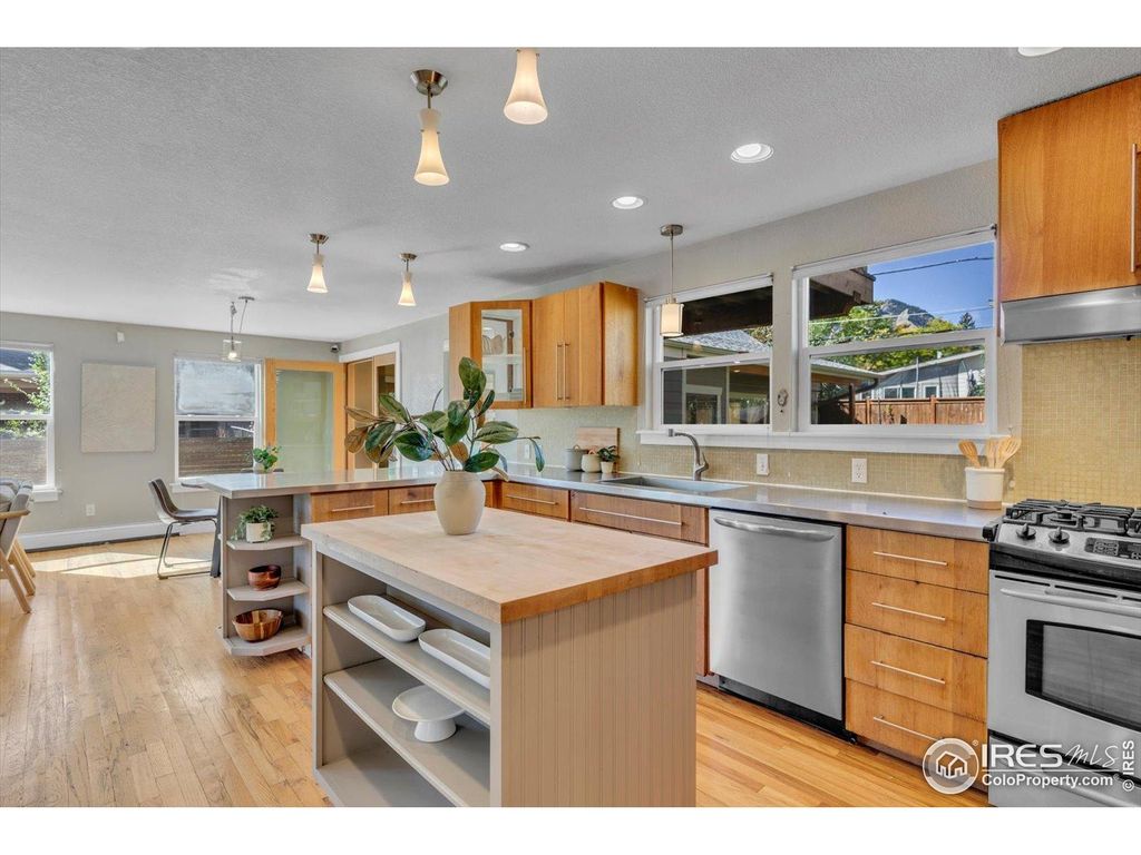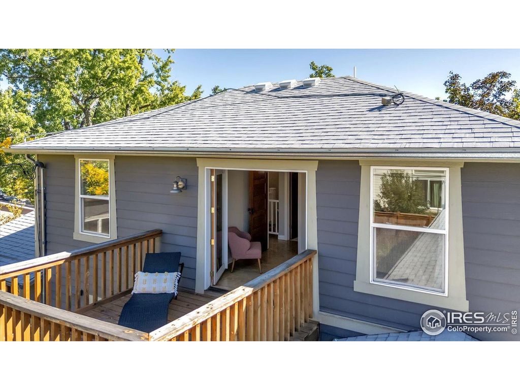 Say goodbye to the Table Mesa split-level blues! Welcome to 1305 Georgetown Road - a reimagined South Boulder home that offers warmth, character, and sweeping Flatiron views. The inviting front entrance is framed by large timbers and leads to a bright, open floor plan with wood and cork floors throughout and abundant southern light. Multiple indoor/outdoor access points create seamless flow for true Colorado living. The chef's kitchen opens to a stainless steel sitting bar and spacious living room. The bedrooms are retrofitted with turn of the century doors and hardware increasing the home's warmth and charm. Upstairs, the primary bedroom features a private balcony with stunning Flatiron views with a cozy landing nook/library at the top of the stairs. Just steps from the main living area down an enclosed breezeway, a bonus studio/flex area includes vaulted ceilings, 3/4 bath, and a separate entrance, which offers flexibility for guests, work, or creative space. Recent updates include a new roof (September 2025), tankless hot water, and PV and thermal hot water solar panels (owned) for energy efficiency. Outside, enjoy a custom-built playhouse with an escape slide, an oversized rear deck and quick access to legendary trails, hikes, and top-rated schools. Modern comfort meets Boulder lifestyle...A truly unique Table Mesa opportunity.