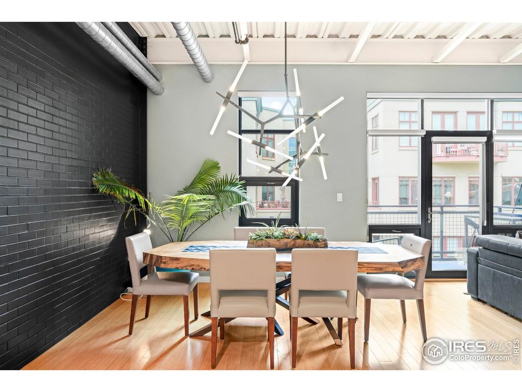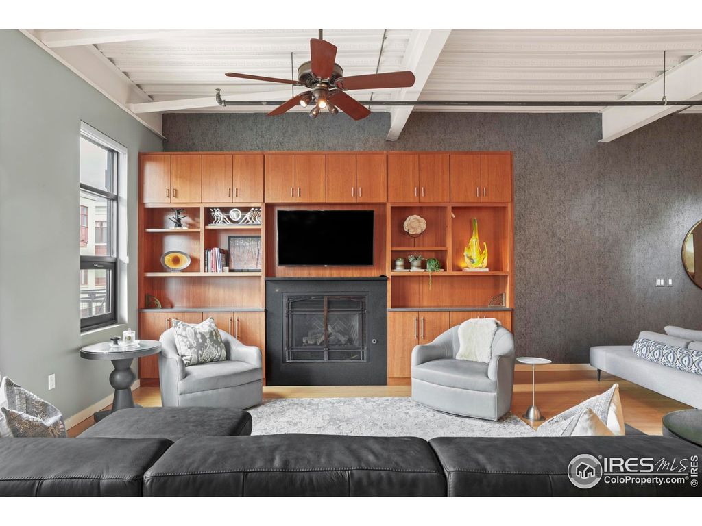 Urban sophistication meets mountain views in this downtown Boulder residence. Just one block from Pearl Street Mall, this luxury loft offers a rare blend of industrial character and refined design within a secure, low-turnover building. Southern exposure floods the open layout with natural light, while the private balcony captures sweeping Flatiron and sunset views. Inside, high ceilings, exposed ducts, and painted brick walls evoke a modern loft aesthetic, complemented by chic upgrades throughout. The kitchen impresses with cherry cabinetry, granite countertops, a pantry, and upscale stainless steel appliances. The living area showcases new custom wallpaper, a built-in cherry bookcase, and a fireplace that anchors the space with warmth and style. Retreat to the serene primary suite featuring California Closets and motorized Bali blackout shades. Additional highlights include bamboo flooring, a new HVAC system with a 10-year warranty, secured entry, an elevator, underground parking with storage, and an upcoming EV charging station option.