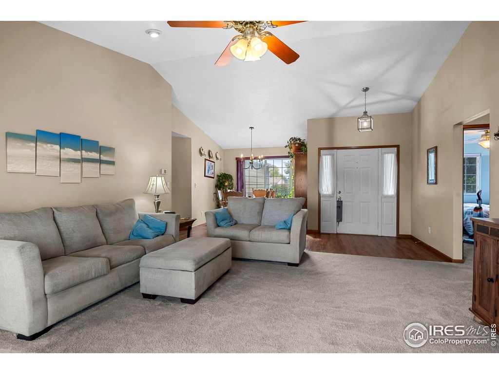 Welcome to this beautifully maintained 5-bedroom, 3-bath home backing to incredible open space with unobstructed views that stretch for miles. Located in a quiet cul-de-sac, this home offers privacy, comfort, and modern updates throughout.Enjoy updated bathrooms, a fully landscaped yard with sprinkler system, and a backyard that opens to a large hill with no homes behind-the perfect place to relax and take in the scenery.The finished basement is truly impressive, featuring a cozy gas fireplace, a spacious wet bar, and plenty of room for entertaining or hosting guests. With its open layout, natural light, and thoughtful upgrades, this home offers a wonderful blend of functionality and charm.Don't miss this rare opportunity to own a home with breathtaking views, beautiful finishes, and peaceful surroundings-all just minutes from Greeley's best amenities.
