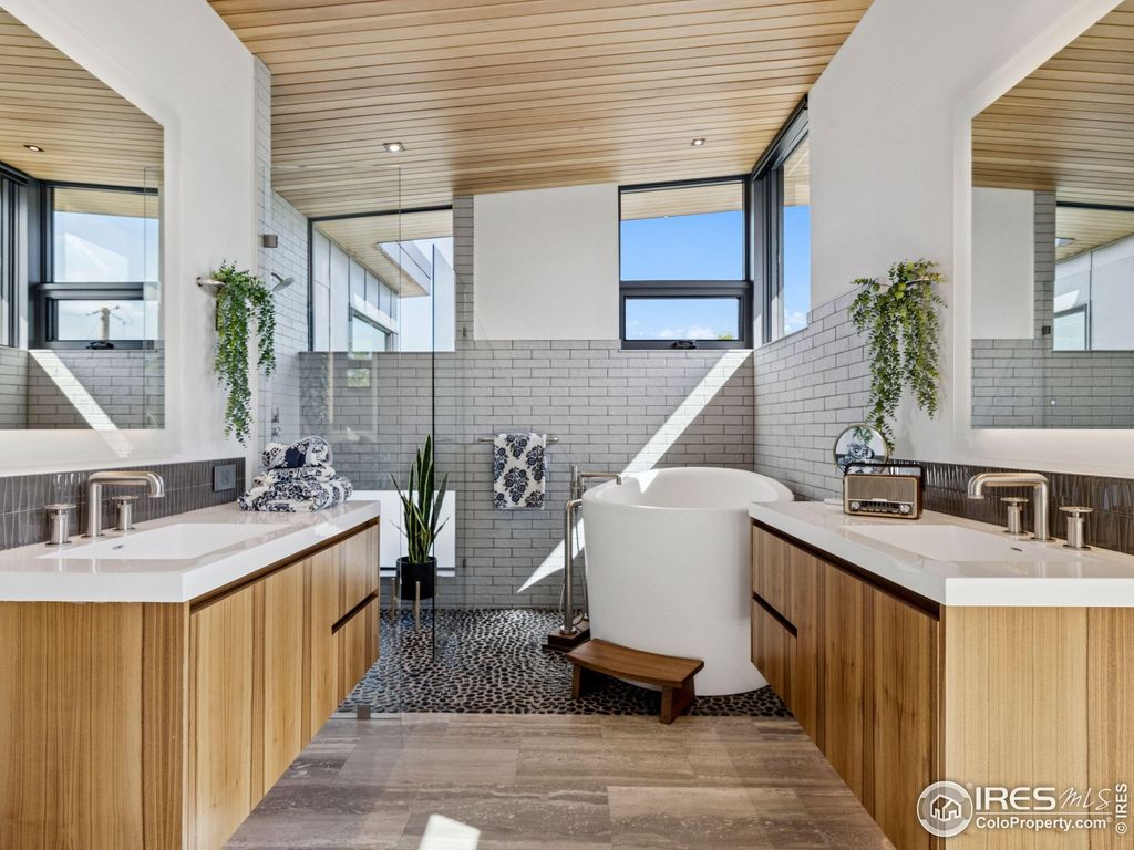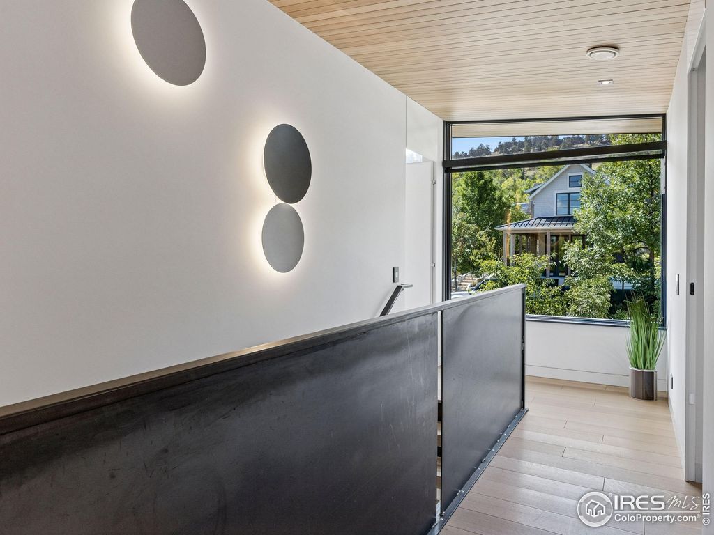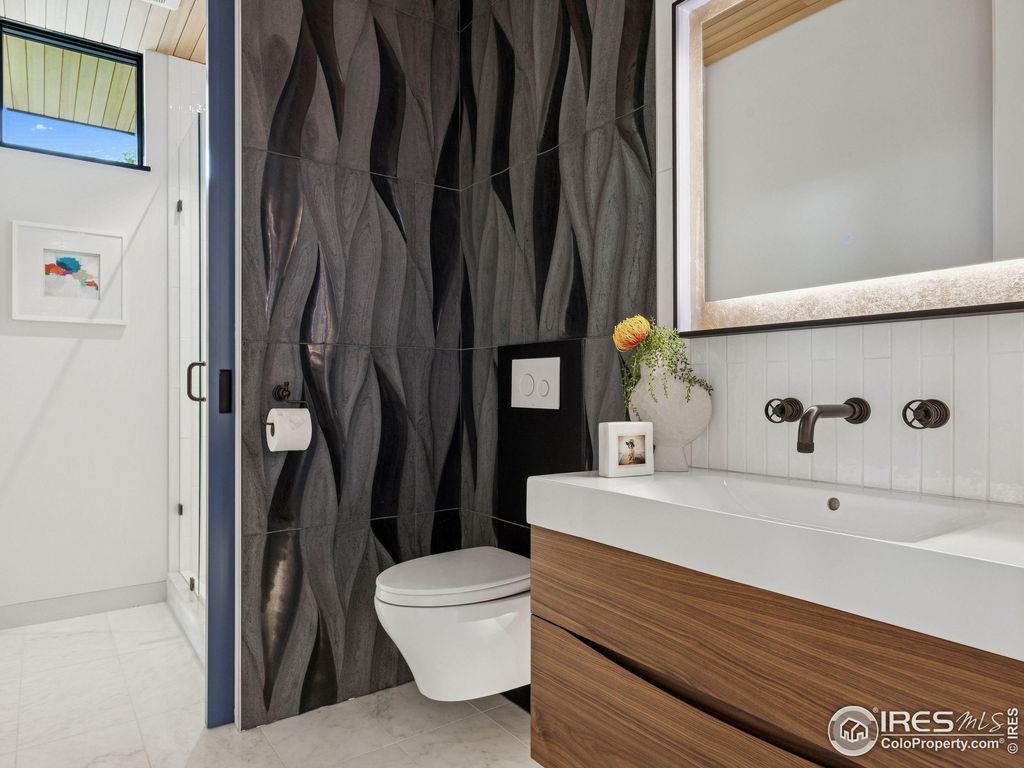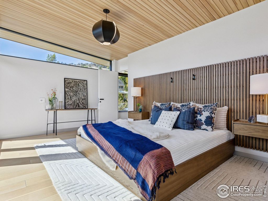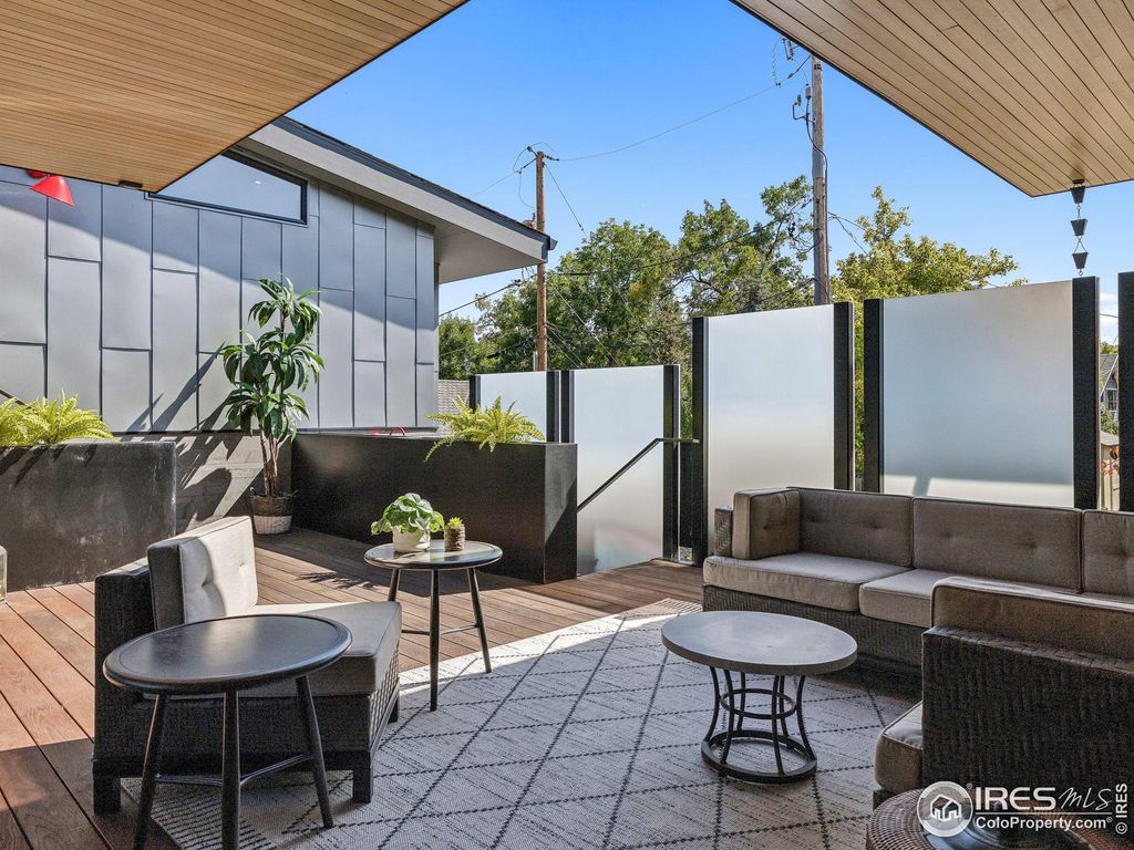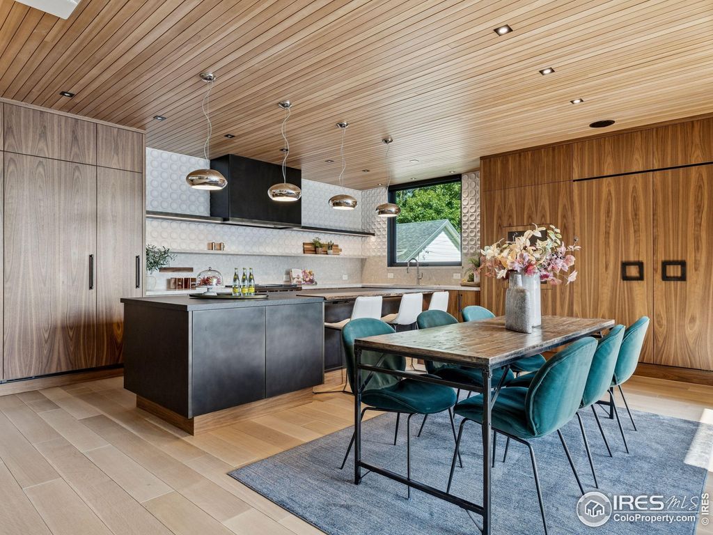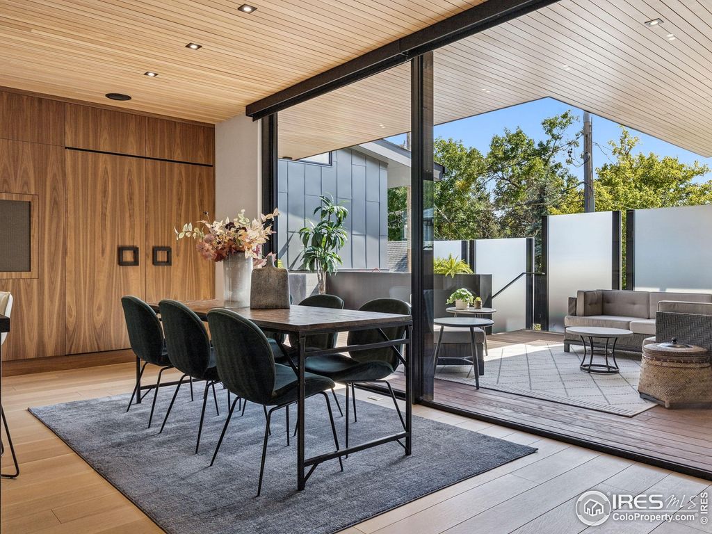 Boulder living on an architectural edge at 2656 4th Street, where art and design meets natural serenity and iconic Flatiron views. Thoughtfully designed with clean lines and warm textures, this residence blends gallery-like sophistication with effortless livability. The main level is built for elegant living and entertaining. A soaring glass entry, with white oak floors, floating staircase, and Flare fireplace sets the tone for the home's refined material palette. The chef's ready kitchen inspires connection with Neolith Retrostone counters, a Nero Zimbabwe Riverwash island, and Sub-Zero, Wolf, and Cove appliances. A sliding glass NanaWall opens the dining area to an expansive deck, creating seamless indoor-outdoor flow. Rounding out the main floor are a southwest-facing office that captures beautiful light, and a mudroom that keeps daily comings and goings tidy. Upstairs, the primary suite is a private retreat with a terrace oriented to the Flatirons. The spa-inspired bath features an Aquatica True Ofuro soaking tub, dual vanities, a Toto wall-hung washlet, and custom walk-in closet. Two additional bedrooms share this level, one with deck access giving way to the garden feel of the living roof. The lower level offers two bedrooms with a Jack-and-Jill bath, a stylish media room, and a flex-space that offers additional laundry hookups and dog wash station. Outside, irrigated landscaping, exposed-aggregate patios, and a living roof echo the home's modern aesthetic. A private ADU provides exceptional flexibility with an additional bedroom, bathroom, private entrance, sleek kitchen, dedicated climate control, and personal balcony space. Sustainability shines with a 6.84 kW solar array, HRV/ERV systems, radiant heat, and smart controls-all contributing to a remarkable HERS 15 rating. Just minutes from downtown, trailheads, and parks, this home defines the best of modern Boulder living-architectural artistry, everyday comfort, and a seamless connection to nature.