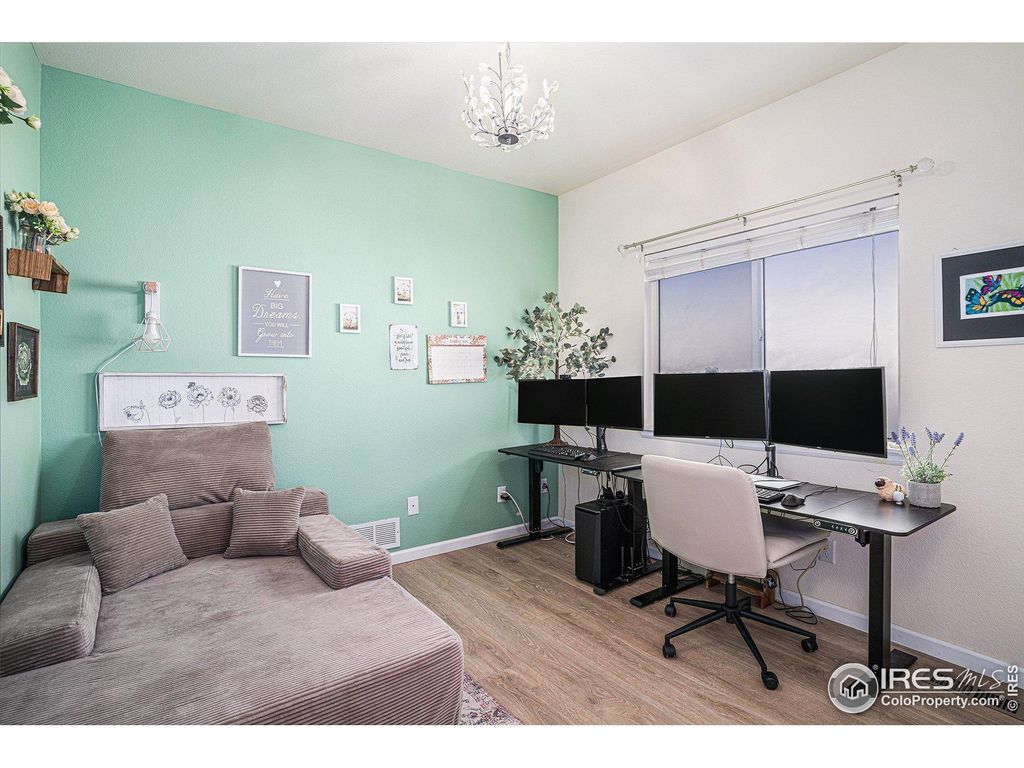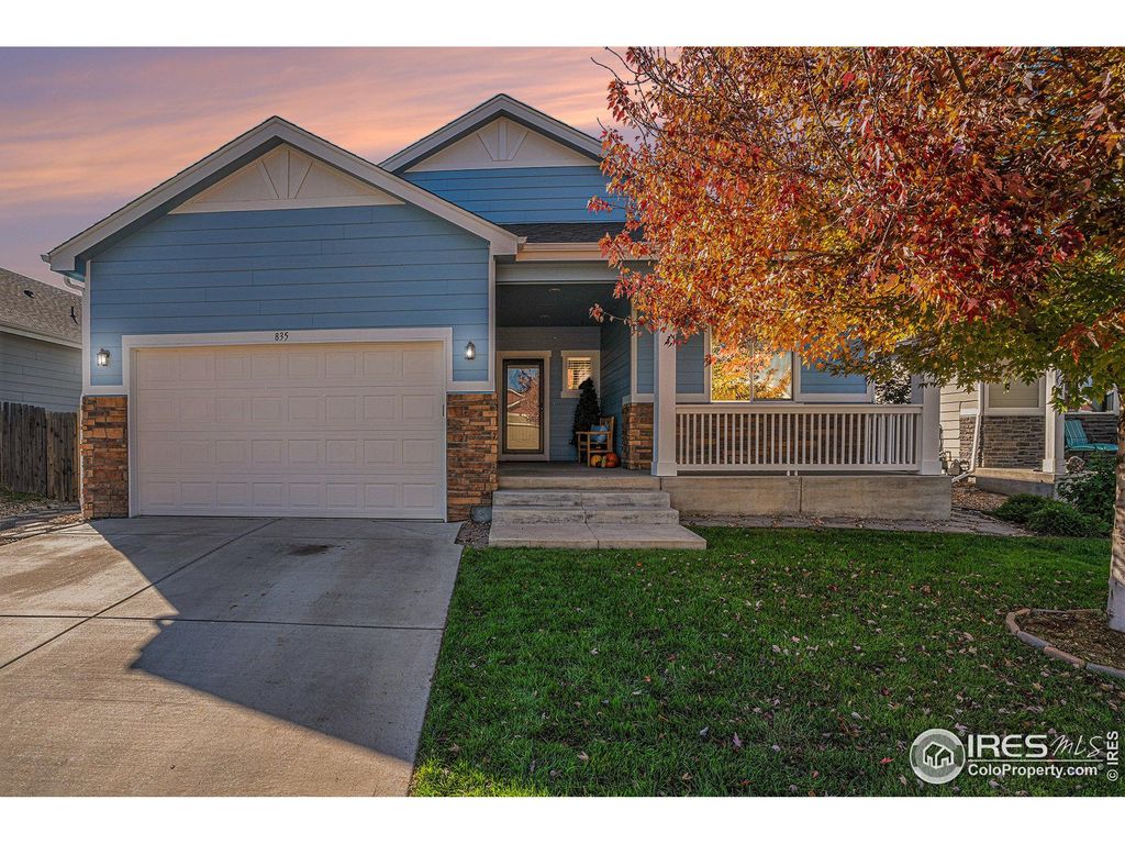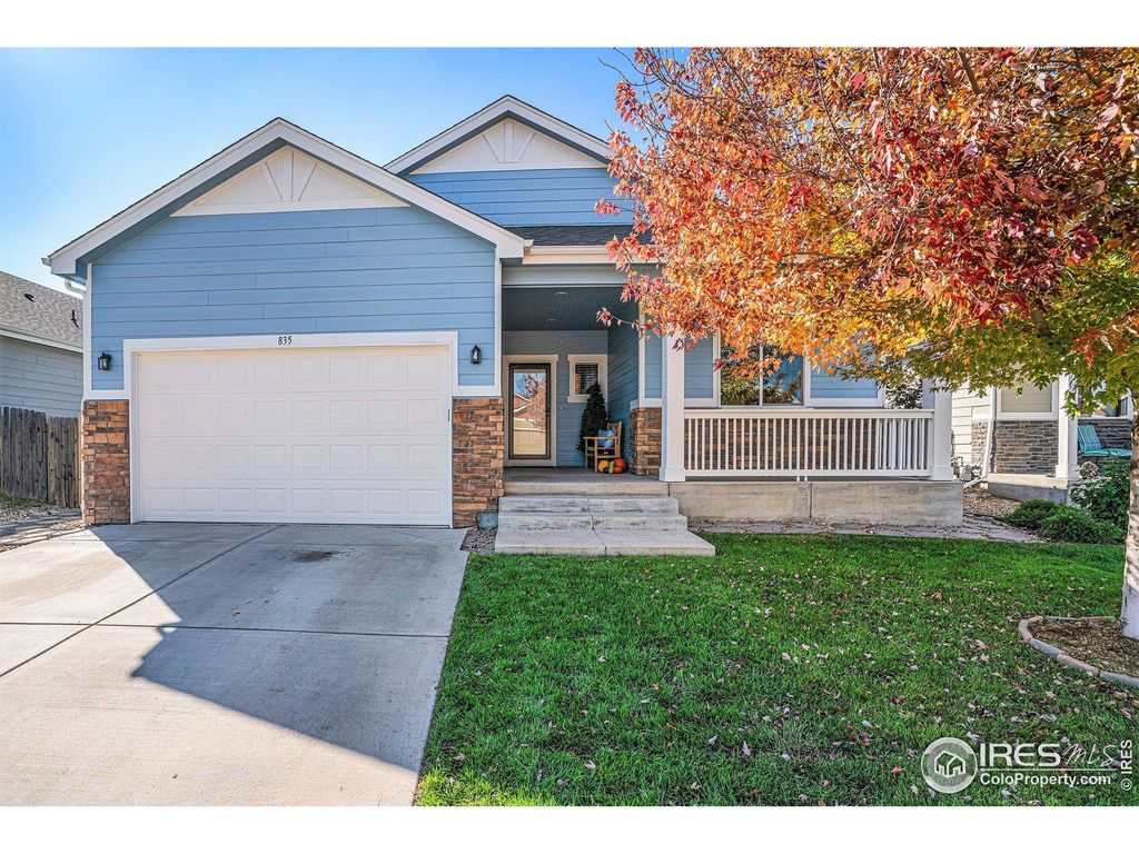 Price improvement! Welcome to this beautiful, turnkey ranch in the Colony Pointe community. From the cute front porch to the fenced-in backyard, this home has something for everyone. The main floor features a sun-filled living room with a vaulted ceiling that flows seamlessly into the kitchen and dining area. This big, open space is great for entertaining or relaxing. The gourmet kitchen is a chef's delight, equipped with stainless-steel appliances, quartz countertops, a pantry, an island, a banquette, and upgraded cabinets that provide ample storage and workspace. The generous primary bedroom has an en suite bathroom with glass tile in the shower and a walk-in closet. Two more bedrooms, a guest bath, and the laundry room complete the main floor. The unfinished basement with rough-ins offers room to grow, and the attached two-car garage has built-in shelving for extra storage. The home is loaded with updates, including luxury vinyl in the guest bedrooms, a Security Boss dog door, and a new roof with class 4 shingles (2021), backyard irrigation system with drip lines (2023), new exterior paint (2024), and new carpet (2025). Erlich Park, lake, and walking trails are less than a block away. All this with No Metro District tax. Come and experience Milliken's blend of small-town charm and easy access to Greeley, Loveland, and I-25.