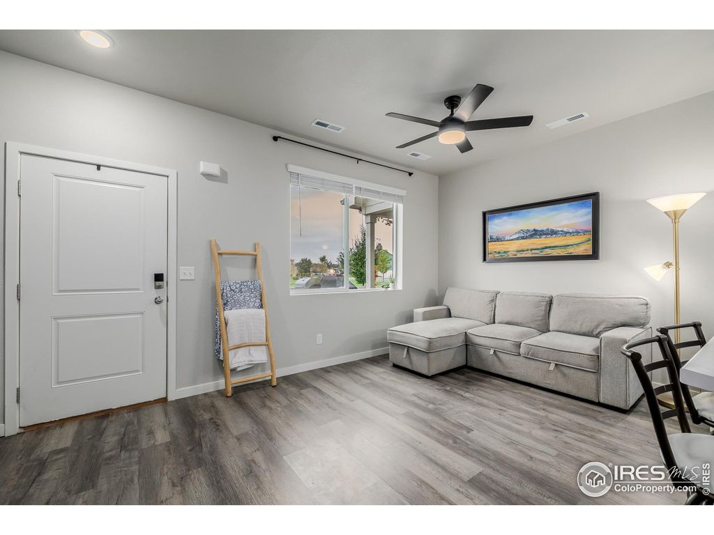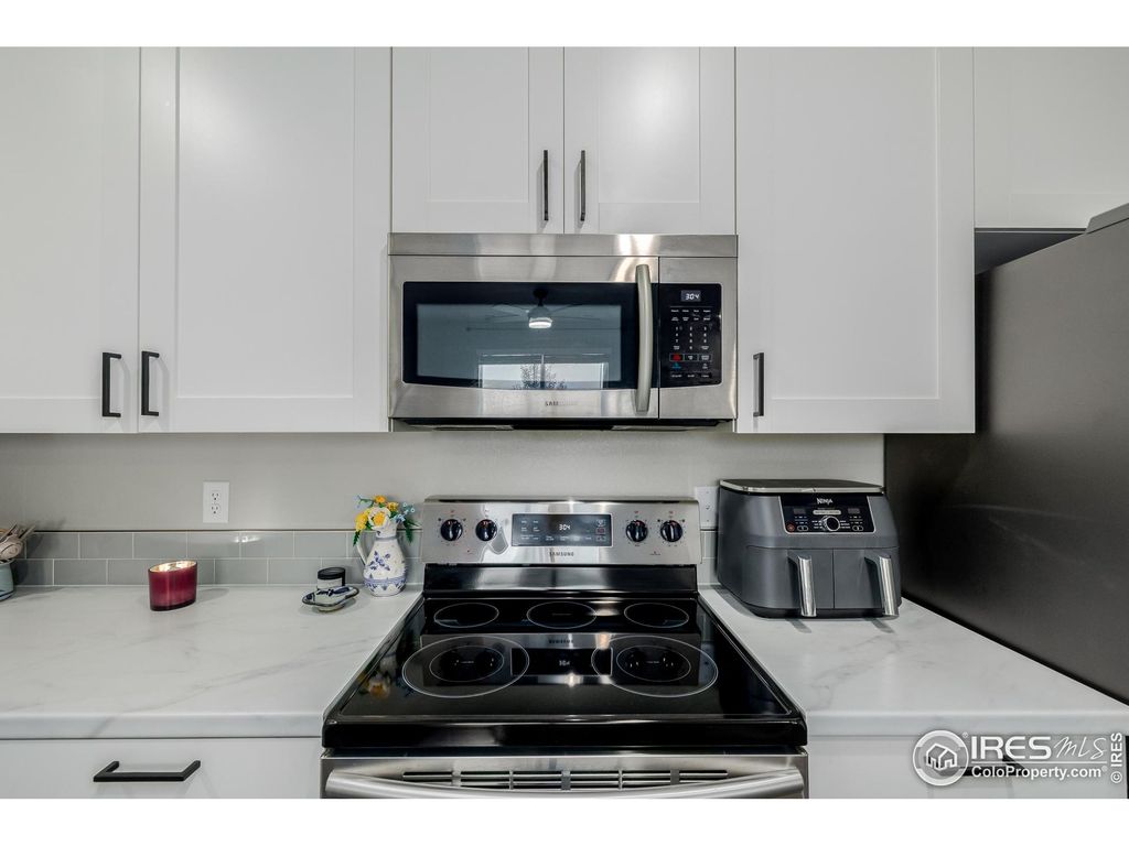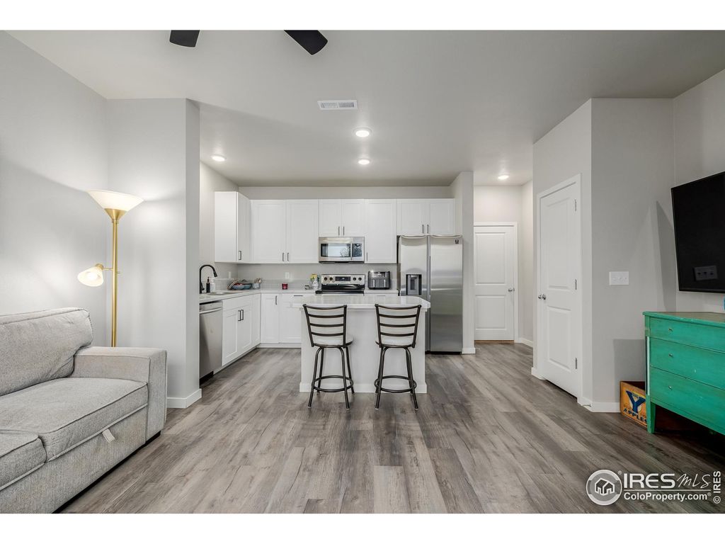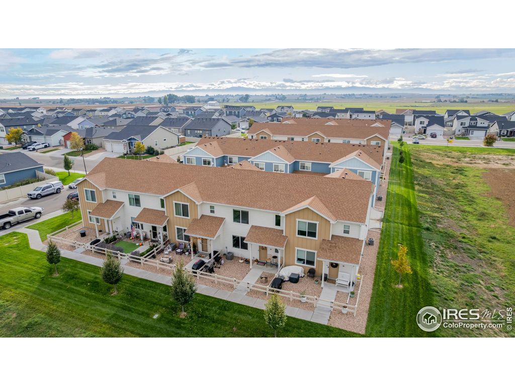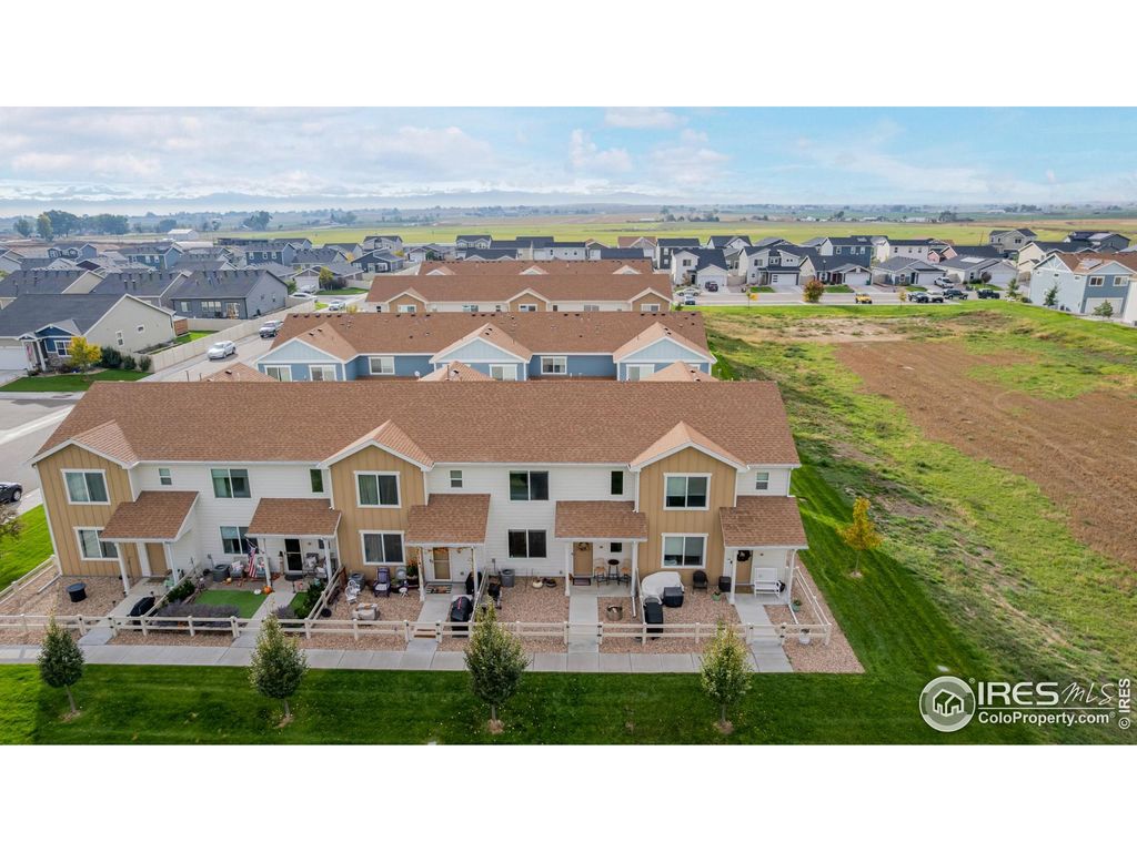 Facing one of the community's most desirable open spaces, this modern townhome captures an exceptional sense of light, air, and openness. The home's orientation offers an uninterrupted view across a wide green field, a rare and peaceful perspective that sets it apart. Morning light filters softly through the windows, while evenings bring the glow of golden hour skies that stretch beyond the horizon. Inside, the layout is thoughtfully designed for both style and ease of living. The main level flows effortlessly from the entry into a bright open concept living area, defined by contemporary finishes and timeless simplicity. The kitchen blends form and function with stainless steel appliances, quartz style countertops, and crisp white cabinetry that reflect the home's airy aesthetic. A center island anchors the space, offering additional prep room and casual seating that encourages connection and conversation. Upstairs, two spacious bedrooms each feature generous closets and abundant natural light. The full laundry room adds everyday convenience, while the well appointed bath provides a clean and modern retreat. A heated two car garage ensures comfort through the seasons, with additional storage for gear or hobbies. Beyond the walls, the sense of community thrives. Friendly neighbors, green spaces, and nearby parks create an atmosphere that feels both vibrant and welcoming. Proximity to the bus stop, local amenities, and trails makes daily living simple and connected.