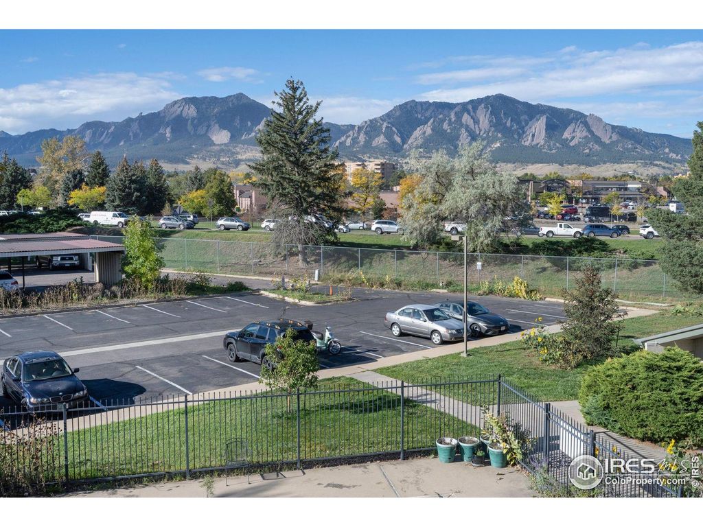 Updated Top-Floor Condo is Priced to Sell! Enjoy stunning, unobstructed Flatirons views from this top-floor, southwest-facing condo in the desirable Chateau Village West community. Just minutes from CU Boulder, trails, shopping, public transit, and bike paths, this move-in ready unit offers the best of Boulder living. The open layout features updated flooring, lighting, and kitchen cabinets and appliances, plus crisp paint and a new bedroom fan and A/C unit. The spacious bedroom includes mountain views and a walk-in closet with extra storage. A full bath with vanity storage, low utility costs (electric only), and no interior traffic noise enhance daily comfort. Community amenities include a swimming pool, laundry facilities, assigned storage, two parking passes, and ample guest parking. HOA dues cover heat, water, trash, and snow removal. Cats welcome; no dogs permitted. Don't miss this opportunity to own a well-maintained, top-floor unit in a prime Boulder location.
