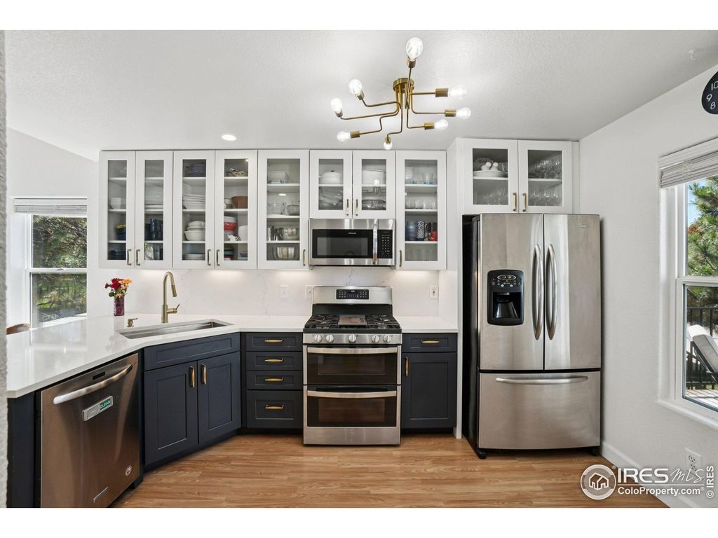 Beautifully updated 4-bedroom, 3-bath townhome-style condo featuring a functional, flexible floor plan and thoughtful modern design. Every surface has been improved- new flooring, new interior paint on the walls and ceilings, new kitchen cabinets, quartz countertops, a redesigned layout adding a formal pantry and walk in closet in the upper primary bedroom, new windows, attic insulation, new smoke detectors, and designer lighting throughout. All three bathrooms have been completely remodeled with modern finishes and quality craftsmanship. The HOA recently completed exterior painting, and the roof is only a few years old for added peace of mind. Enjoy bright, airy living spaces with bedrooms on every level and a welcoming main floor that opens from a brand-new front treck deck-perfect for morning coffee or evening relaxation. The lower-level family room offers additional space ideal for a home office, media area, or guest suite. Detached 2-car garage, in-unit washer and dryer, and no exterior maintenance thanks to the HOA. Enjoy community mountain views from the open space and a convenient location near golf courses, shopping, and restaurants with quick access to downtown Longmont and major commuter routes. Move-in ready and meticulously maintained-this home truly stands out in today's market.