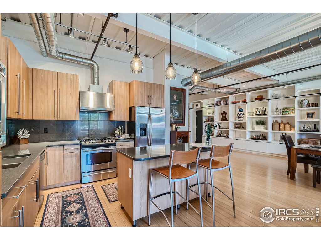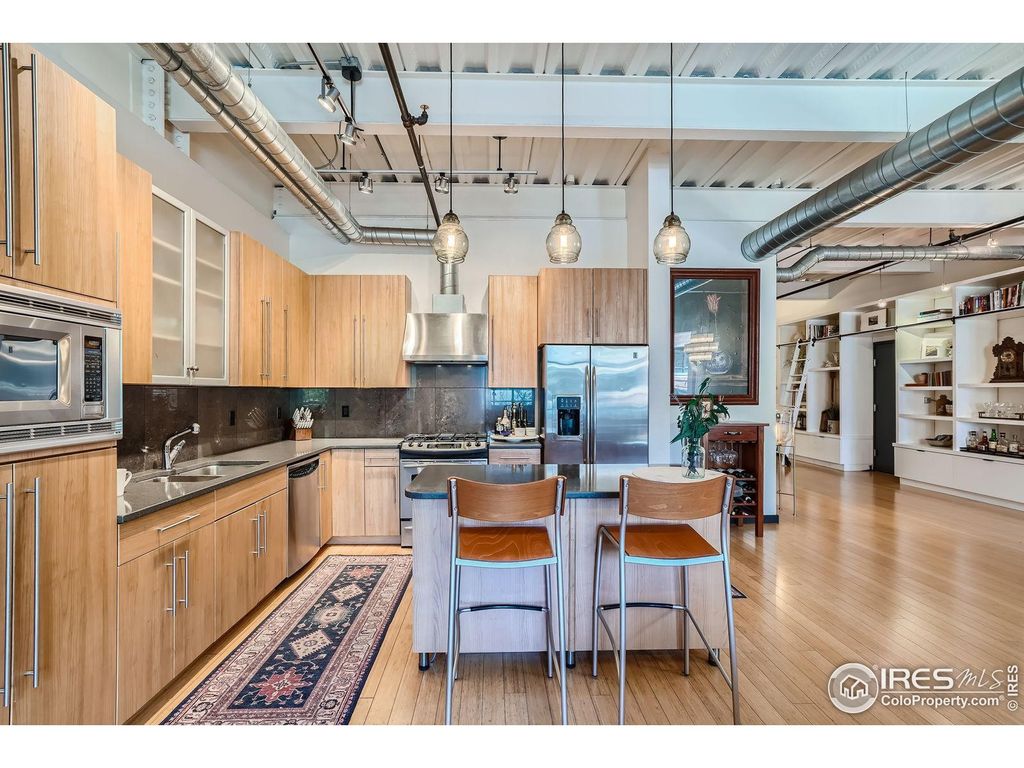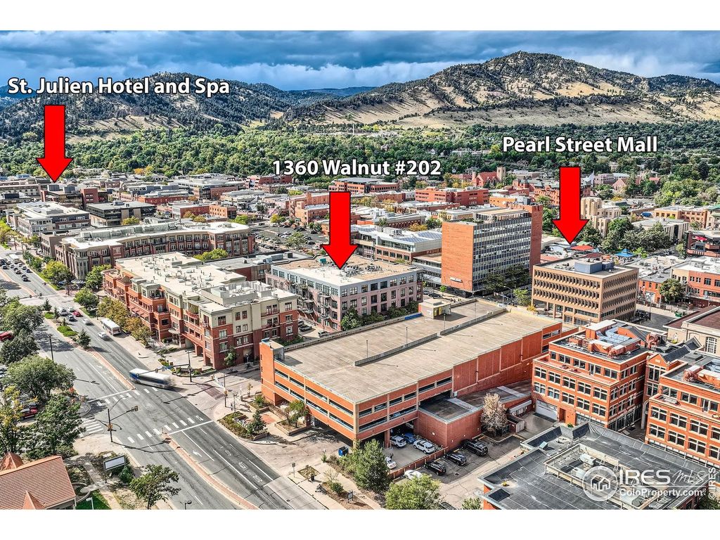 Embrace luxury living in the heart of Boulder! Welcome to 1360 Walnut #202! Experience all that Downtown offers just steps away from popular Pearl Street Mall, fine dining, shopping, trails, farmer's market and so much more! Glance up the street from your spacious patio to see the mountains or catch an occasional parade. A true industrial-style unit with the best floor plan in the building @ One Boulder Plaza! 1496 sq ft with plenty of room to spread out! This will make an excellent unit to enjoy the Sundance Festival coming to Boulder! Rich with amenities such as bamboo floors, spacious chef's kitchen, stainless steel appliances, extra high ceilings, open living/dining areas, custom fireplace made of Italian marble, generous covered deck for entertaining. Enjoy full height wall shelving to display your fine art and possessions, and floor to ceiling windows for plenty of light and fresh air to come in. Pamper yourself in a custom 5-piece bath with steam shower and soaking tub, large primary bedroom & walk-in closet. Extra space for an office area or murphy bed plus ample storage throughout or add a wall to close it off. Secure building monitored 24 hours with elevator, underground parking and storage. Water included in HOA! Convenient deeded parking space right off the elevator. Perfect lock & leave home or rental investment with easy access to the airport! LOAN might be assumable! Call for details!