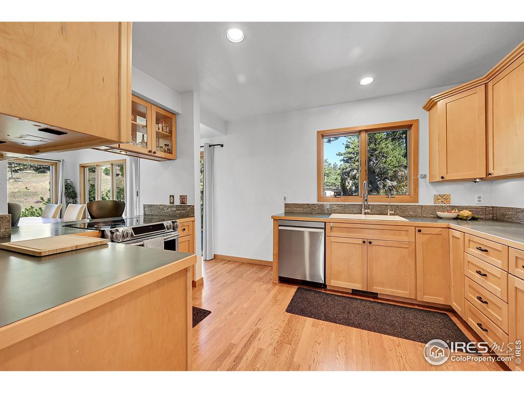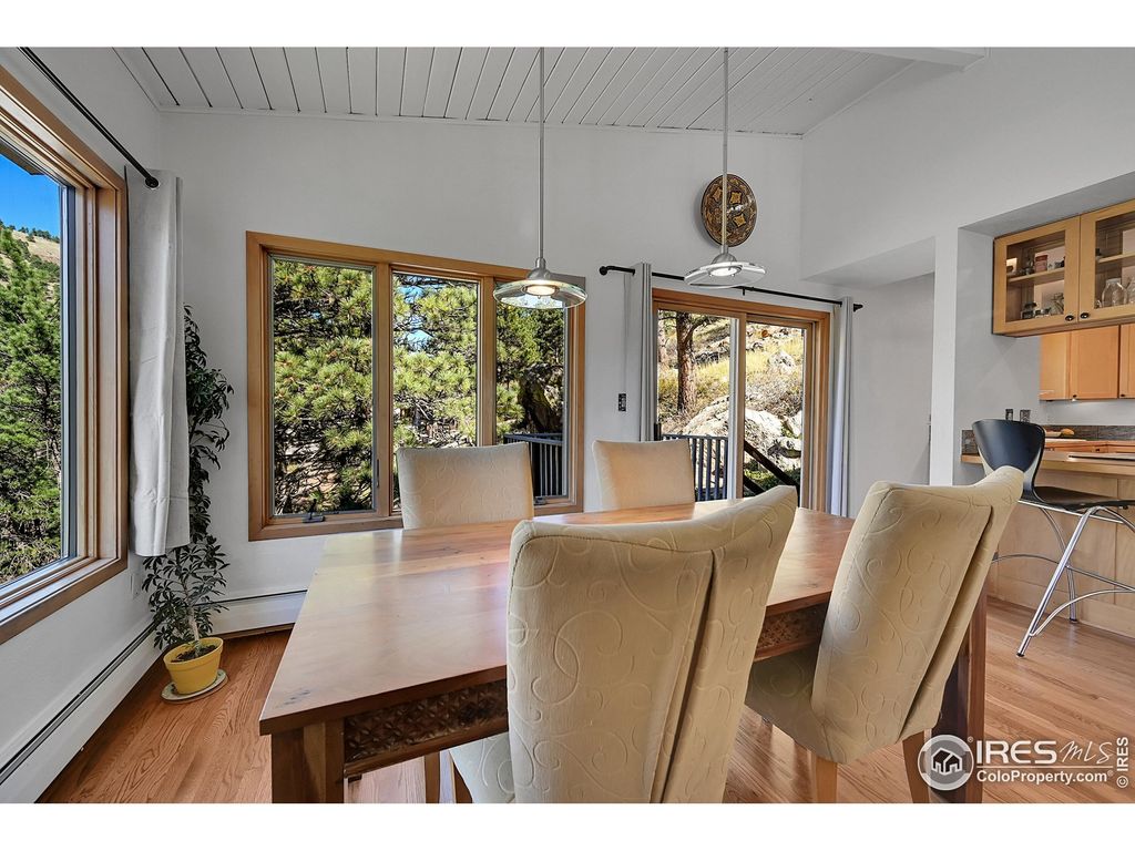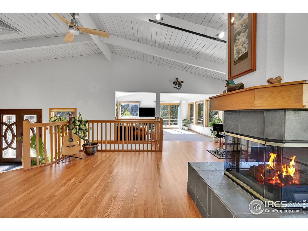 Perched just ten minutes from downtown Boulder and the iconic Pearl Street Mall, this mountain retreat perfectly balances natural serenity with city sophistication. From the moment you step inside, the panoramic views steal your breath-walls of glass framing unbeatable views, golden light pouring through soaring, beamed ceilings, and a striking double-sided fireplace that anchors both living and dining spaces in warmth and style. A brand-new south-facing deck invites sunset gatherings. Inside, custom wood floors and natural textures create a seamless flow between form and function. The kitchen combines elegance and practicality with updated appliances, bespoke cabinetry, and an effortless connection to the outdoor entertaining areas. The primary suite is a tranquil escape under vaulted ceilings with an ensuite, while the secondary bedroom offers its own private bath. Downstairs, a fully equipped apartment-with wood-burning fireplace, kitchenette, and separate entrance-provides an ideal guest retreat or income-generating opportunity. With all-new high-efficiency windows, a fire-resistant roof, new decks, and extensive upgrades throughout, every detail of this home reflects thoughtful stewardship and refined mountain living. On one acre of private, pine-framed beauty, this property will make you feel a sense of peace and privacy just moments from everything Boulder offers.
