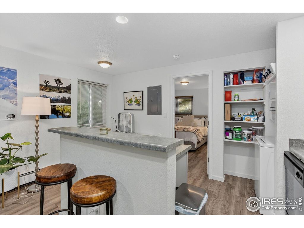 Completely remodeled and move-in ready, this beautifully updated one-bedroom, one-bath condo sits directly across from the University of Colorado Boulder-offering unmatched access, modern design, and effortless living. Following a comprehensive renovation in 2021, every inch of this 449 sq ft home was refreshed with contemporary finishes and thoughtful details, making it one of the finest units in the building.Step inside to a bright, open layout featuring new flooring, fresh paint, and an inviting living area that feels both cozy and stylish. The fully updated kitchen boasts sleek gray cabinetry, modern hardware, solid-surface countertops, and updated lighting-creating a clean, polished look. The bathroom features fresh tile, a new tub surround, and upgraded fixtures, while the bedroom offers generous light, closet space, and a calm, comfortable ambiance.A full-size washer and dryer are conveniently located in the unit, and efficient use of space ensures easy day-to-day living. The home's neutral color palette and crisp lines make it feel current and move-in ready, appealing to both students and discerning investors.The building is secure and well-maintained, with a small community feel and shared outdoor seating area perfect for relaxing or studying outdoors. Off-street parking behind the building is available on a first-come, first-served basis-an incredible perk this close to campus.With the university right across the street and quick access to The Hill, downtown Boulder, and public transportation, this modernized condo delivers unbeatable convenience and strong long-term value in one of Boulder's most desirable rental or ownership locations.