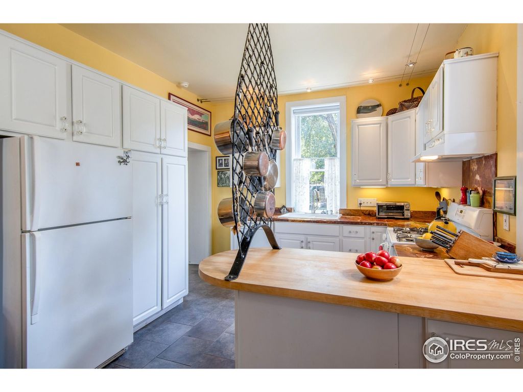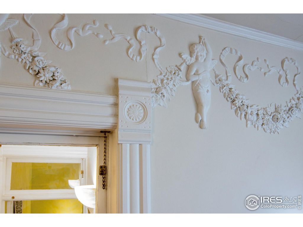 Come home to this jewel of a Victorian condominium on the main floor of the historic landmarked Whiteley-Hellems house. One of six condos on the property, and rarely available, this 2 bedroom 1 bath ground floor unit is stunning in it's elegant details. Invite guests into the large cozy living room/dining room with its warm marble gas fireplace. A landmarked frieze of plaster cherubs circles the living room walls. The sun pours in the west-facing double hung windows, lighting up the beautifully-crafted interior, including paneled walls with chair rail and interior transom windows over doorways. Step into the sunny and spacious eat-in kitchen with in-floor heat and a generous mud room area. Enjoy easy access to the spacious patio from the kitchen for morning coffee and al fresco dining. The primary bedroom is artful and serene with stained glass windows, parquet wood flooring and a large walk-in closet. The 2nd bedroom has an exterior public entrance perfect for alternate use as a home office. Delight in gardening with your neighbors in the common area garden beds on this historic property. One parking space in a two car garage off the ally, conveniently adjacent to the back door of the condo for easy access. Perfectly located in the heart of central Boulder, with an easy stroll to Pearl Street, the Farmer's Market and Ideal Market area. Trails and bike paths nearby. Come home to Boulder. Available for showings starting 11/7/25.