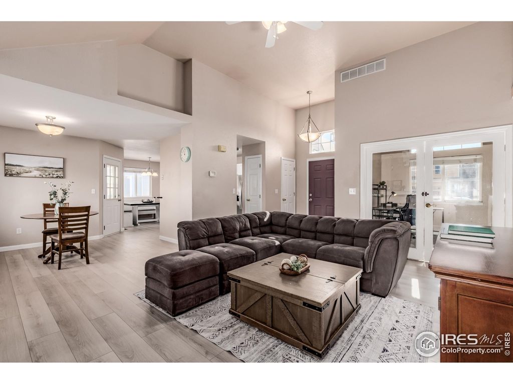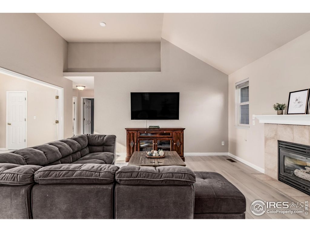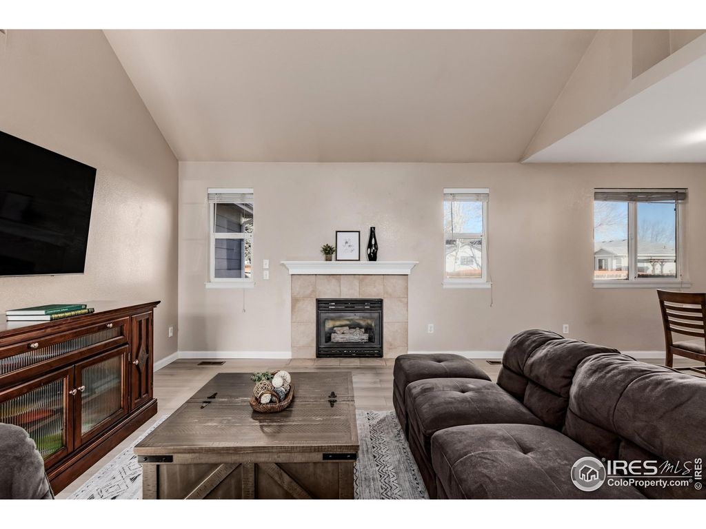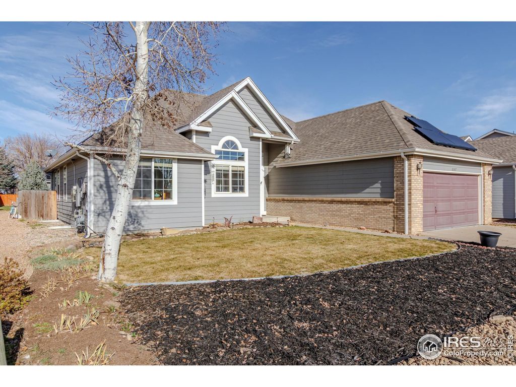 Step into this beautifully updated home in Johnstown's Podtburg Village! The south facing orientation fills the interior with natural light, highlighting the fresh LVP flooring that flows through the main level and the vaulted ceilings that create an open, airy feel. A fireplace adds warmth and charm to the living room.The kitchen showcases new stone countertops, newer stainless steel appliances, and an inviting eat-in area, complemented by a separate dining space for larger gatherings. One-story living features the spacious primary suite with tray ceilings, a walk-in closet, and a relaxing five piece bathroom and 2 additional rooms. The third room with French doors provides great flexibility and can serve as a bedroom, office, creative space, or additional living area. New carpet enhances all three bedrooms. A custom barn door leads to the partially finished basement, where a generous bedroom with an egress window and a full bathroom offer comfort and privacy. The remaining basement space is framed and ready for future customization. Out back, the fully fenced yard is ideal for enjoying Colorado evenings, complete with a covered patio, firepit, and a green belt just beyond the fence for added privacy. The front yard features sprinklers, fresh mulch, and beautiful perennial plantings. Solar panels and a new roof installed in 2024 add valuable efficiency and peace of mind. With a neighborhood park just a block away and quick access to I-25, this home offers both community living and convenient connectivity throughout northern Colorado with no metro district!