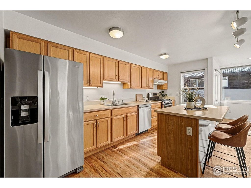Stunning lock and leave townhome ideally located on the west end of Pearl Street. The beautifully maintained grounds feature a Zen garden inspired courtyard, creating a private oasis just steps from coffee shops, local restaurants, the Pearl Street walking mall, and nearby hiking trails. This three bedroom, three bathroom residence is filled with natural light, thanks to picture windows that illuminate the space. Hardwood floors flow throughout the main level, where an open concept layout allows effortless living from the kitchen to the dining and living areas. Enjoy mountain views from the dining room, providing a dreamy backdrop for every meal, or relax by the living room fireplace and savor the cozy ambiance. The spacious primary suite offers a private en suite bath and deck with stunning views. Two additional bedrooms and a shared bathroom are located upstairs. The lower level features a second living area and full bathroom, with sliding glass doors that open to a peaceful patio retreat. Experience your next chapter in this prime location, offering both convenience and mountain views.
