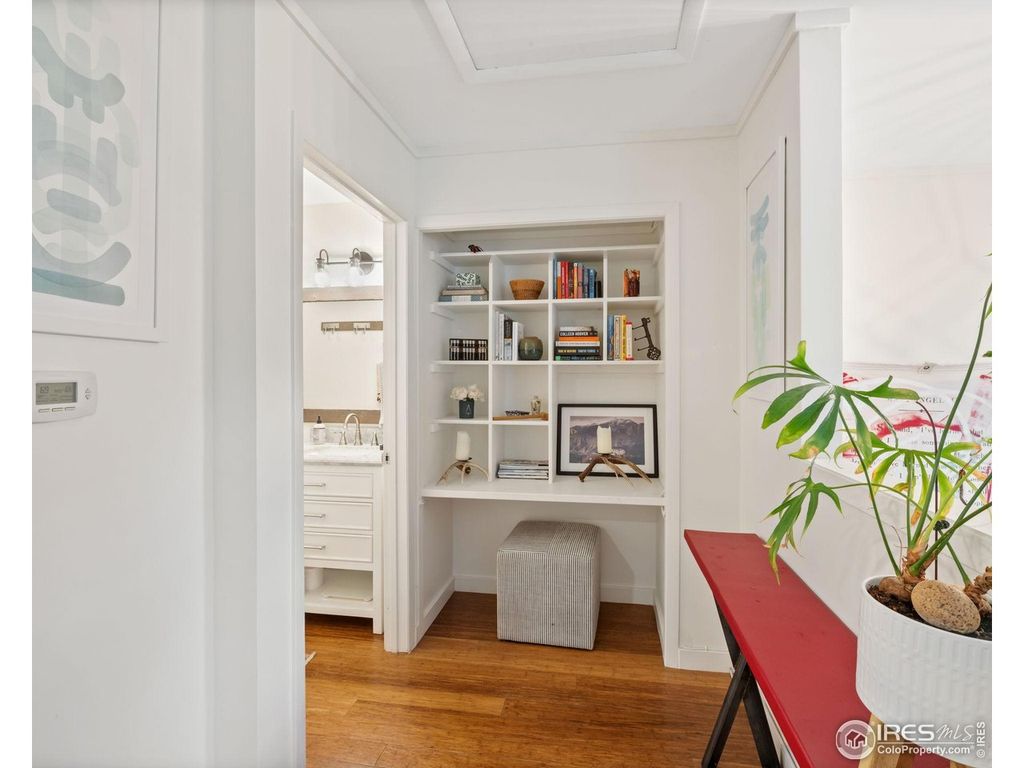 This Boulder Townhome is move-in ready and suitable for a primary residence, a convenient lock-and-leave second home, or a smart investment property with a strong rental history. The open concept main level living space is sun-filled and spacious with Bamboo flooring. The well-appointed modern kitchen boasts Slate tile flooring and newer stainless steel appliances including a GAS RANGE with a vented hood, an island with gleaming concrete countertops plus Maple shelving and cabinetry. Also on the main level you'll find the newer half bathroom with laundry/storage featuring a 2025 Whirlpool Full-size Washer and Dryer, all tucked behind a stylish barn door. Tucked off the living area is a built-in desk with shelving. Two comfortable bedrooms are located on the quiet garden level, which provides a naturally cooler environment in the summer. The primary bedroom features a new custom closet as well as a linen closet, and the second bedroom has a deep closet with room for storage. The modern 3/4 bathroom provides a spa-like experience with double shower heads, navy tile, and a glass block window for natural light and privacy. Enjoy two outdoor areas perfect for relaxing or entertaining. Step out the kitchen onto the upper deck and down into the fenced backyard with newer decks, pavers, landscaping, and low-maintenance turf for water-wise living. A front patio provides another casual gathering space. Rare Boulder bonus - LARGE GARAGE has been insulated, drywalled & painted, providing plenty of space for an SUV plus bike & winter gear storage as well as a workshop area. This fully updated home seamlessly blends thoughtful custom updates with contemporary design, offering a peaceful living experience that Airbnb guests consistently rave about. You'll love the ease of this location which is a short tree lined walk from local favorites Blackbelly or Ozo Coffee, and an easy bike ride to CU or Pearl Street Mall. Close to RTD Bus stops. New year, great price, take another look!