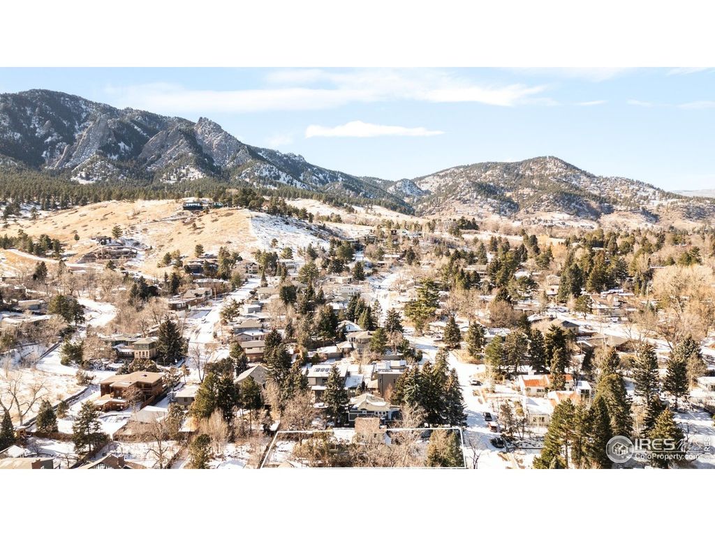 Nature and design exist in effortless balance in this Upper Chautauqua retreat showcasing sweeping views of the Flatirons. Set on a quiet neighborhood street just moments from Chautauqua Park, this residence offers seamless access to trails and coveted Boulder amenities. A welcoming front patio opens to a luminous interior featuring warm wood flooring. Built-in shelving frames a spacious living area anchored by a cozy fireplace. Wide picture windows flood the dining space with natural light while capturing breathtaking mountain vistas. The bright kitchen flaunts all-white cabinetry and stainless steel appliances. The primary suite boasts vaulted ceilings, a walk-in closet and a spa-like bath with a walk-in shower. An additional upper-level bedroom features custom built-ins. The finished lower level expands the home's flexibility with a comfortable living area, bedroom and bath. Outdoor living shines with a deck and patio overlooking a thoughtfully designed, drought-tolerant backyard.