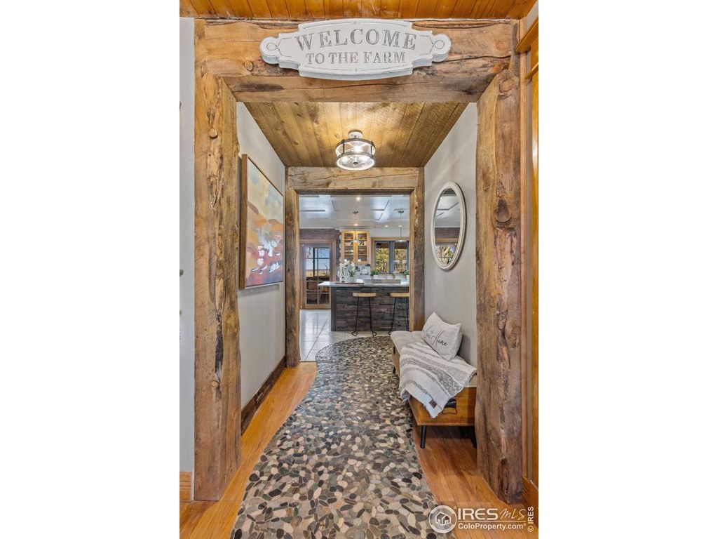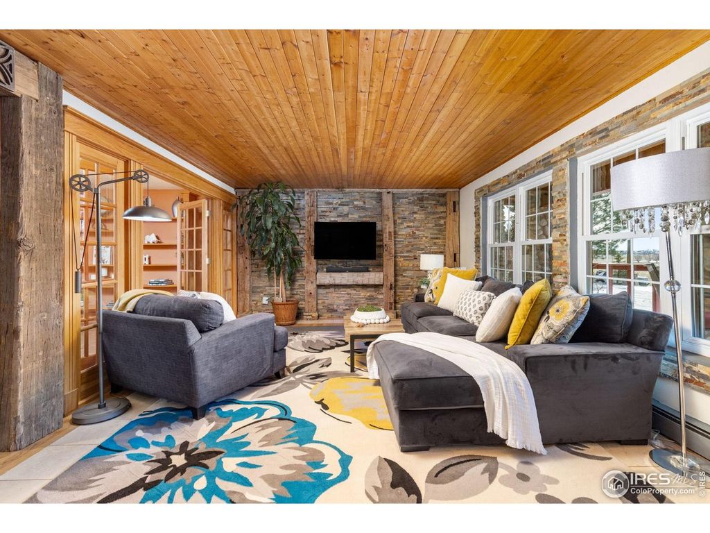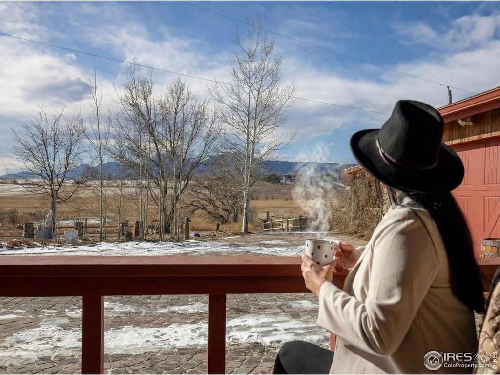 Wake up to unobstructed views of the Flatirons and Colorado's iconic foothills from nearly every window of this extraordinary 5-bedroom estate. Set on 2 acres across from protected open space, this rare property offers breathtaking scenery, exceptional privacy, and an unbeatable location just minutes from downtown Boulder and within walking distance of the Boulder Reservoir. A circular cobblestone driveway welcomes you to a home that feels warm and inviting from the moment you step inside. Thoughtfully updated over the years, every space reflects care, character, and craftsmanship. The custom kitchen features marble sourced from Italy and Vermont, marble flooring, and a statement island framed in rustic decommissioned ship wood. The show-stopping entry and foyer showcase river rock tile and reclaimed barn wood beams, setting the tone for the home's natural elegance. The cozy living room is lined with windows framing stunning mountain sunsets. Additional highlights include a main-level office with built-ins, a dining room with a wood-burning fireplace framed in river rock and a log beam mantel, and a studio/workshop with a private entrance. The basement is ideal for entertaining, perfect for game nights or gatherings. Outdoors, the backyard is designed for enjoyment with mature landscaping, vibrant seasonal color, and a tranquil pond and water feature. The property is ready for horses, livestock, or chickens, with existing shelters, fencing, and heated water lines. This rare location offers the perfect balance of nature, privacy, and convenience-peaceful and tucked away, yet close to everything that defines Boulder living.