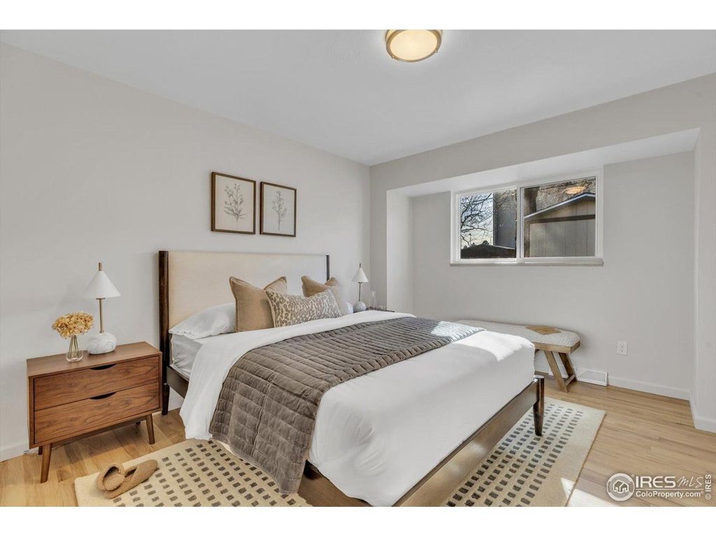 Freshly remodeled ranch with front porch and a finished basement in the highly desirable Table Mesa neighborhood! Perfectly located on a quiet street just steps from the South Boulder Rec Center, Harlow Platts Park, Viele Lake, Southern Hills Middle School, and Fairview High School-you'll love the sense of community and convenience. The home has been updated with beautifully refinished hardwood floors, fresh interior paint, modern lighting, double-pane windows, a new front door, new Berber carpet, a new heat pump heating and cooling system, and a new water heater. The result is a warm, inviting space that's move-in ready. The certified wildlife habitat garden is a true retreat-alive with color, texture, and songbirds. Raised beds in the front and back are ready for vegetables or flowers, and mature lilac bushes frame the yard with seasonal beauty. The spacious backyard is ideal for gatherings, games, and summer evenings under the stars. Inside, the BainUltra soaking tub offers a luxurious place to unwind-perfect for deep relaxation or bathing kids and pets. The home's flexible layout provides multiple spaces for how you live today: the basement makes a great musician's studio, playroom, or game area, while the converted garage works beautifully as an art studio, dining space, or extra living room. The bright, open kitchen flows easily to the backyard for indoor-outdoor living. Privacy abounds-in the backyard there's no direct view into neighboring homes, and the peaceful quiet is punctuated only by the sound of geese heading to Viele Lake. You'll appreciate multiple bedroom options as your needs evolve, and the location can't be beat: quick access to hiking trails, Eldorado Springs Pool (just 10 minutes away), downtown Denver (35 minutes), and a nearby Skip bus stop for effortless commuting. This is a beautifully updated home in one of South Boulder's most treasured areas, surrounded by parks, nature, and wonderful neighbors.