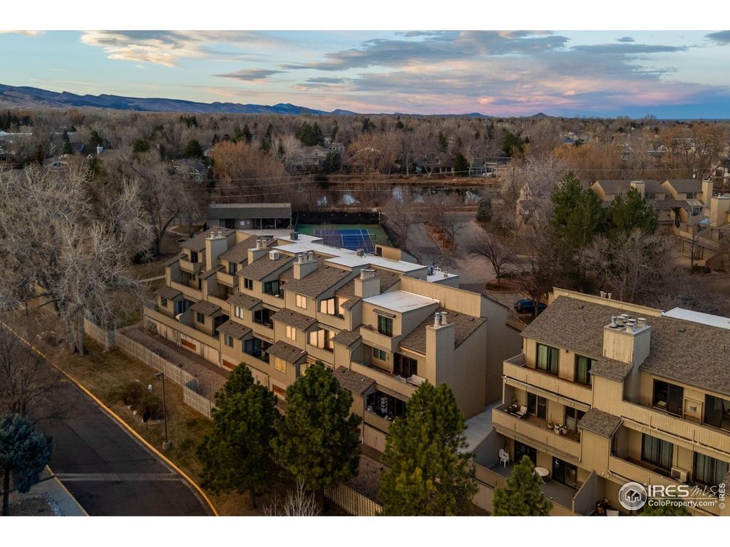 Show-stopping views for an incredible price point?! Welcome to turn-key, easy, and spacious living with some of the best views in Boulder for such a phenomenal price. This move-in-ready home is set in a quiet complex with central access to all of Boulder. An open floor plan in the kitchen and living room features granite countertops with a high-top bar seating area, dining space, wood floors, vaulted ceilings, and a cozy wood-burning fireplace. Two sliding doors, one from the living room and one from the primary bedroom, frame the sensational Flatiorn views and lead to the private balcony where you can enjoy the full "wow" experience. Rise with the alpenglow sunrise reflecting on the Flatirons from your primary suite that also offers a private ensuite bathroom and walk-in closet. A secondary bedroom with new flooring, a secondary bathroom, and a separate laundry room add extra space. With no neighbor above and a prime location in the building, this unit offers incredible privacy. Want extra peace of mind? This home features a new furnace, AC, a newer HOA roof, and a new clothes washer and microwave for extra convenience and modern comfort. Enjoy 2 reserved parking spaces in the underground garage, along with a private storage closet and elevator access. Outside, take advantage of the community tennis courts, relax by the pool and hot tub, or gather with friends in the beautifully landscaped community area. With easy access to trails, bike paths, transportation, restaurants, and shops, this home offers both tranquility and connection. Experience beauty and ease in this lovely Boulder retreat.
