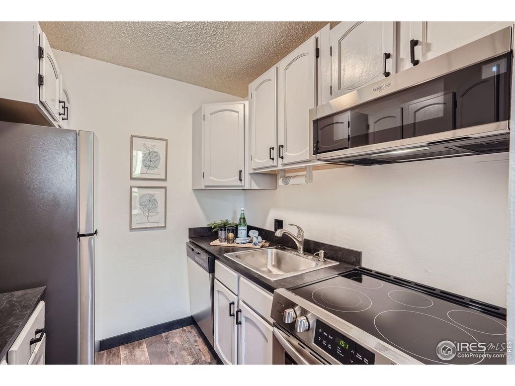 Rare opportunity in sought after Stratford Park! This beautifully remodeled 3 bedroom end unit condo has been extensively updated, including improvements to plumbing, added insulation, and numerous interior upgrades that give the home the feel of a fresh, move in ready unit. New lower-level flooring, popcorn ceilings removed on the lower level for a cleaner look and a bit of extra height, and thoughtful finishes throughout create a bright and comfortable living space. The stylish kitchen features stainless steel appliances, refinished cabinets, and sleek countertops, while the main-floor bathroom has been remodeled with a soaking tub and elegant finishes. Three spacious lower-level bedrooms provide excellent privacy and flexibility for guests, roommates, or home office use. Enjoy fantastic community amenities, including a pool, garden, gym, and BBQ area. Prime Boulder location close to coffee shops, restaurants, grocery stores, and scenic trails, making this an ideal opportunity for first-time buyers, CU students, or parents seeking a smart investment. Seller is willing to pay HOA fees for the remainder of 2026.