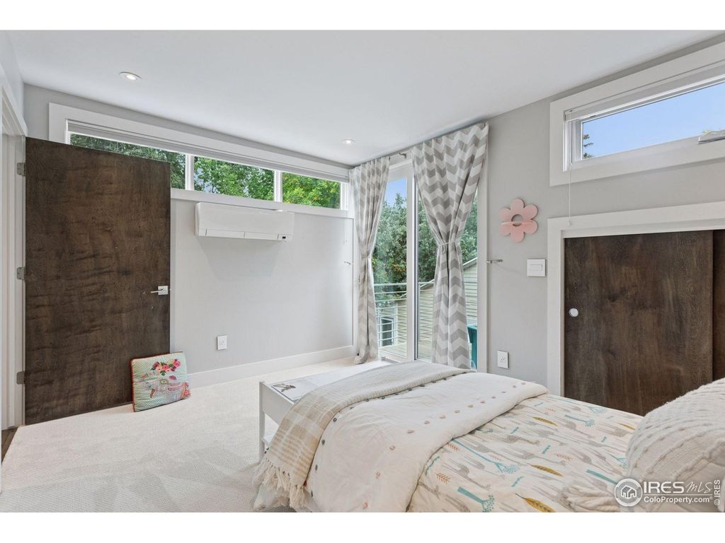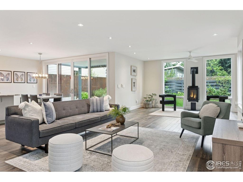 This ideally-located home has everything you need to plug and play in Newlands, one of Boulder's most popular neighborhoods! With its new Hardie Artisan siding, 711 Hawthorn's modern architecture stands out among others. Set back off the street with a lovely courtyard, this home welcomes you in and the open floor plan allows you to live and entertain with ease. Entering the home you are welcomed by a sunny South-facing dining room, functional mudroom, home office and powder room. Down the hall is the heart of the home: the light & airy living room captivates with two story windows providing so much light, a cozy reading lounge with Jotul gas stove, the most amazing kitchen, an eat-in casual dining spot and massive sliders opening to the outdoor living spaces. With Apollo Louver automatic pergolas over both the outdoor dining area and the side patio, enjoy sun or shade. Chefs will delight in the beautiful kitchen with an expansive honed granite kitchen island, Sub-Zero refrigerator, Thermador gas range and Miele dishwasher, plus butler's pantry with beverage fridge, counter, cabinets and large walk-in pantry. Up the modern stairwell find a spacious & serene primary suite with mountain-view windows, ample closet space and a spa-like primary bathroom: soaking tub, steam shower and dual vanity. Upstairs has laundry and two additional bedrooms, one with its own sweet balcony. The lower level is great for movie nights: multi-purpose rec room, guest bedroom, full bath and very spacious storage rooms. Close to everything -Ideal Market & Shops, Beleza, Santo for breakfast burritos & happy hours, hiking Mt. Sanitas, North Boulder Park's endless green space & playgrounds and steps from Foothill Elementary. A 2015 Green Build, with a HERS rating of 42 meaning it is 58% more energy-efficient than other homes. Live sustainably with double-paned windows, high-efficiency appliances and utilities, solar panels, whole house water filtration system and water filtration at each faucet.