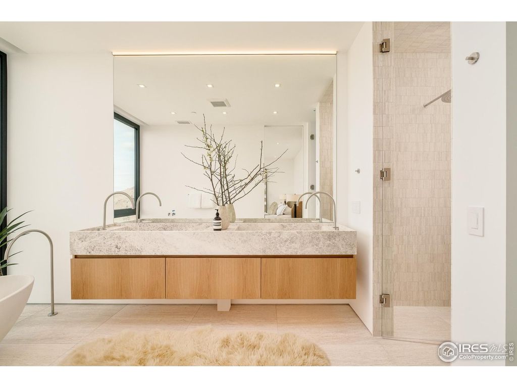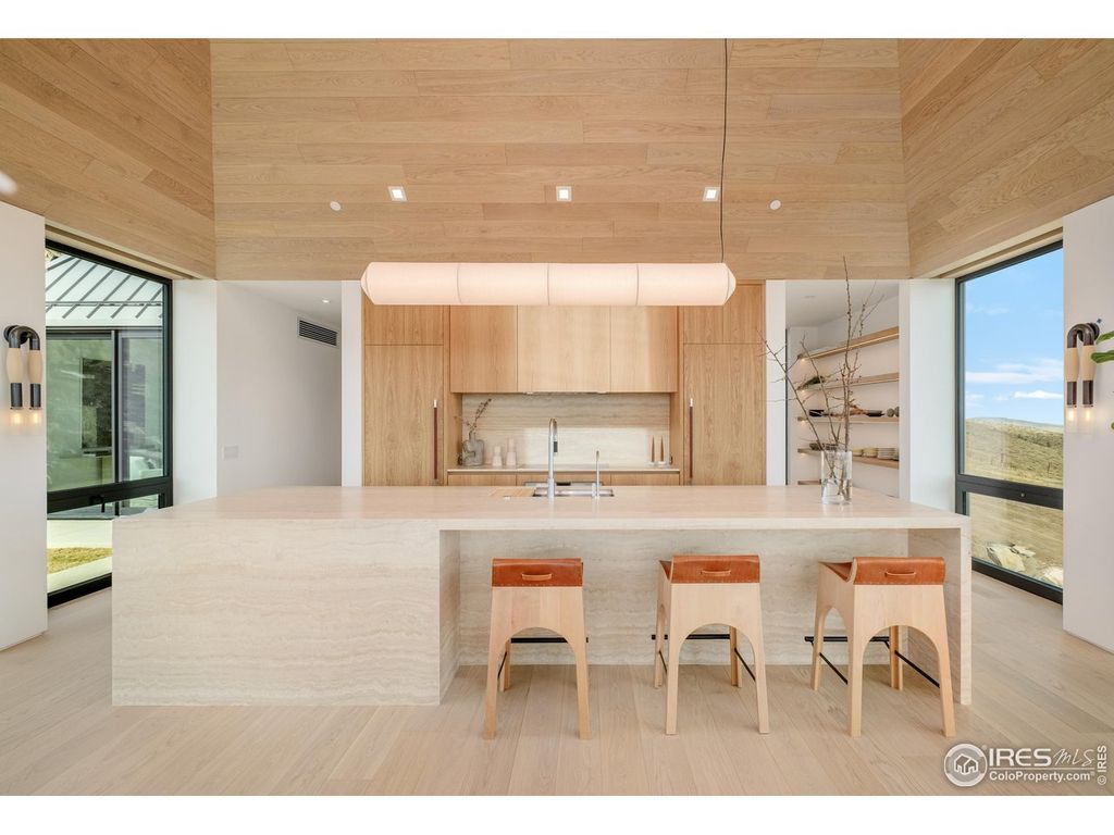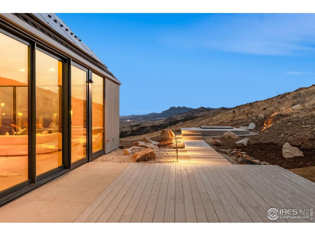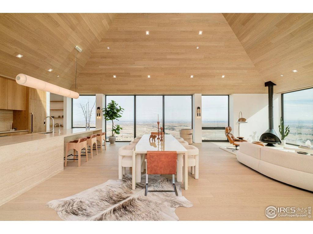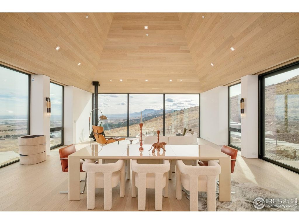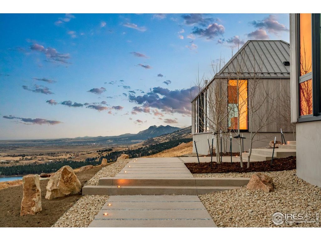 A true architectural tour de force, this newly completed Mountain Ridge estate redefines modern luxury against one of Boulder's most breathtaking natural backdrops. Designed by award-winning Studio B, with interiors by Studio Brother John and landscaping by Evoke, this striking residence rests on a premier, private three-acre lot bordered by over 6,300 acres of protected open space in the gated Mountain Ridge community. Floor-to-ceiling architectural-grade windows frame unobstructed vistas stretching from the Flatirons to Pikes Peak, the Denver skyline and the eastern plains, immersing every space in light, sky and landscape. The expansive layout offers en-suite baths throughout, an inspiring office or lounge and a flexible lower level ideal for fitness, media or recreation. Interiors showcase globally sourced finishes, including European white oak floors from France, sculptural Cocoon fixtures from Holland, custom white oak cabinetry by BKI Millwork and a chef's kitchen appointed with Gaggenau and Miele appliances. Outdoor living is equally extraordinary, featuring a dining deck, stainless steel hot tub and sunken conversation pit perfectly positioned for sunrise and sunset views. Sustainable, intelligent and impeccably crafted by Morningstar Homes, this residence is more than a home - it is a refined expression of design, privacy and Boulder's unmatched natural beauty.