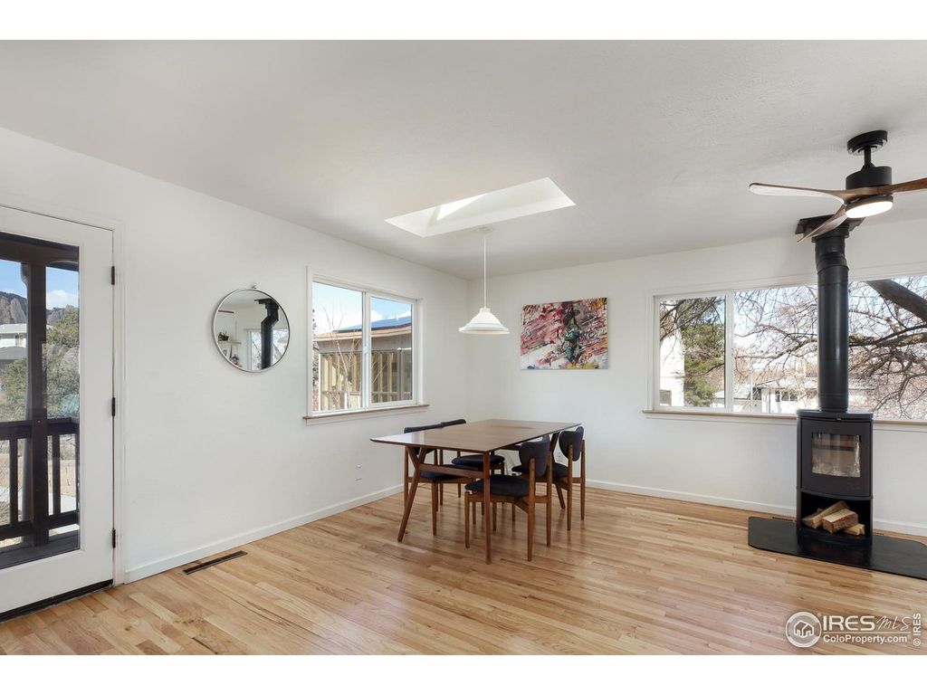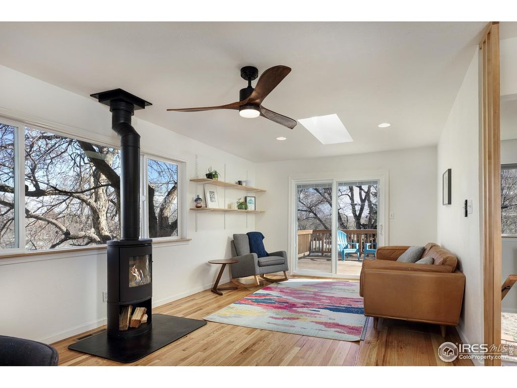 STELLAR MOUNTAIN VIEWS in Majestic Heights! Wake up to breathtaking western mountain views from this beautifully maintained raised-ranch gem in desirable Majestic Heights. Designed to maximize light and livability, the sun-soaked main level features an open-concept layout connecting the living, dining, and kitchen areas-perfect for both everyday living and entertaining. 4 skylights bathe the space in natural light, highlighting the refinished wood floors and thoughtful updates throughout. The kitchen was cleverly remodeled in 2023, offering abundant cabinetry, a handy pantry, and a perfectly positioned sink with stunning mountain views. The brand-new sliding glass door leads to a convenient deck-ideal for relaxing evenings and outdoor gatherings.A newly added interior stairway seamlessly connects both levels and creates a smart, open-feeling office space. The lower level enjoys abundant natural light with mostly above-grade square footage, front and back entrances, two additional bedrooms, a welcoming entry with a large storage closet, and a versatile wet bar/kitchenette-ideal for multigenerational living, or flex use. Both bathrooms have been tastefully updated, and newer windows enhance comfort and efficiency throughout. Outside, a convenient 75 SF storage shed is attached on the north side of the home, and 10 newly planted oak, locust, and pear trees are already thriving, adding beauty and future value to the landscape. Enjoy quiet streets, spectacular views, and a strong sense of community in Majestic Heights-this is Colorado living at its finest. OPEN SUNDAY 1-3