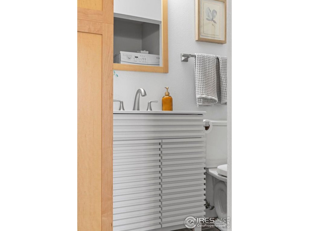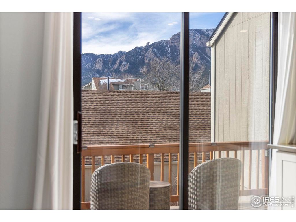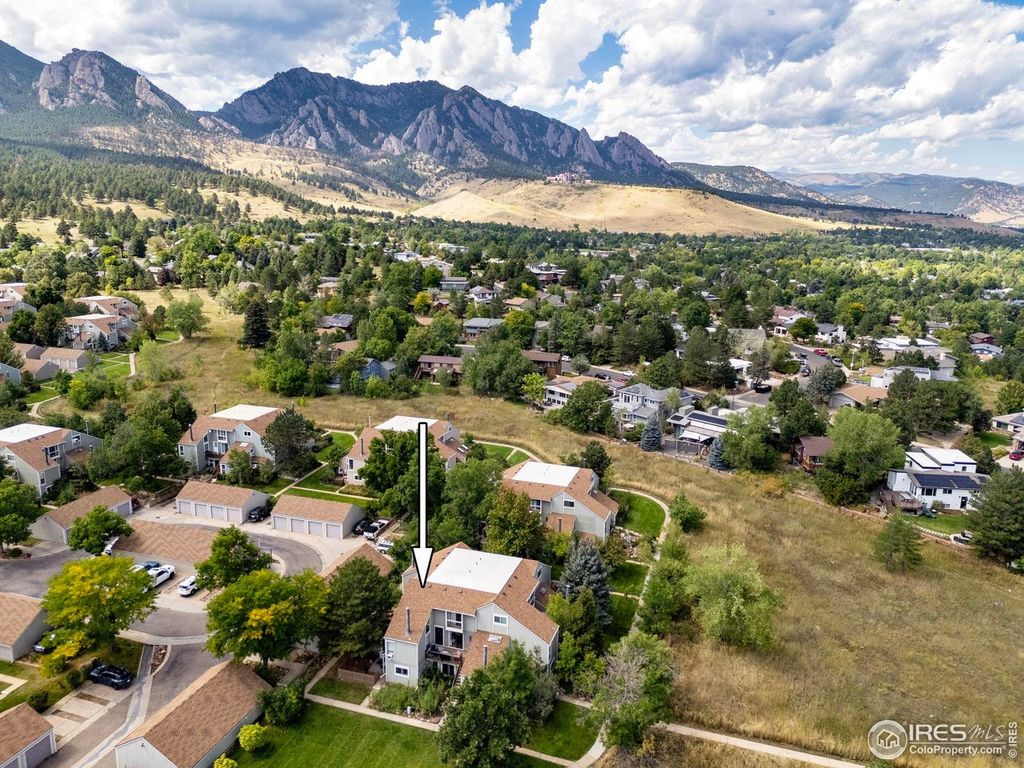 Breathtaking views of the Flatirons and Devil's Thumb from this beautifully updated Shanahan Ridge S Boulder home, just steps from open space & trails. With vaulted ceilings and two-level living, this residence blends timeless architecture with modern upgrades. The reimagined and fully remodeled kitchen is a showpiece: solid wood cabinetry, eased-edge concrete quartz countertops, apron sink, floating shelves, mobile island, dual convection oven, LG microwave, Delta Pivotal Pull Down Touch faucet and a Samsung Bespoke 4-door glass-paneled refrigerator with beverage center. Comfort is front and center with a high efficiency 4-head mini-split heating and cooling system- ensuring zoned year-round comfort. The gorgeous wide-plank acacia engineered hardwood floors, newer flat weave carpet, LED recessed lighting, and a Lente lighting fixture, elevate the interiors. The main floor half bath room with a new vanity, stackable washer/dryer, and the living room features a cozy wood-burning fireplace maintained annually by the HOA. Upstairs, the primary bedroom showcases unmatched mountain views of Boulder's iconic Devil's Thumb and Flatirons, and the 2nd bedroom that could also serve as the perfect office. Outdoor living features a 180sf private and quiet southwest-facing deck with inspiring vistas, plus a hardscape stone patio below with low-maintenance plantings. The oversized one-car garage provides space for a vehicle plus storage. Additional parking is easy and available around the community. Community amenities include a neighborhood pool, trash, and snow removal. This pet-friendly neighborhood is lined with open space and offers quick access to Shanahan Ridge Trailhead, South Boulder Rec Center, Table Mesa shops, including Whole Foods, King Soopers, Illegal Petes and so much more. HOA allows for short term rentals within the City of Boulder rules - get ready for Sundance 2027! Don't miss this fully updated move-in ready home where all the work has been done for you!