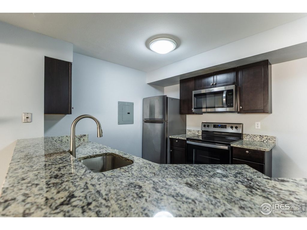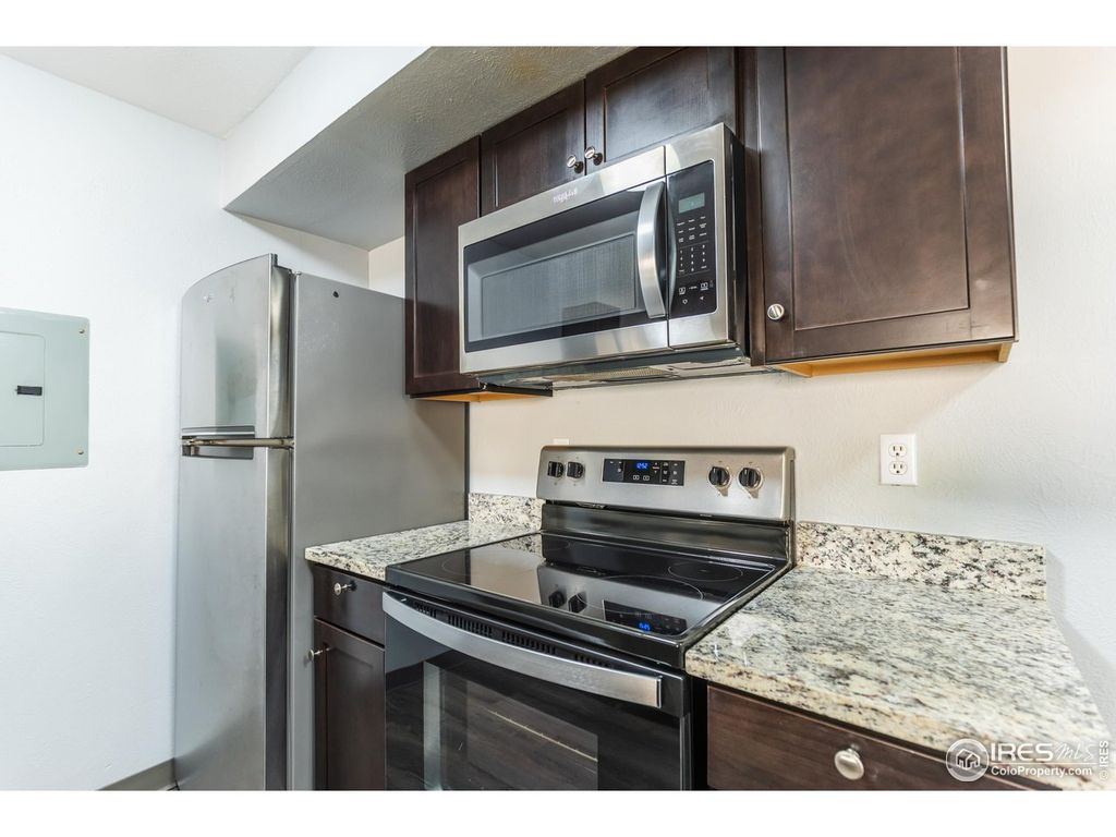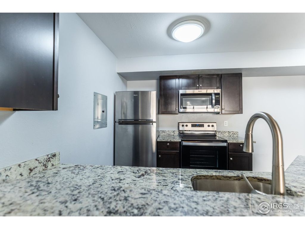 LOW HOA FEE $264 MO. Recently completely remodeled: Luxury vinyl flooring throughout out, paint, Cabinets, granite countertops, Stainless Steel appliances refrigerator, range/oven, microwave, dishwasher, Newer stacked washer & dryer. Storage closet on patio, AC. Pool, year around hot tub, picnic areas with grills. Convenient access to Table Mesa/South Boulder Rd., Foothills Pkwy, RTD park & ride, HWY 36, nearby restaurants & shopping.