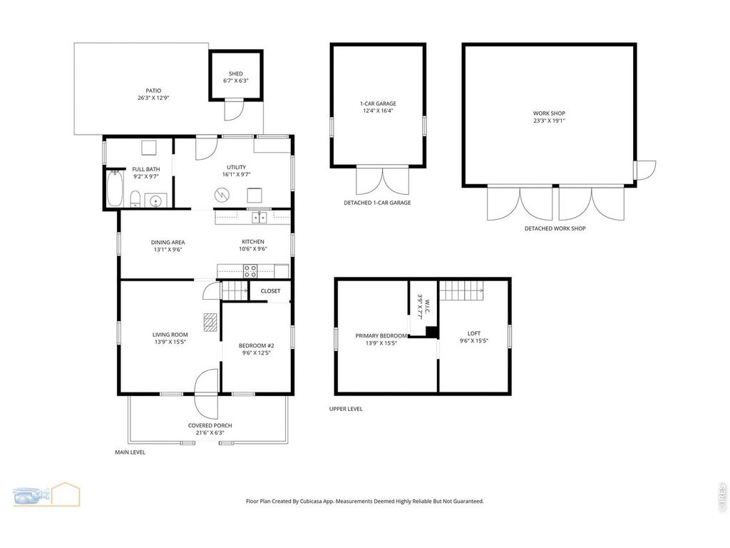 Situated on a generous 0.78-acre lot in a peaceful, quiet setting with mountain views from the lot, this unique property offers a rare opportunity to own a piece of local history. The home has been officially landmarked by Boulder County, recognizing its historic significance and distinctive character. The well is currently not operational, and the home does require work, making it an ideal project for those looking to invest in a truly special property. The layout includes a main floor living room that flows into the eat-in kitchen area. There is a main level bedroom with a main level bathroom and upstairs has an additional bedroom with loft area providing flexible living space for all. In addition to the main home, the property features a large detached workshop-perfect for hobbies, storage, or creative pursuits-as well as a detached garage for added convenience. Don't miss this opportunity to make this special and unique property yours! Property being sold "as is".