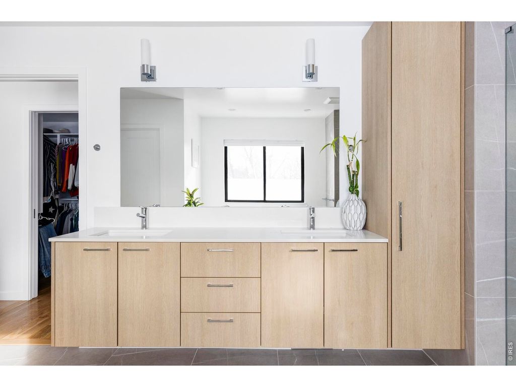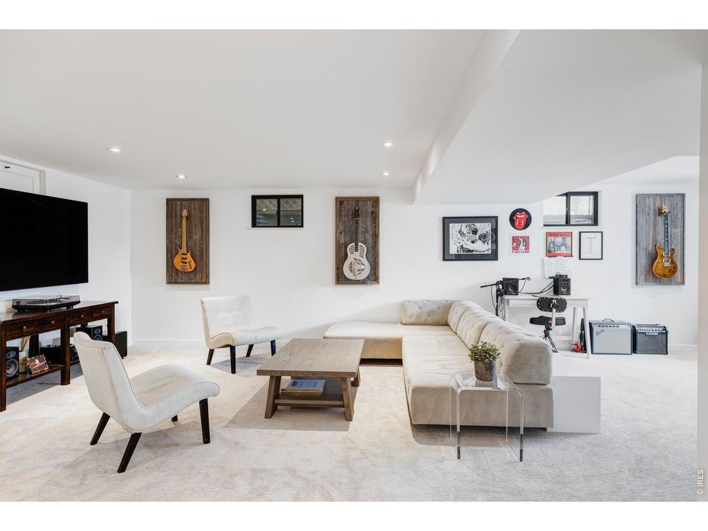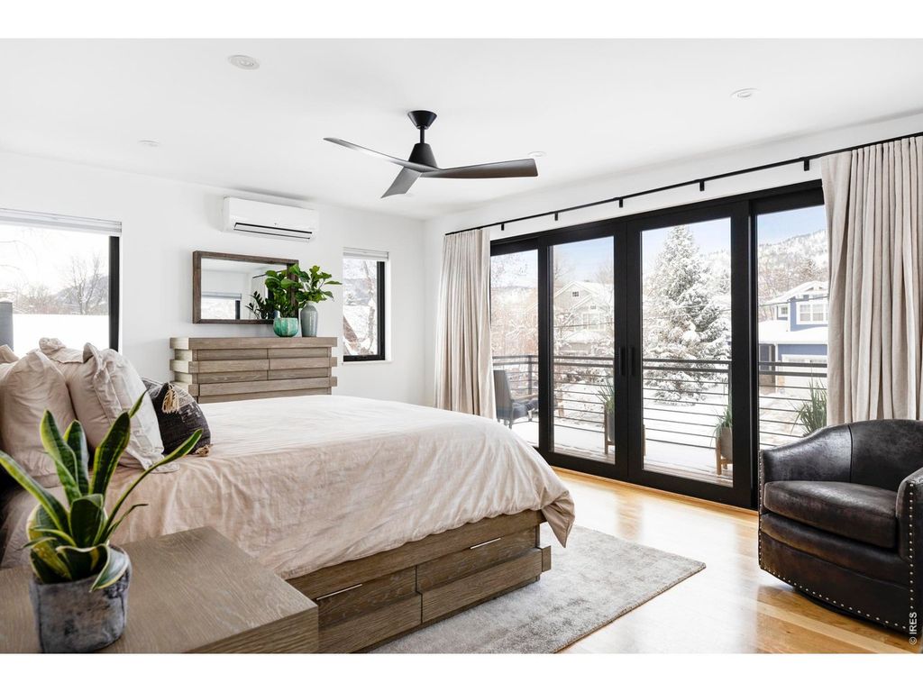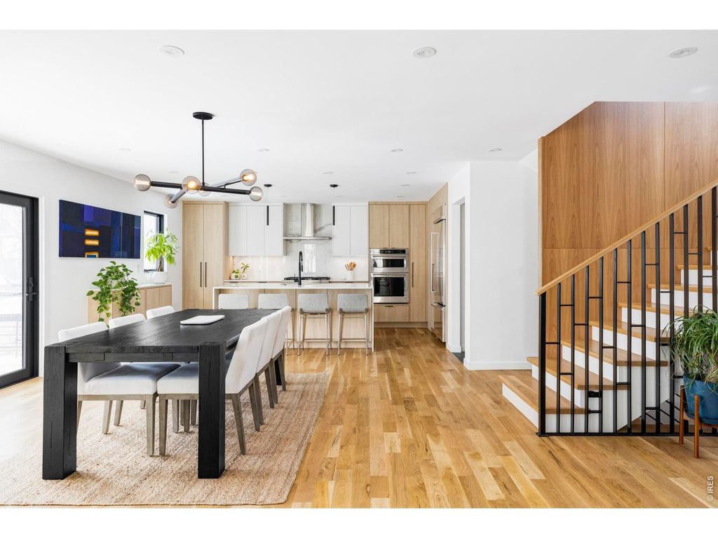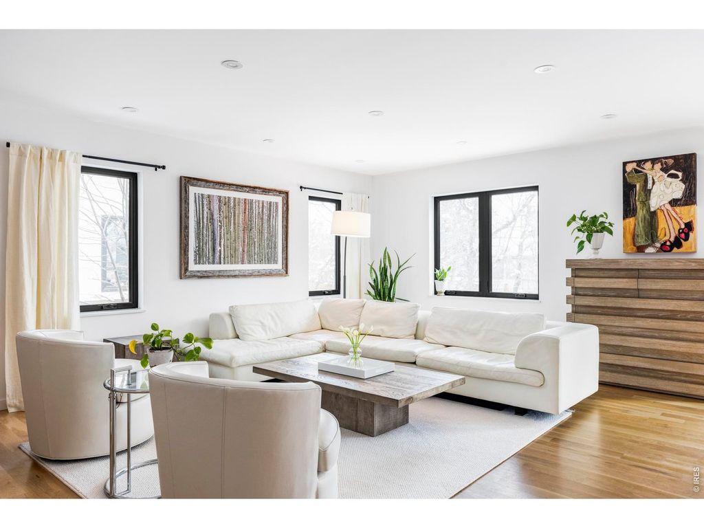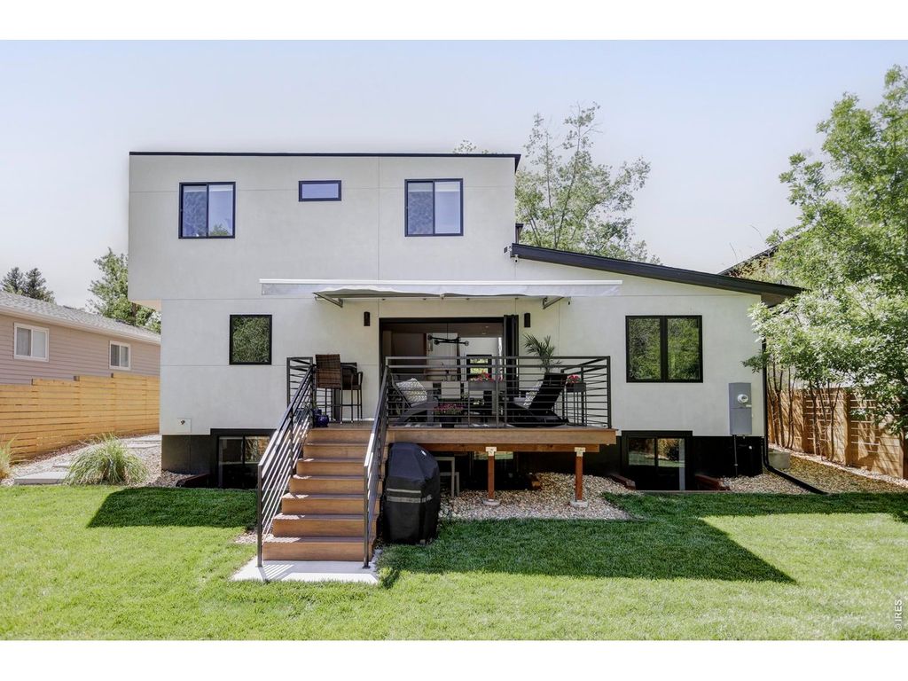 Sophisticated modern design meets effortless luxury living in this stunning home in desirable Melody Heights. This residence showcases premium finishes and an exceptional indoor-outdoor flow that epitomizes Boulder living. Light-filled interiors welcome you into the main level, where wide-plank hardwood floors flow seamlessly through an open-concept great room. The living & dining areas are perfectly positioned to capture natural light through walls of large windows, while a sleek fireplace adds ambiance and warmth. The chef's kitchen is a masterpiece of modern design, featuring custom flat-panel cabinetry in a sophisticated blend of white & natural wood tones, marble-inspired backsplash & a waterfall island with additional cabinetry. Dramatic sliding glass doors extend the living space onto a generous deck, creating an ideal setting for indoor-outdoor entertaining. The upper level is a private retreat, crowned by a stunning primary suite with sweeping views of Mt. Sanitas across Boulder's Front Range & private deck access. The pristine five-piece ensuite bath features a walk-in shower with designer tile, freestanding soaking tub, floating wall-mounted dual sinks, and windows that capture magnificent Flatirons views. Two additional bedrooms and a well-appointed bathroom complete this floor. The lower level offers exceptional versatility with a spacious recreation room, two additional bedrooms, and a full bathroom. The lower level is a full height daylight level with substantial natural light & functional living spaces. Set on a beautifully landscaped lot with a manicured backyard and fruit trees, this home enjoys a prime location in the Melody Heights neighborhood. Residents are a short distance to Lucky's Market, and just minutes from North Boulder's dining scene and Ideal Broadway Shops. The surrounding area offers abundant outdoor recreation opportunities, from Melody Park right across the street, to the scenic trails of Wonderland Lake and Mt. Sanitas.
