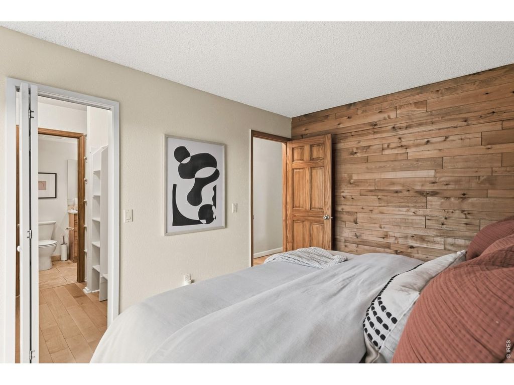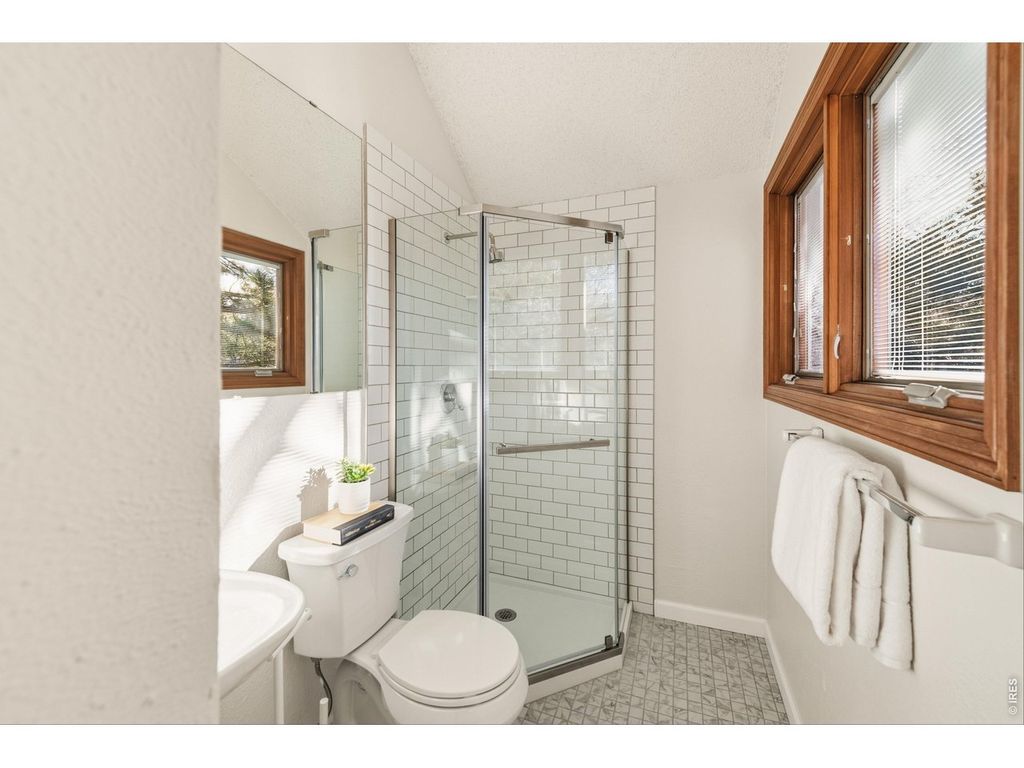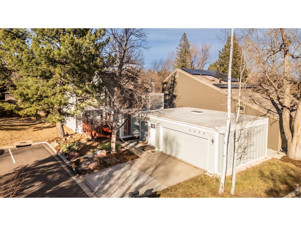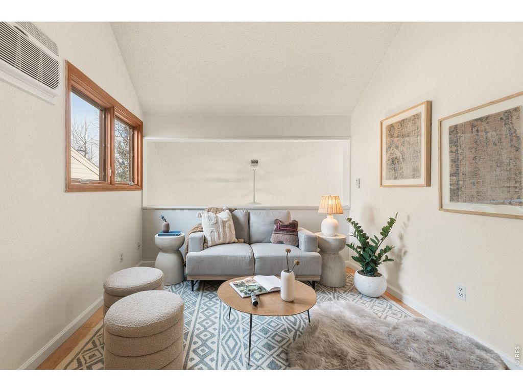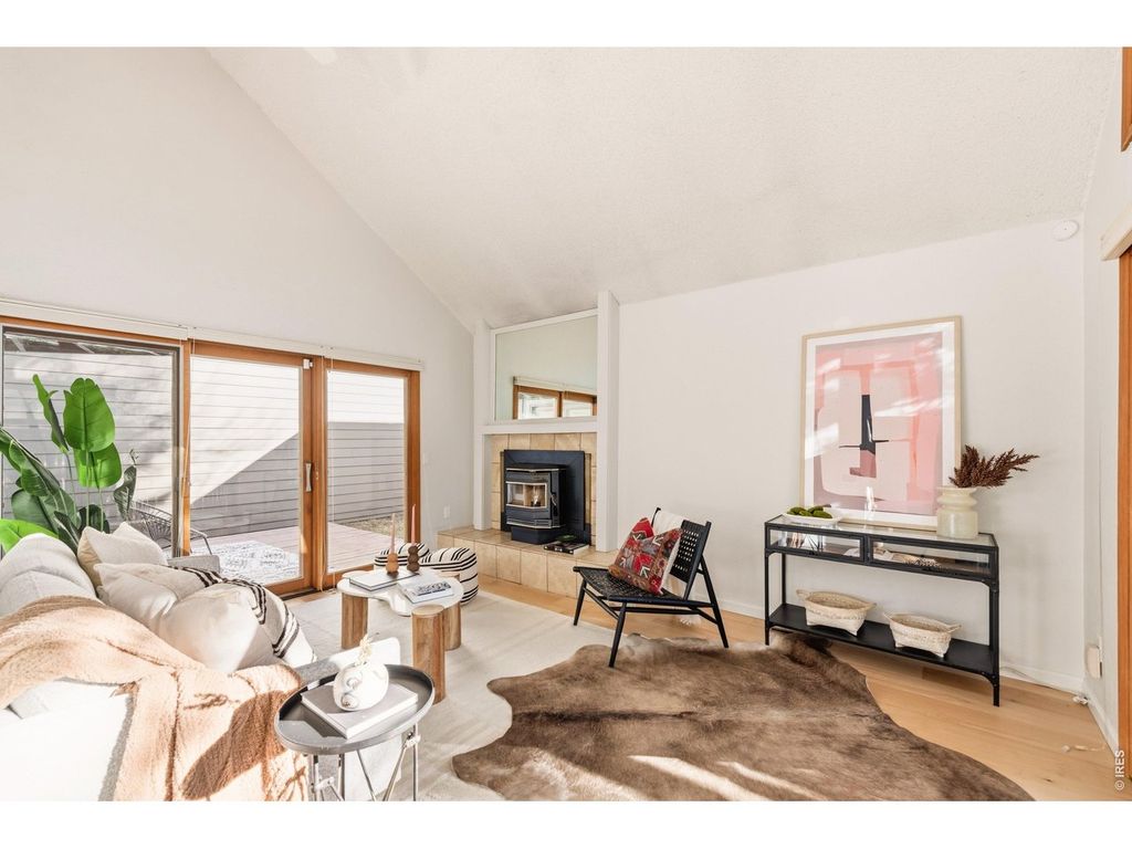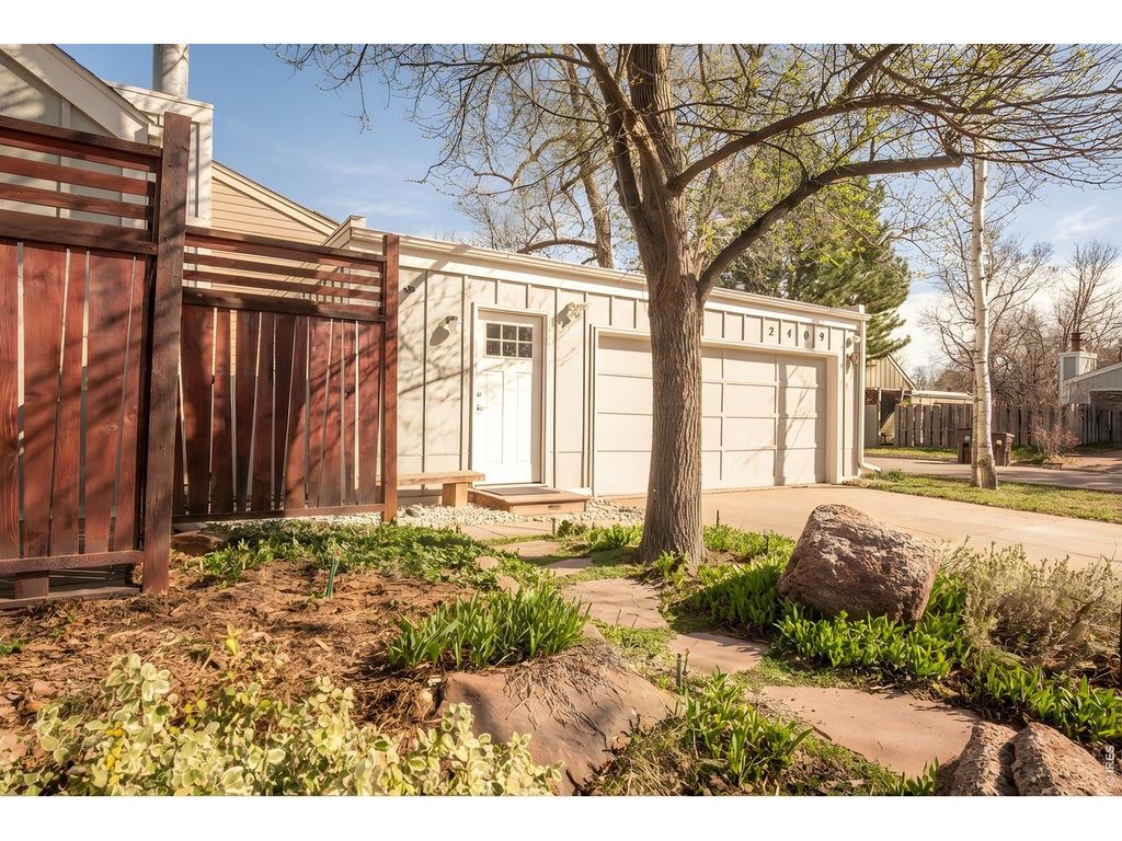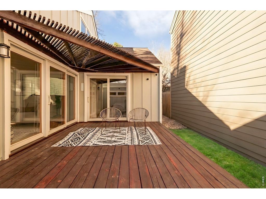 Discover a charming, recently refreshed 2-bedroom residence offering exceptional flexibility with a versatile loft and detached studio, nestled in a quaint + tranquil enclave bordering Parkside Park, just steps from 28th and Iris. This serene retreat offers the perfect blend of convenience and quiet, tucked away on a private cul-de-sac within the community while being walkable to an array of local restaurants and amenities, with Pearl Street + scenic hiking trails just moments away. Parkside Park is one of Boulder's loveliest, boasting a playground, shaded picnic areas, inviting walking paths with mountain views among towering trees and a seasonal stream, providing a place of respite just steps from your door. Enter through a private courtyard entry into an inviting interior where maple floors and vaulted ceilings create an airy yet intimate feel. The freshly painted living room features a pellet stove and direct deck/yard access for seamless indoor-outdoor living; the outdoor space here is enhanced with complete privacy. The renovated kitchen delights with alder cabinets, quartz countertops, and a premium dual fuel Jenn-Aire range, flowing into a dining area opening to a private patio-perfect for al fresco meals. The main level includes 2 bedrooms, with the primary suite offering a generous walk-in closet and direct access to a beautifully updated bathroom with Kohler and Delta fixtures, travertine tile, a deep soaking tub, and private fenced backyard entry. Upstairs, the versatile loft-style area and a freshly renovated (2025) 3/4 bathroom add convenience and functionality. A standout feature is the detached studio featuring American Clay walls, a waiting area, and 1/2 bath - ideal for a home office, guest suite, or creative space. This thoughtfully updated home combines modern elegance with timeless warmth and charm in one of Boulder's most sought-after locations.