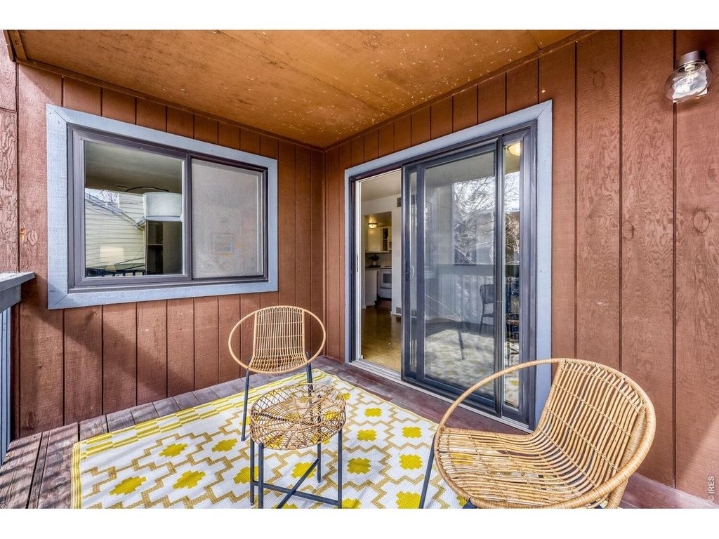 Bright, peaceful, and perfectly located, this top-floor end-unit condo offers an exceptional opportunity in highly sought-after Old North Boulder. This light-filled 2-bedroom home features a spacious single-level layout with an open living, dining, and kitchen area, enhanced by desirable southeast exposure. Step outside to nearly 100 feet of covered balcony space-ideal for morning coffee, relaxing evenings, or entertaining guests in a serene setting. Inside, eco-friendly cork flooring adds warmth, comfort, and sustainability to the living space. Additional highlights include a tankless water heater (installed in 2014) for efficient, on-demand hot water, two covered carport parking spaces, and a private storage area and locker for convenient gear and vehicle storage. A thoughtful layout includes a pocket door separating the laundry/toilet area from the shower, creating added privacy and a functional second-bath feel. The location truly sets this home apart-just a 10-minute walk (approximately 0.5 miles) to downtown Boulder and the iconic Boulder Theater, a future venue for the Sundance Film Festival. Enjoy easy access to neighborhood favorites like Ideal Market, Beleza Coffee, Moe's Broadway Bagel, and Breadworks, along with the vibrant shops and dining of Pearl Street. Outdoor lovers will appreciate being close to North Boulder Park and the trails of Mount Sanitas. This home offers the perfect balance of walkability, nature, and quiet charm-an inviting retreat in one of Boulder's most desirable neighborhoods.