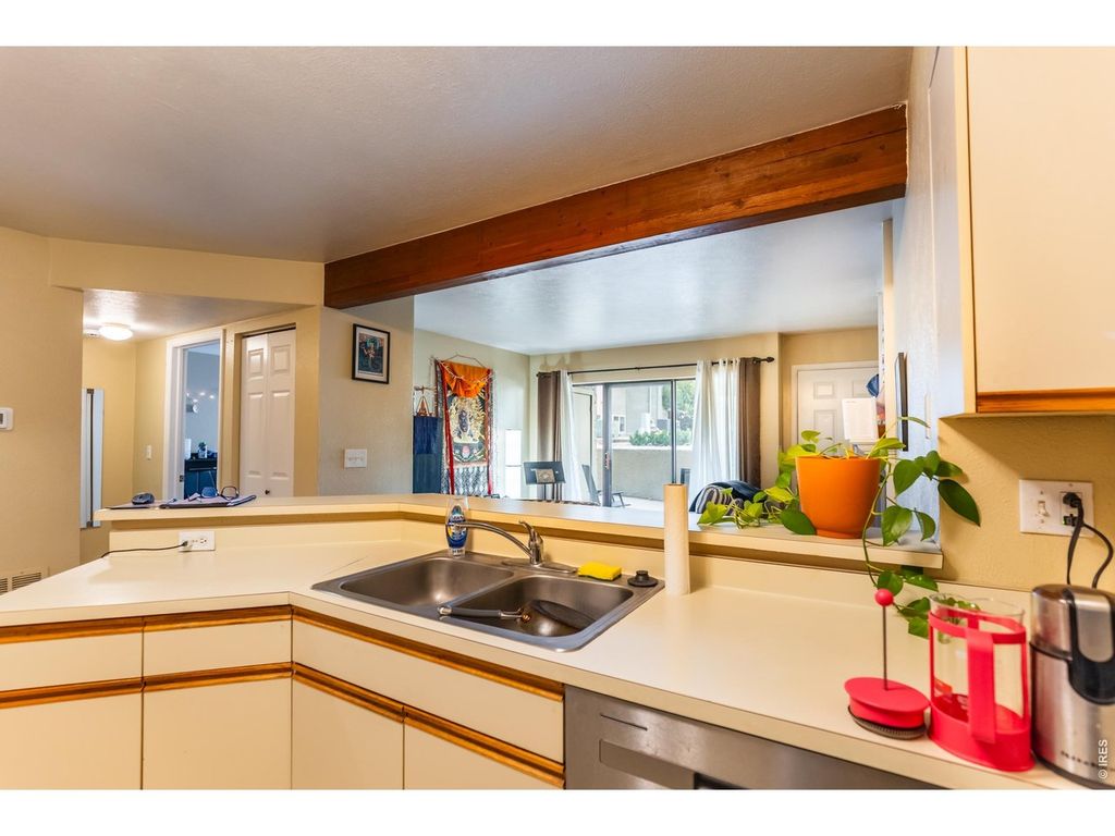 LOW HOA FEE $264 MO. NO STEPS, full walkout , 32" wide doors (could be ADA unit). Newer All Stainless Steel appliances refrigerator, range/oven, microwave, dishwasher, stacked washer & dryer. (NEW Furnace April 2025) Storage closet on patio. Community offers year around hot tub, Fronts to pool, picnic areas with grills throughout the complex. Convenient access to Table Mesa/South Boulder Rd., Foothills Pkwy, RTD park & ride, HWY 36, nearby restaurants & shopping.