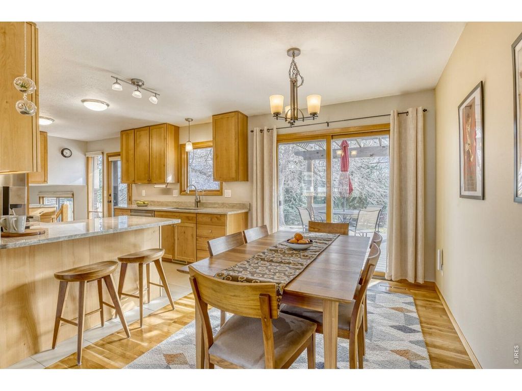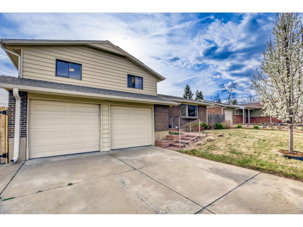 Exceptional value in this South Boulder tri-level, ideally located west of Broadway with stunning Flatiron views. Step inside to experience a beautifully renovated main level, highlighted by a spacious and airy kitchen layout with a breakfast bar. The living space is filled with natural light, showcasing gorgeous western views, wood flooring throughout, and a separate adjacent dining area. The remodeled kitchen features stainless steel appliances, abundant high-end cabinetry, tile flooring, pantry, and sleek quartzite countertops. The spacious lower-level family room features a cozy wood-burning fireplace, a convenient half bath, and a washer and dryer. You'll also find direct access to the two-car garage, along with a generous storage area and crawl space for all your additional belongings. The upper level showcases 3 bedrooms, 2 of which share a full-size bathroom with soaking tub. The spacious primary suite captures those stunning Flatiron views and features a private three-quarter bath, along with a mini-split system for added comfort on warmer days. Step outside to a large deck with a pergola for optional shade, plus a separate flagstone patio-perfect for entertaining or relaxing. Gardeners will appreciate the raised beds, and just around the south side you'll find a convenient shed for storing tools and outdoor equipment. The owner added solar panels (owned not leased) in 2022 to help keep utility costs in check, along with an updated electrical panel. Public transportation is just steps from the front door, with easy access to some of Boulder's best trails and schools. Don't miss this one!